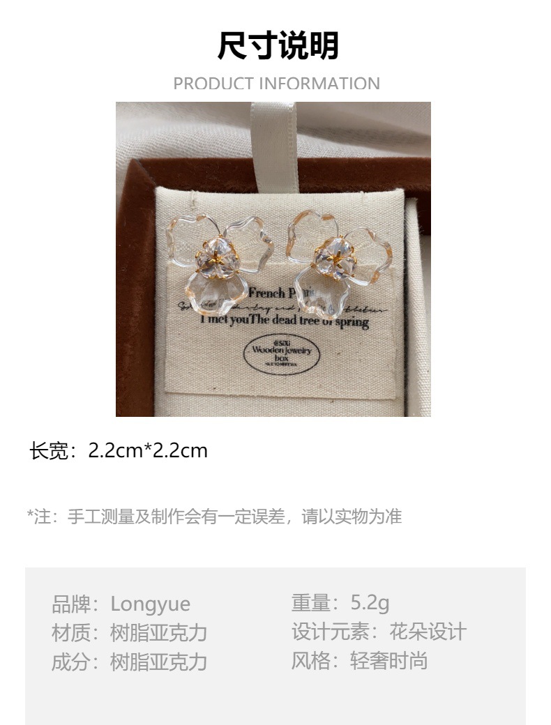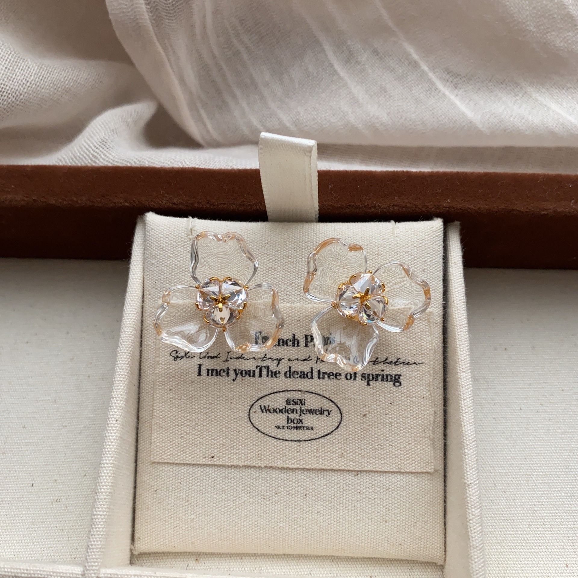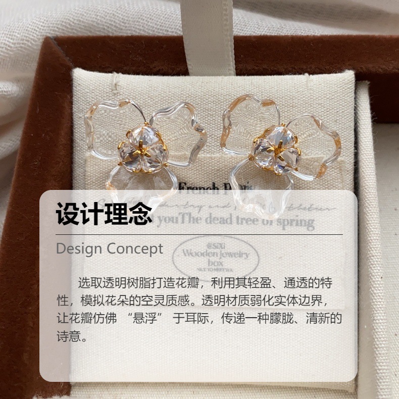 韩系小清新透明花朵耳钉甜美百搭耳环耳饰气质时尚简约小众高级感