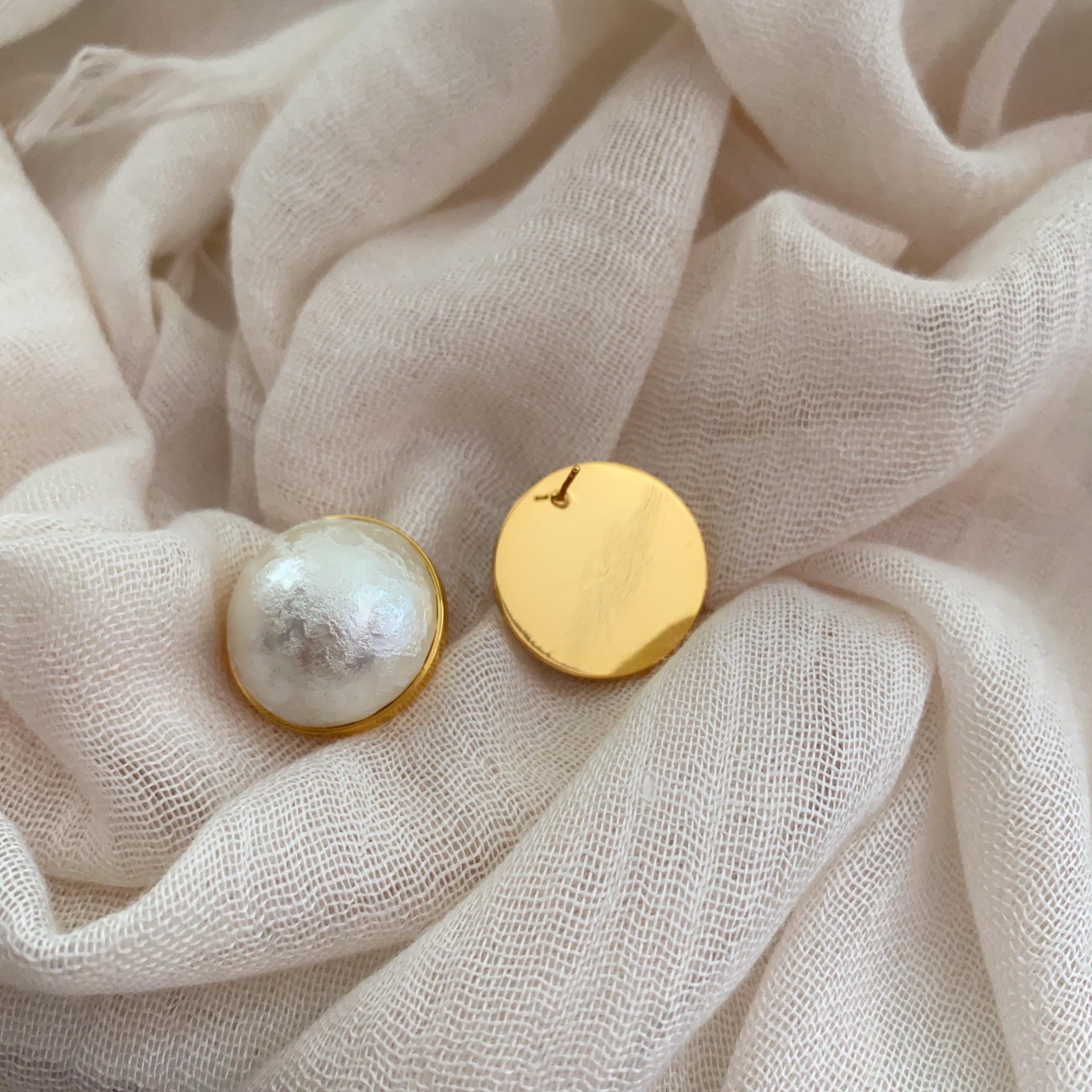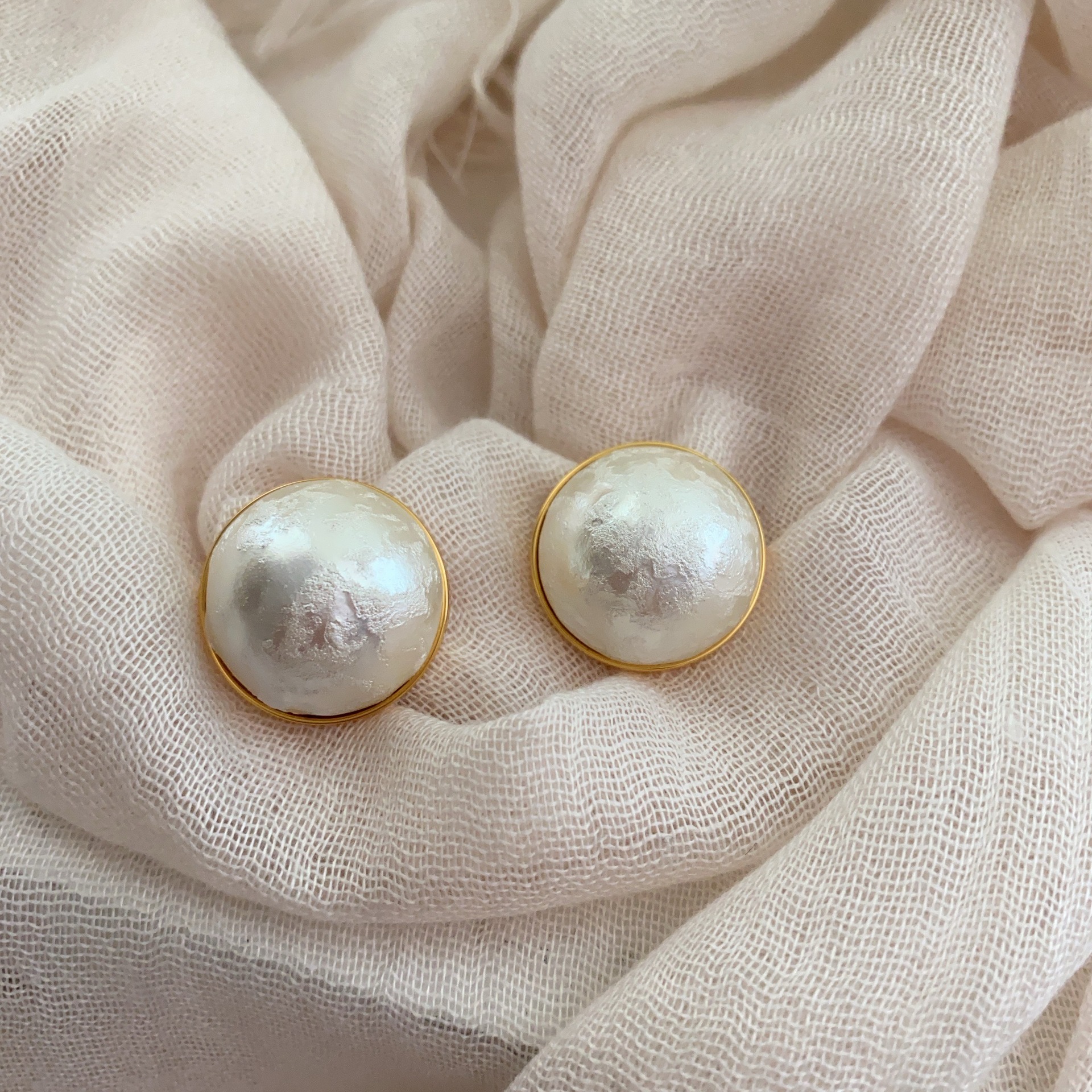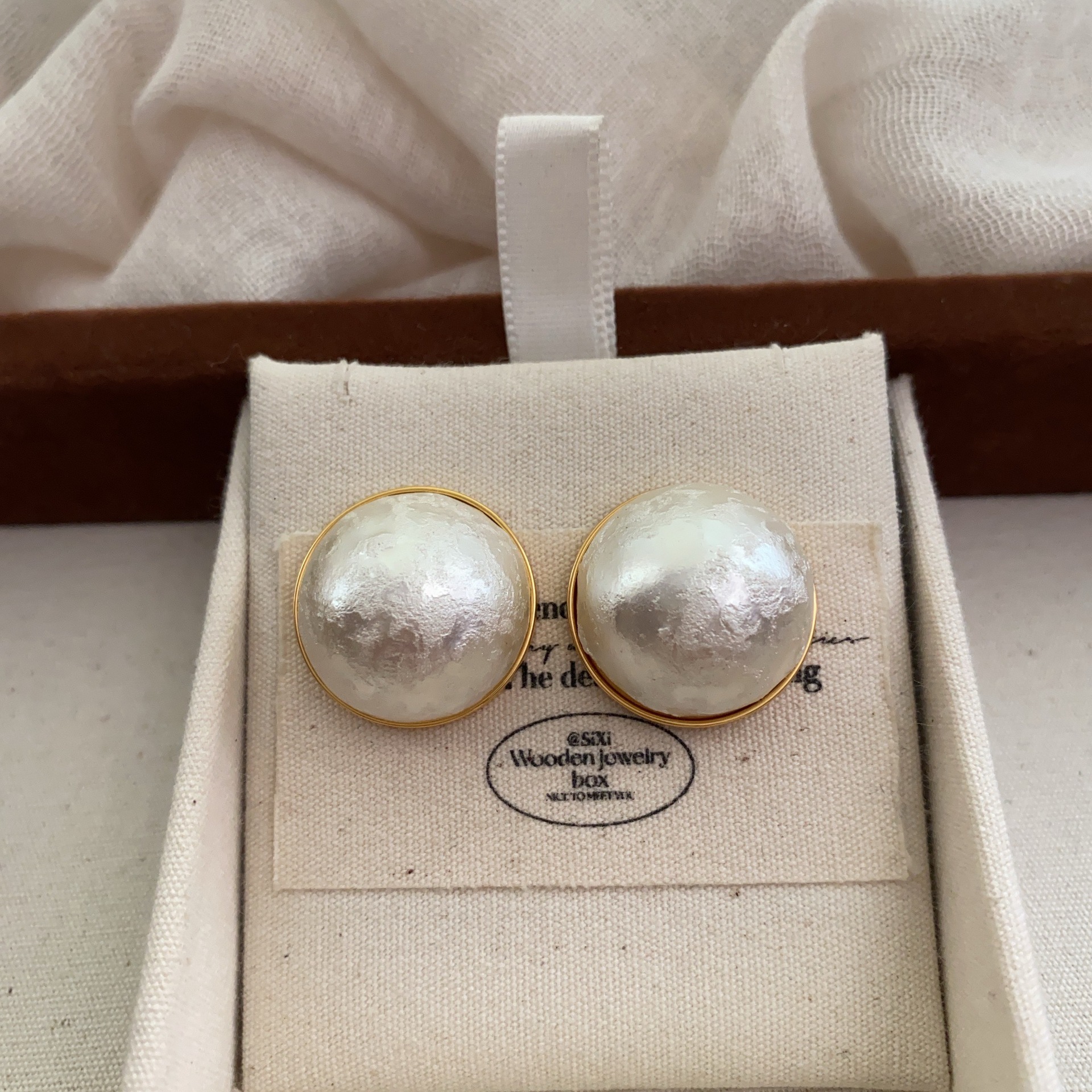 韩系半圆棉花珍珠耳钉女2025新款轻奢复古高级大珍珠耳环气质耳饰