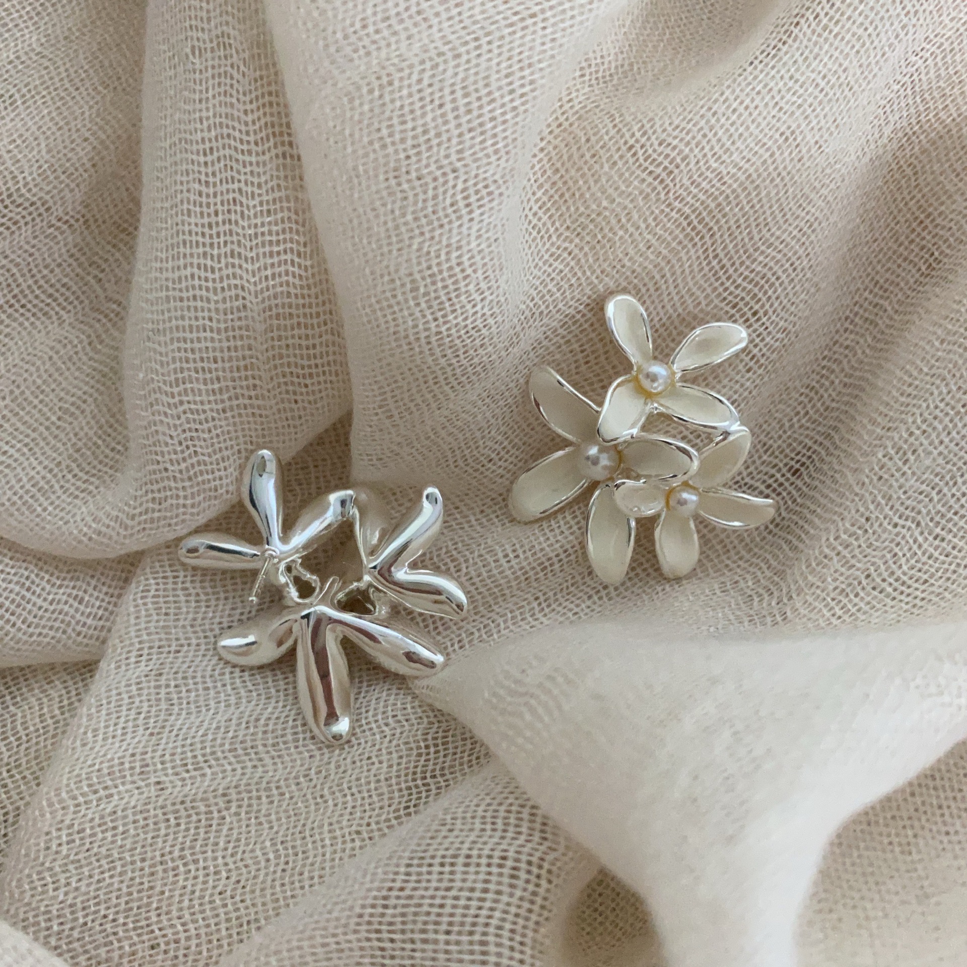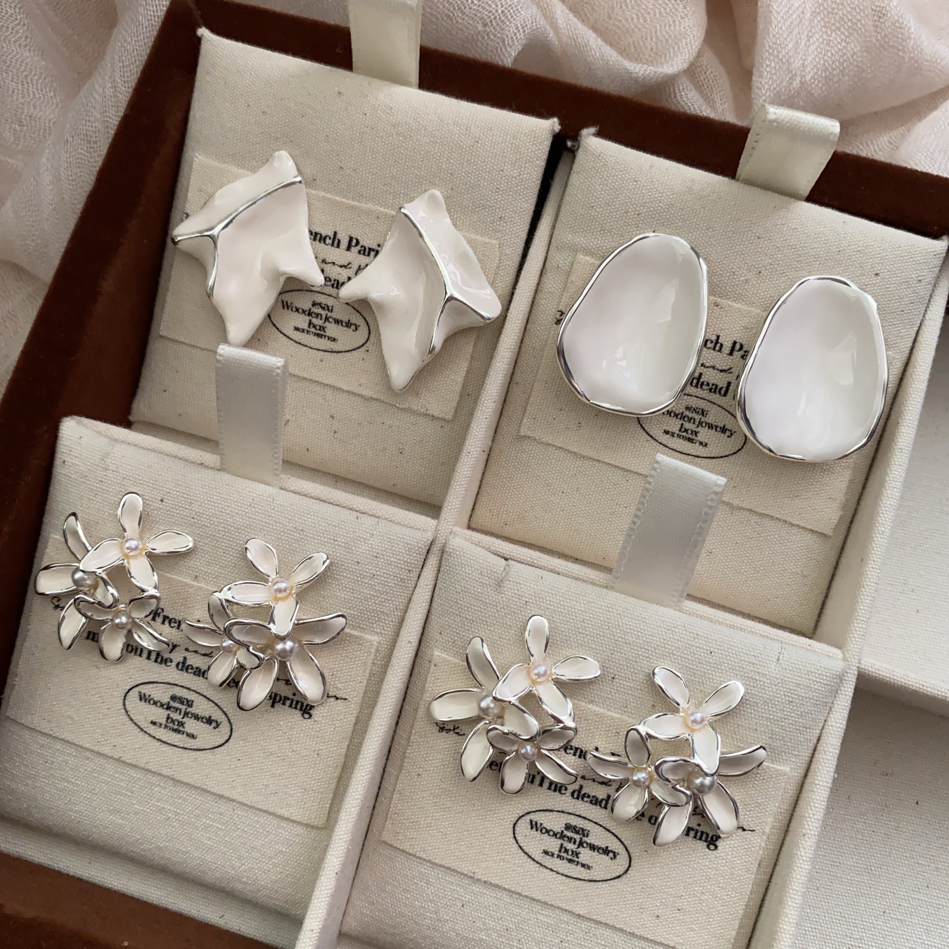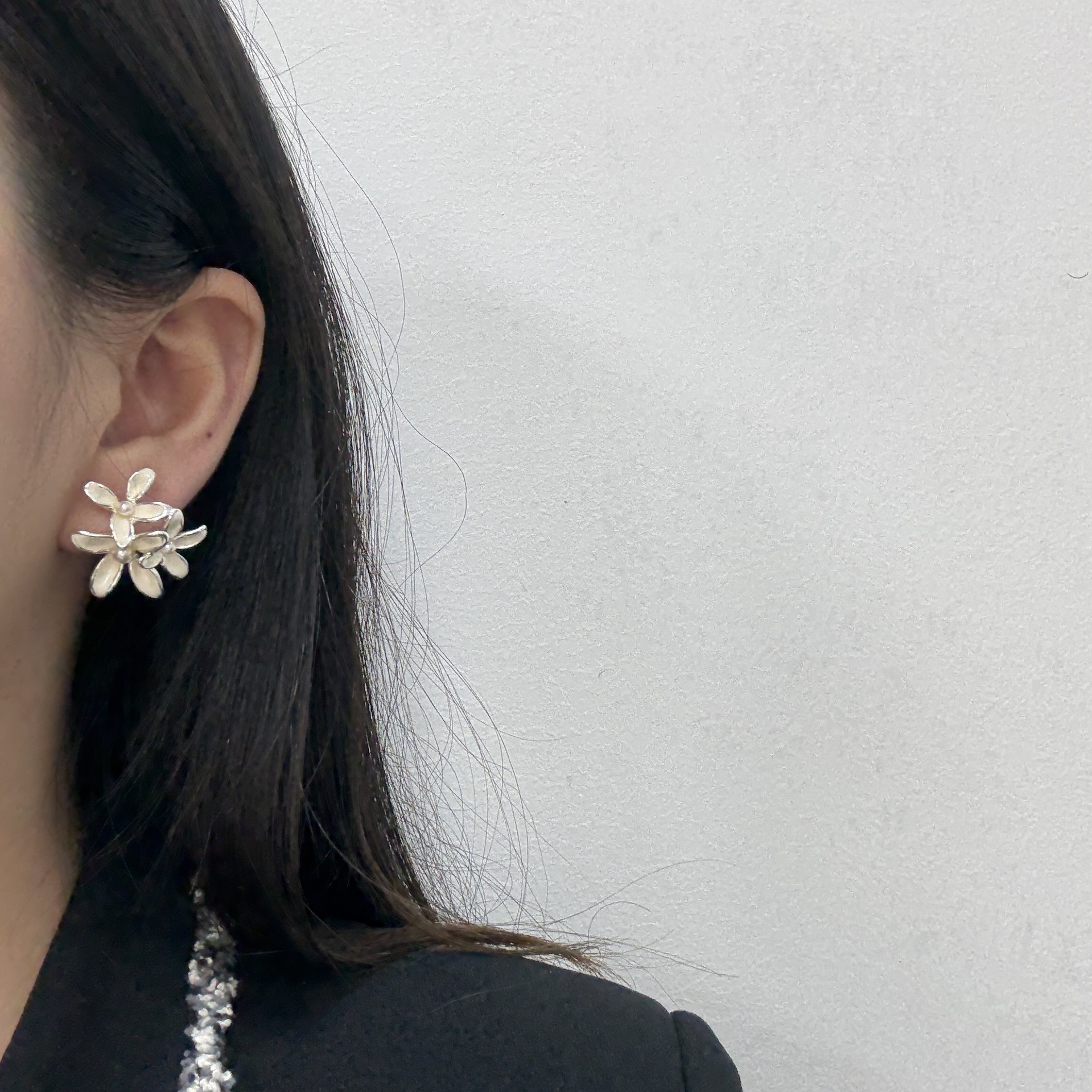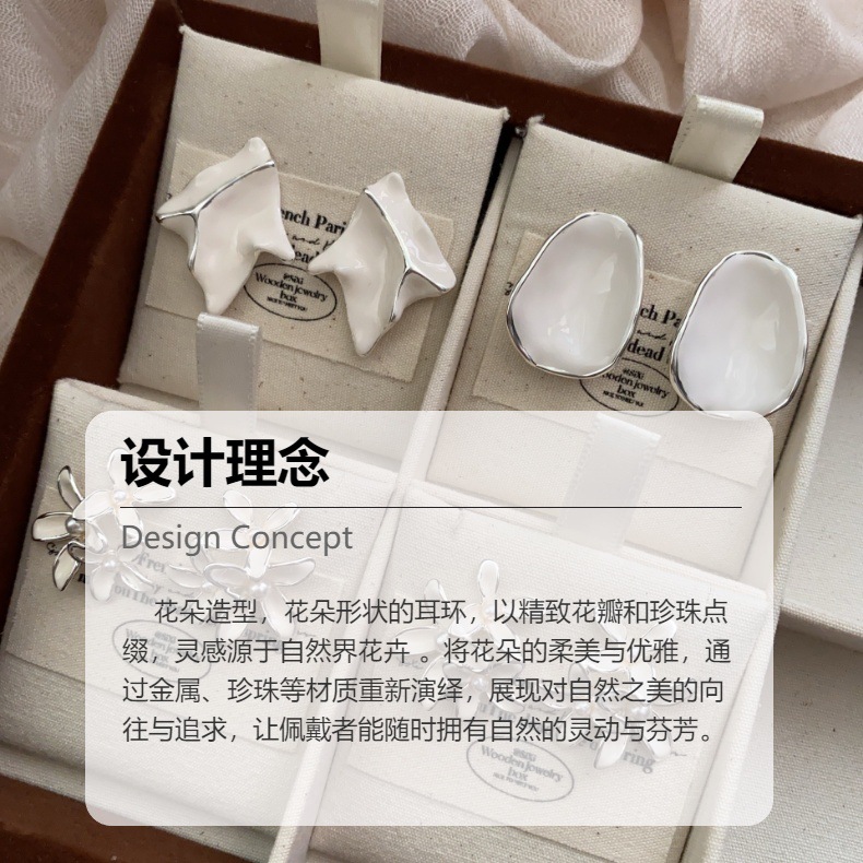 新款法式文艺复古金属珍珠花朵耳钉小众时尚百搭通勤气质耳环耳饰