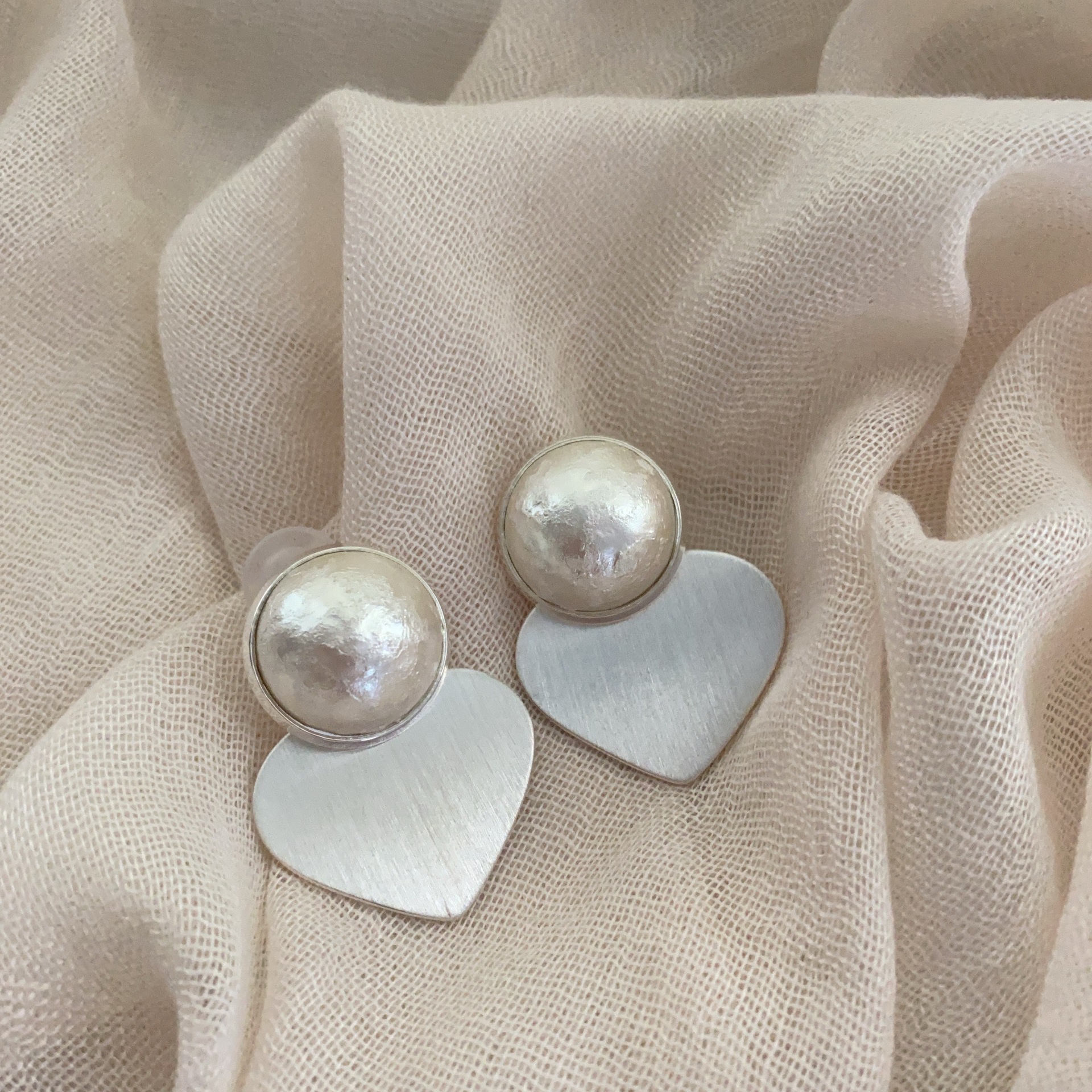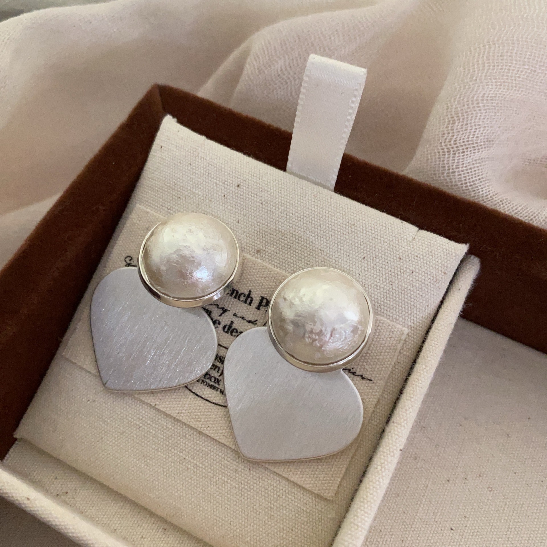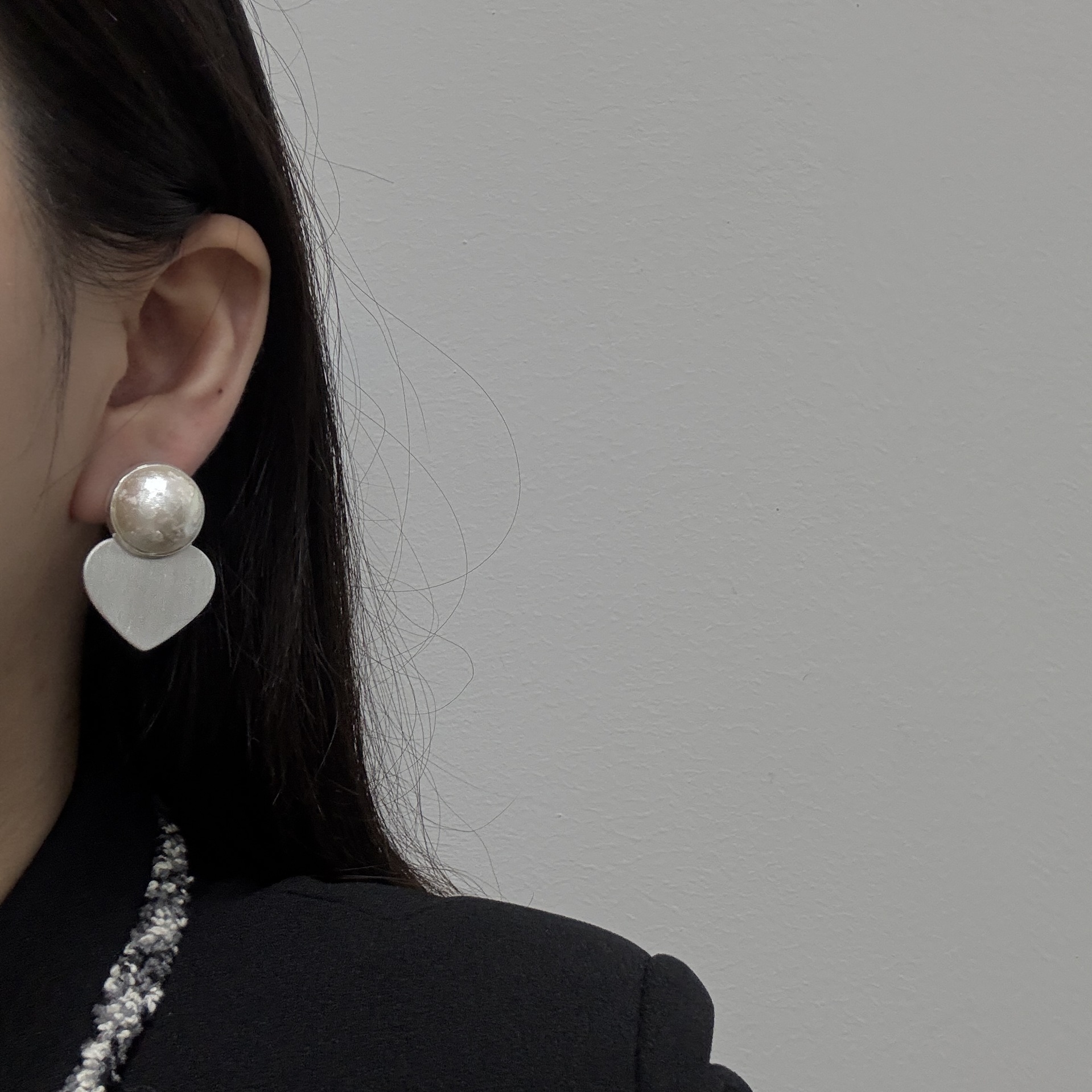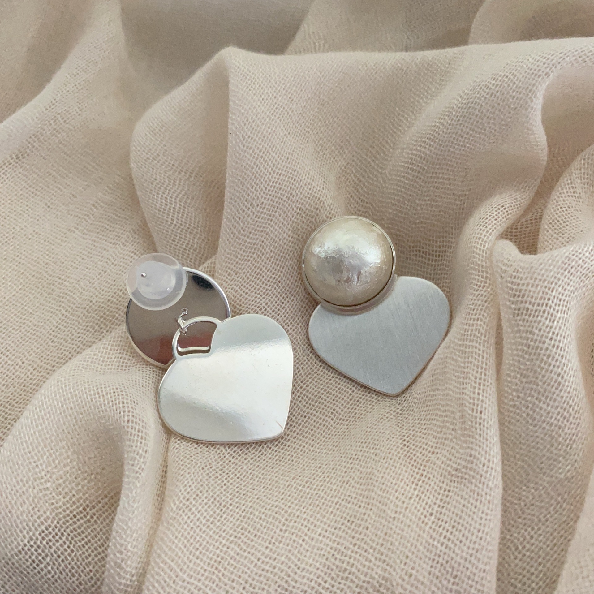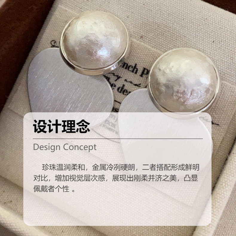 撞色金属桃心耳钉小众冷淡风爱心耳环高级感气质简约耳坠时尚耳饰