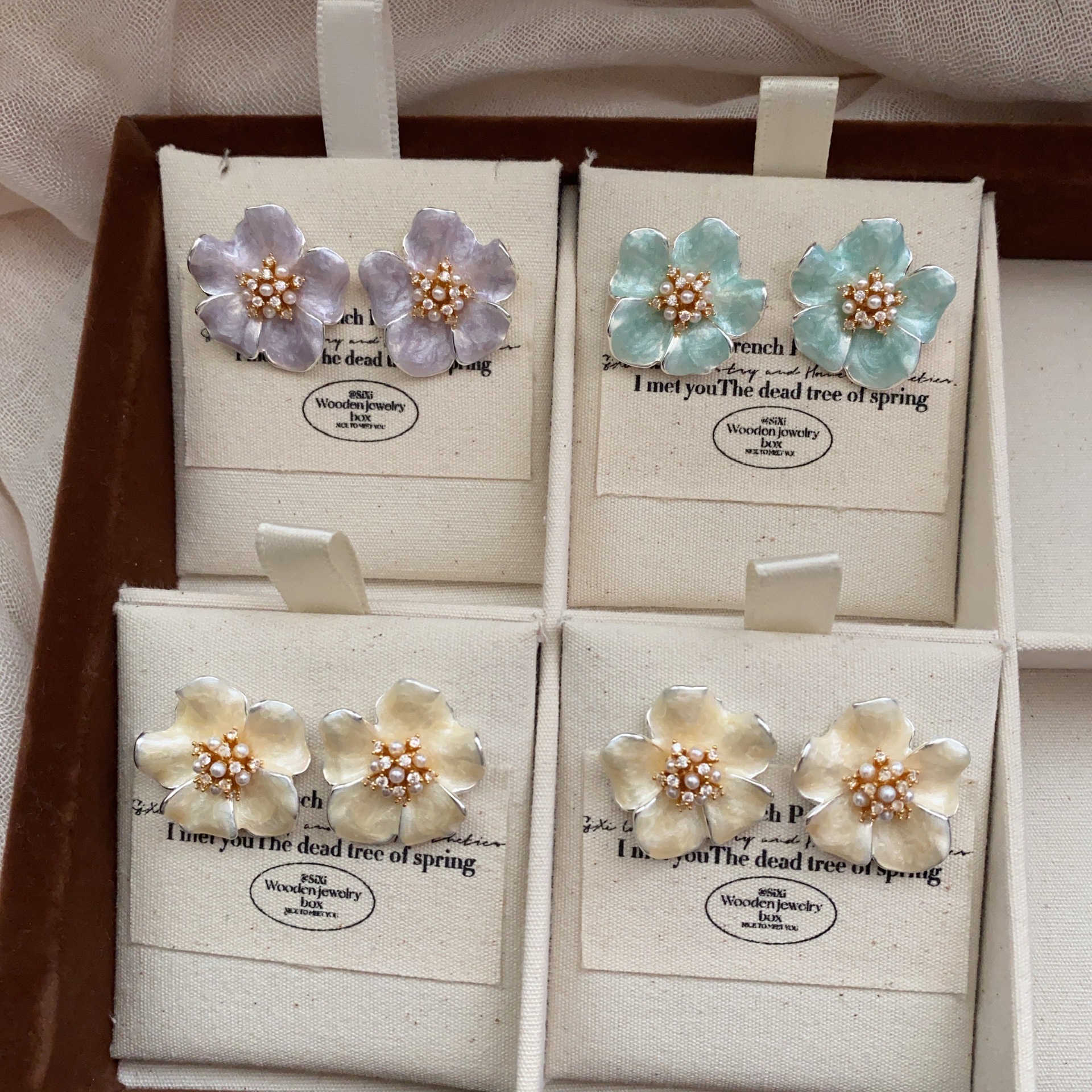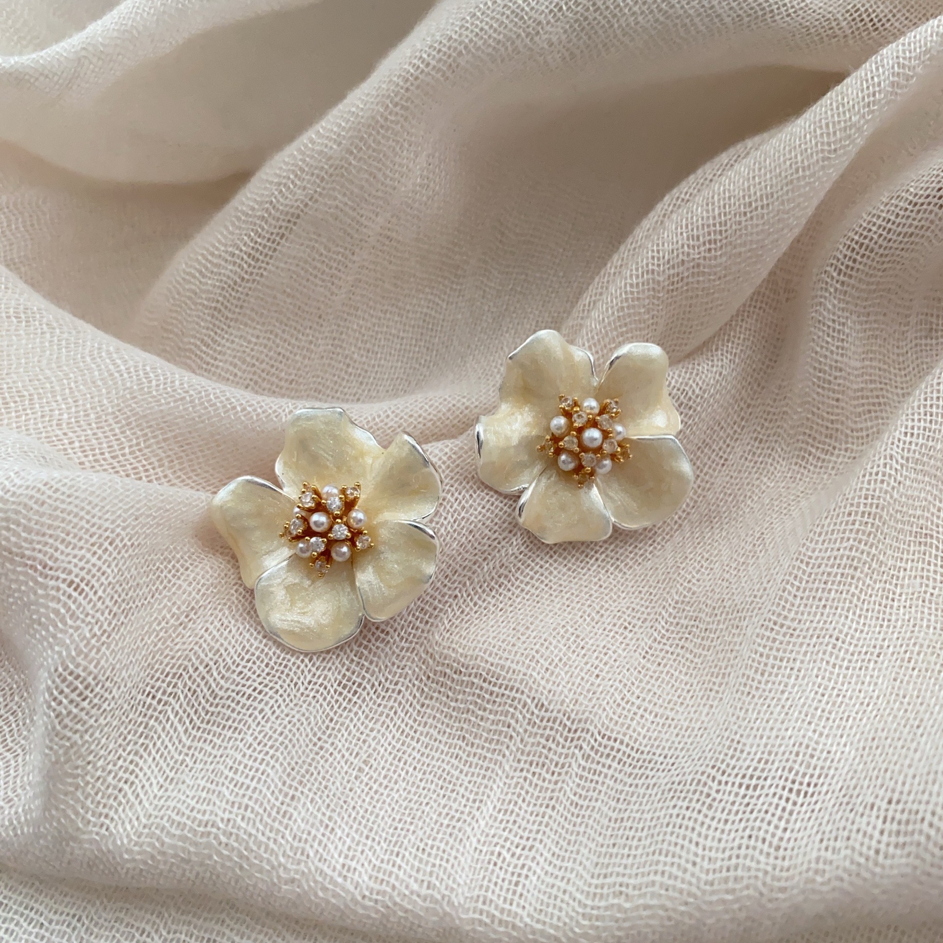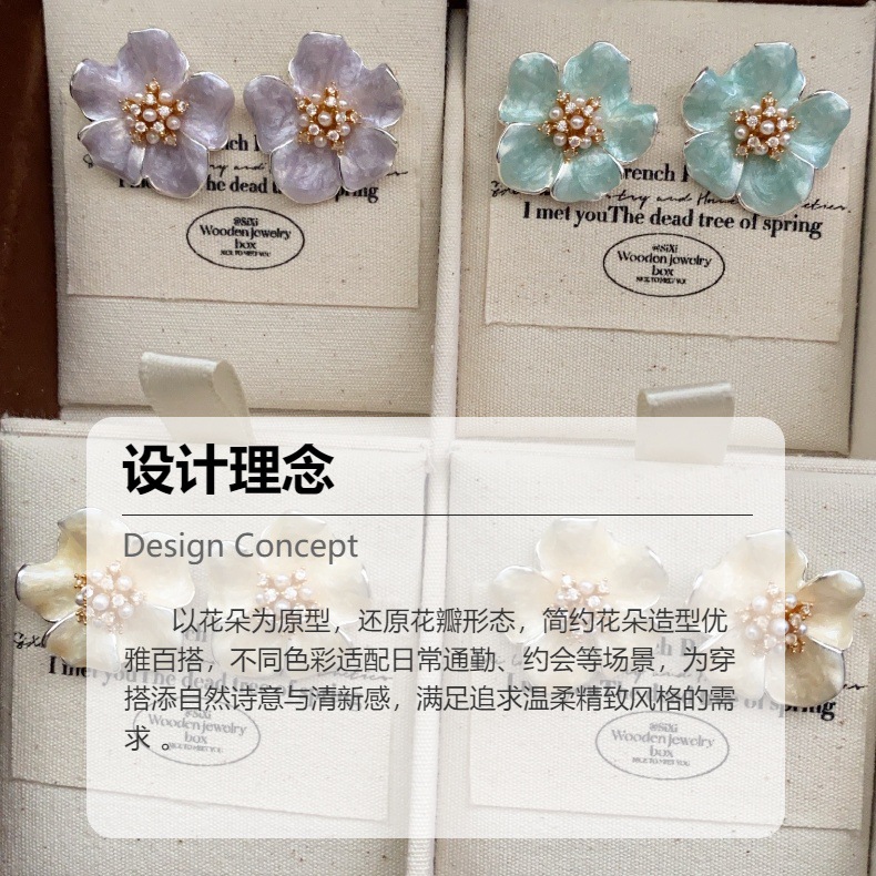法式温柔花朵珍珠耳钉韩系清新甜美气质耳环轻奢高级精致耳饰耳环