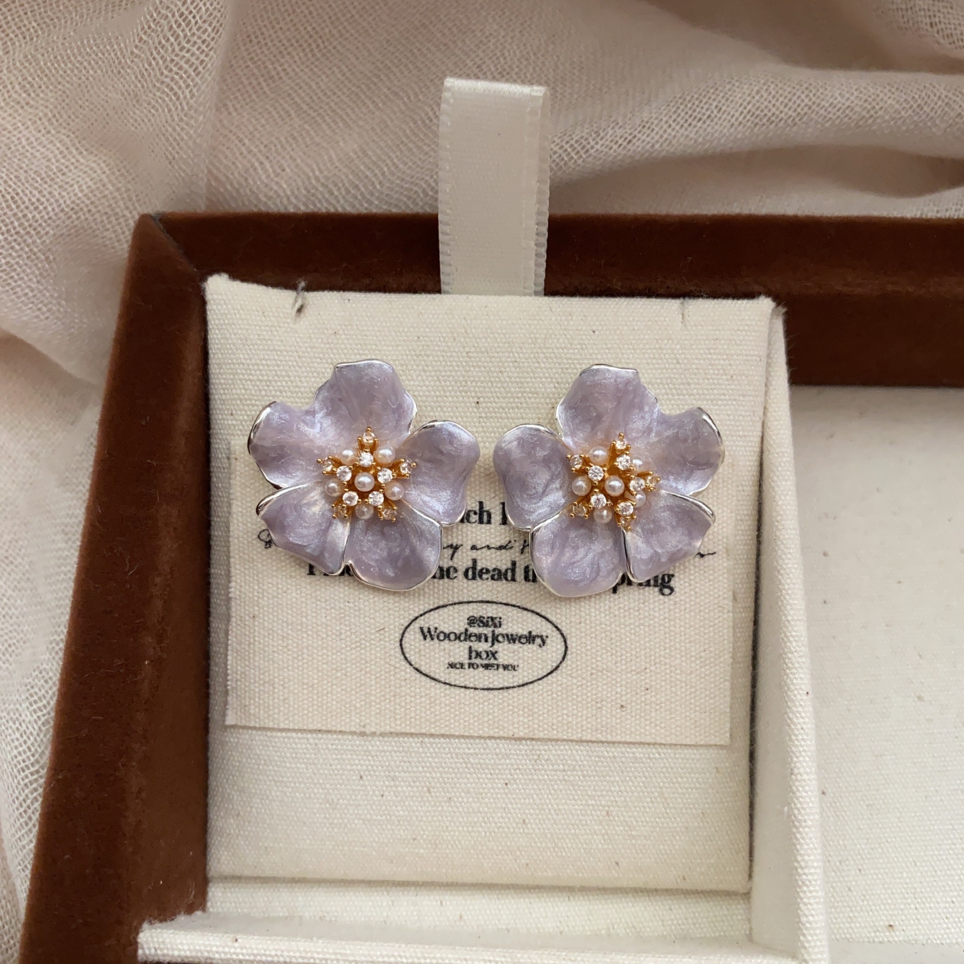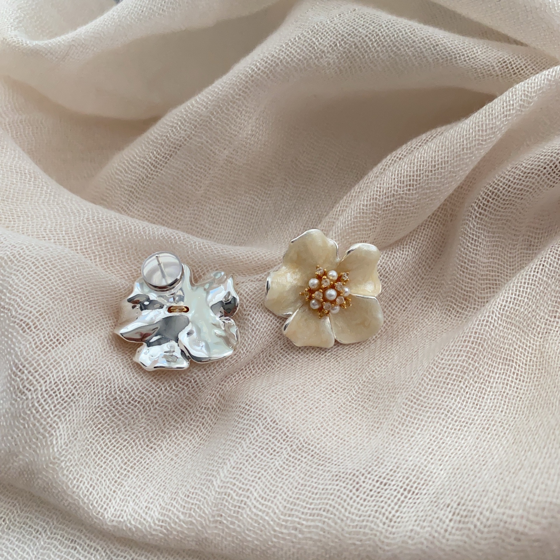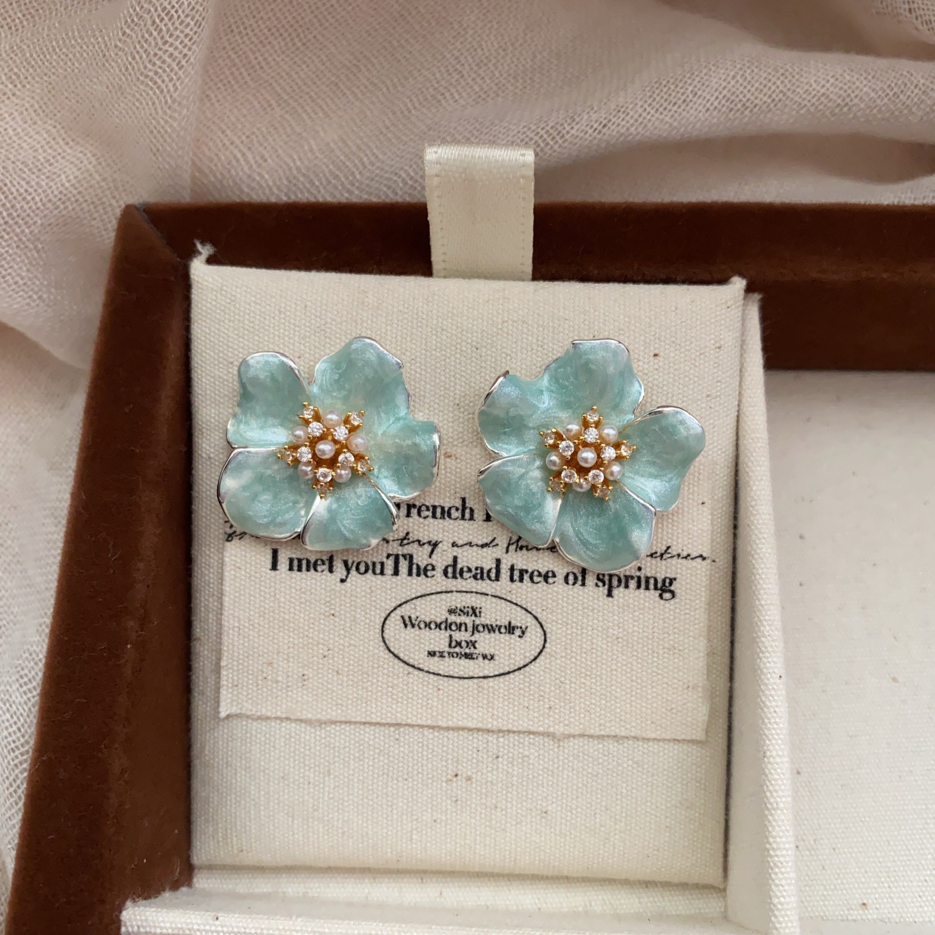 法式温柔花朵珍珠耳钉韩系清新甜美气质耳环轻奢高级精致耳饰耳环