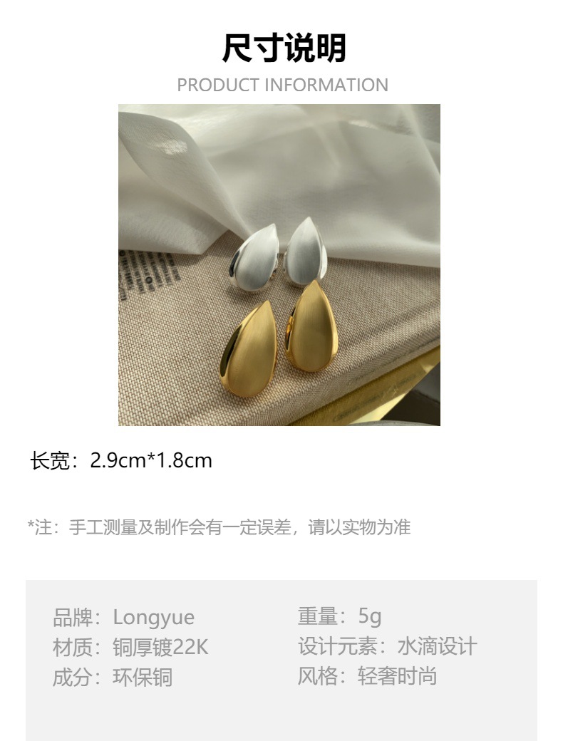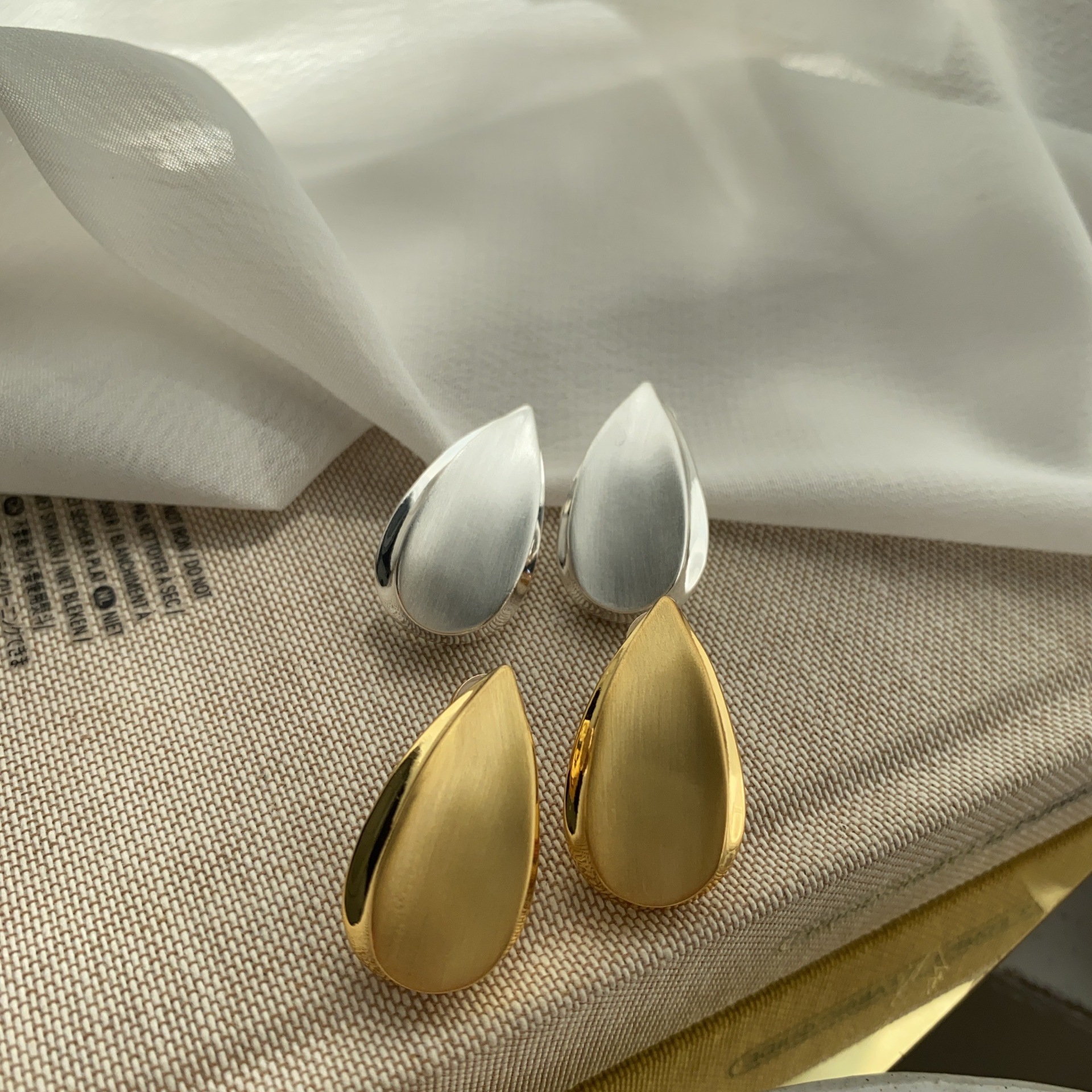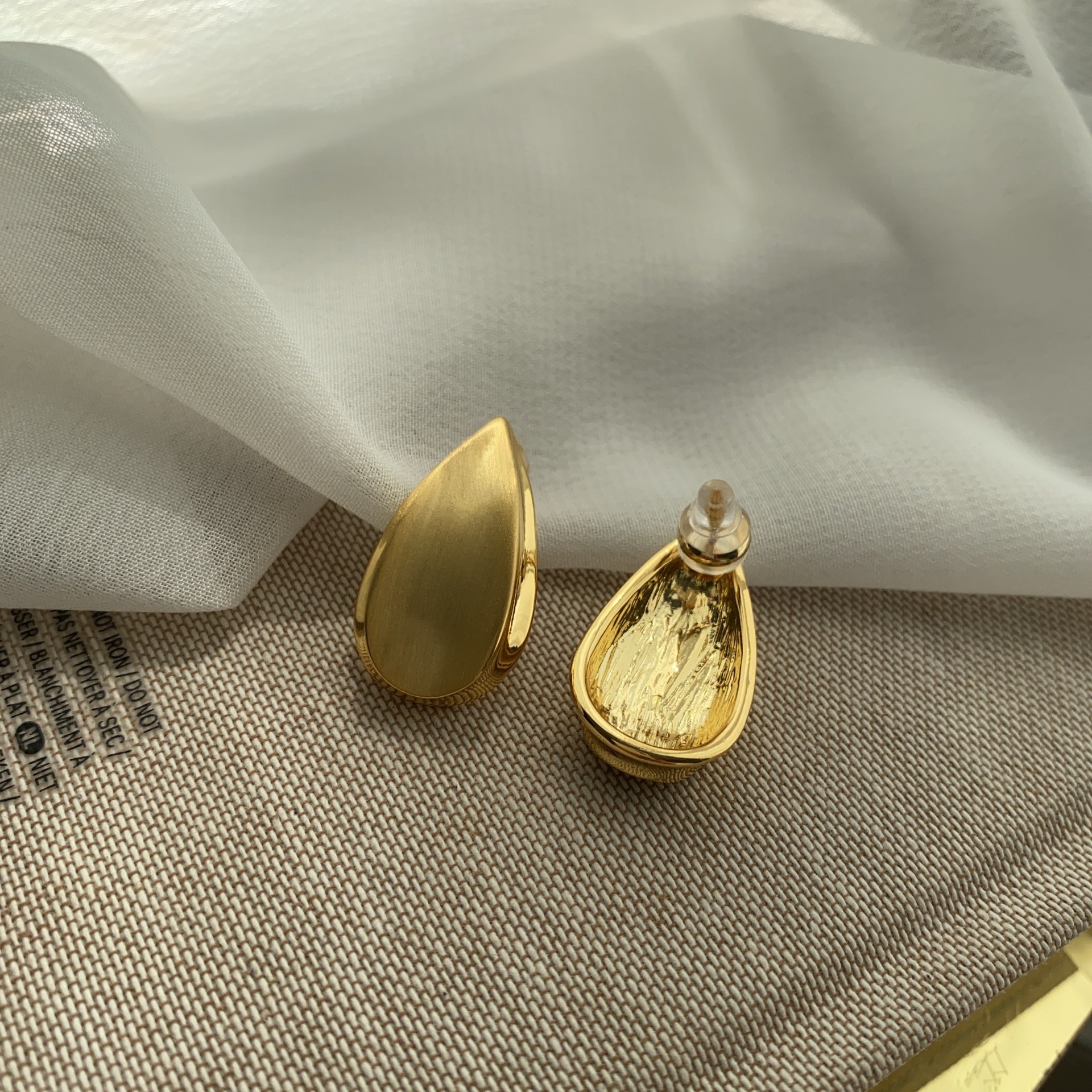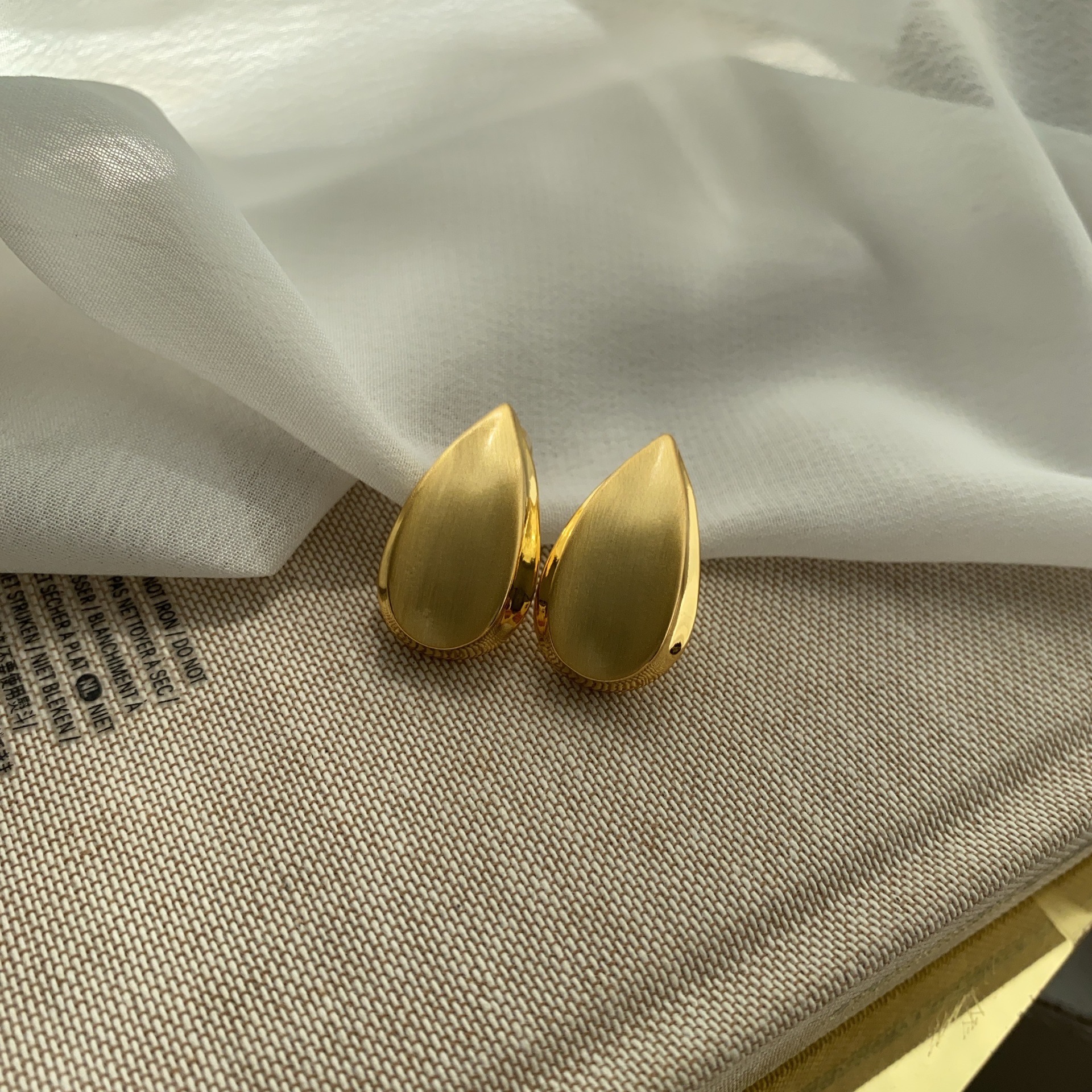 欧美大气简约水滴金色瓜子型耳钉耳环极简风金属质感时尚潮流耳饰