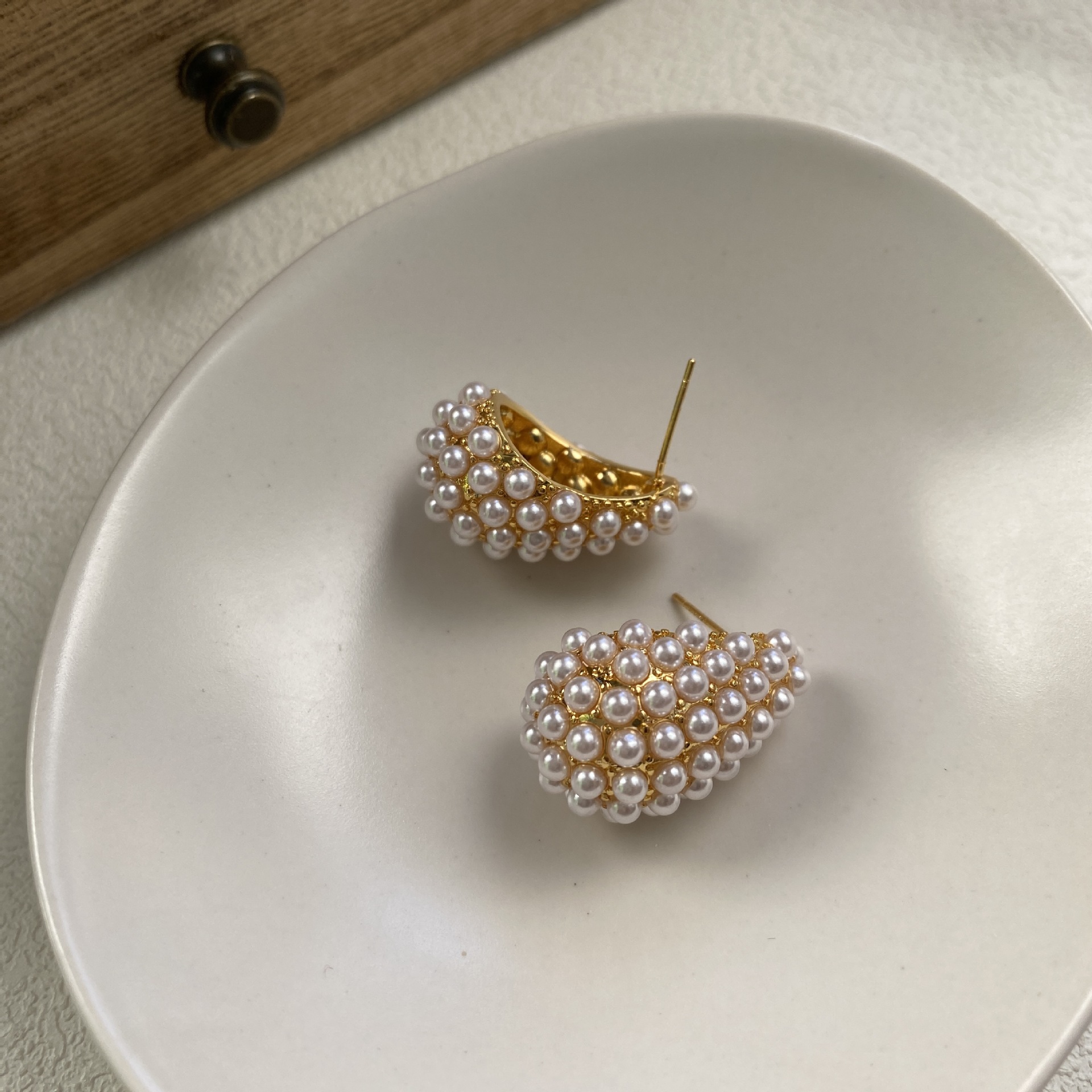高端气质时尚简约金属珍珠耳环女轻奢气质耳饰设计感百搭饰品耳钉