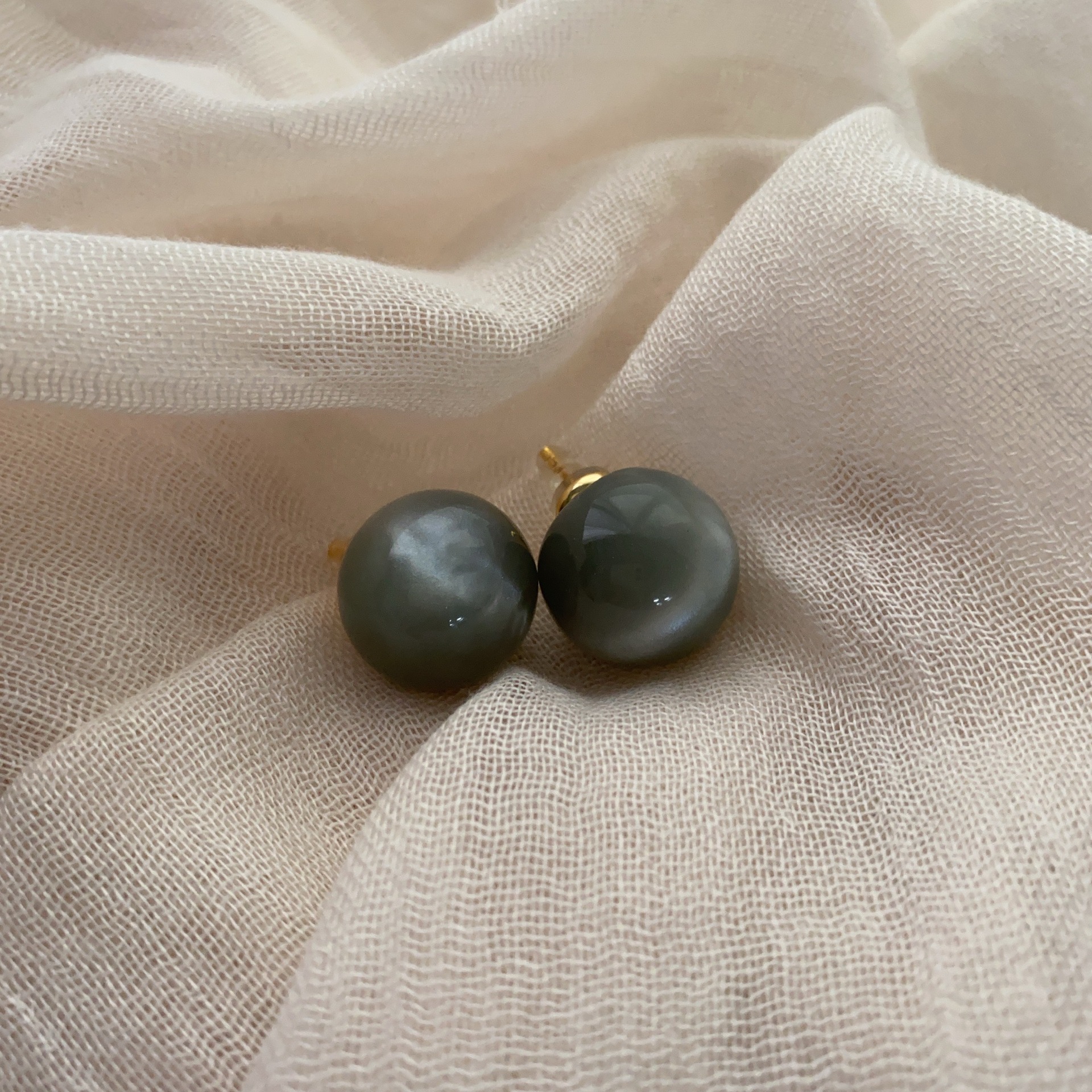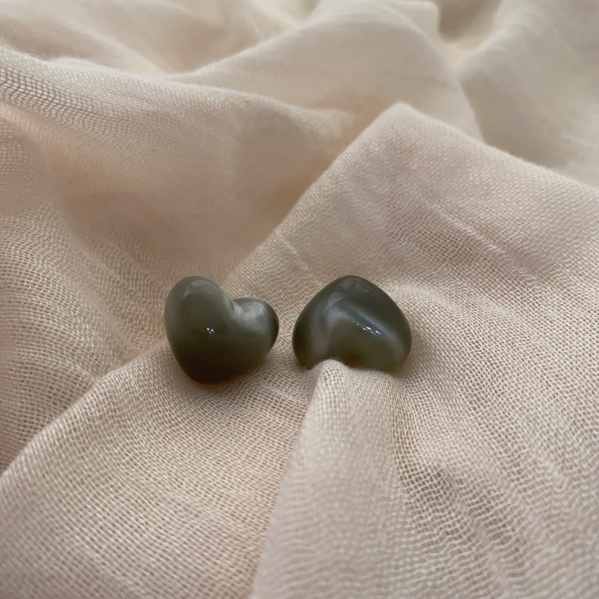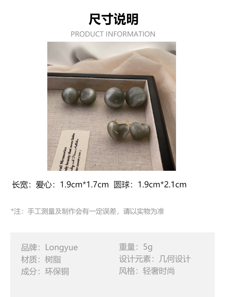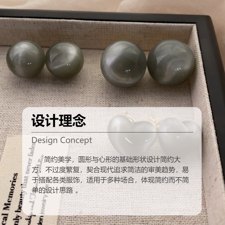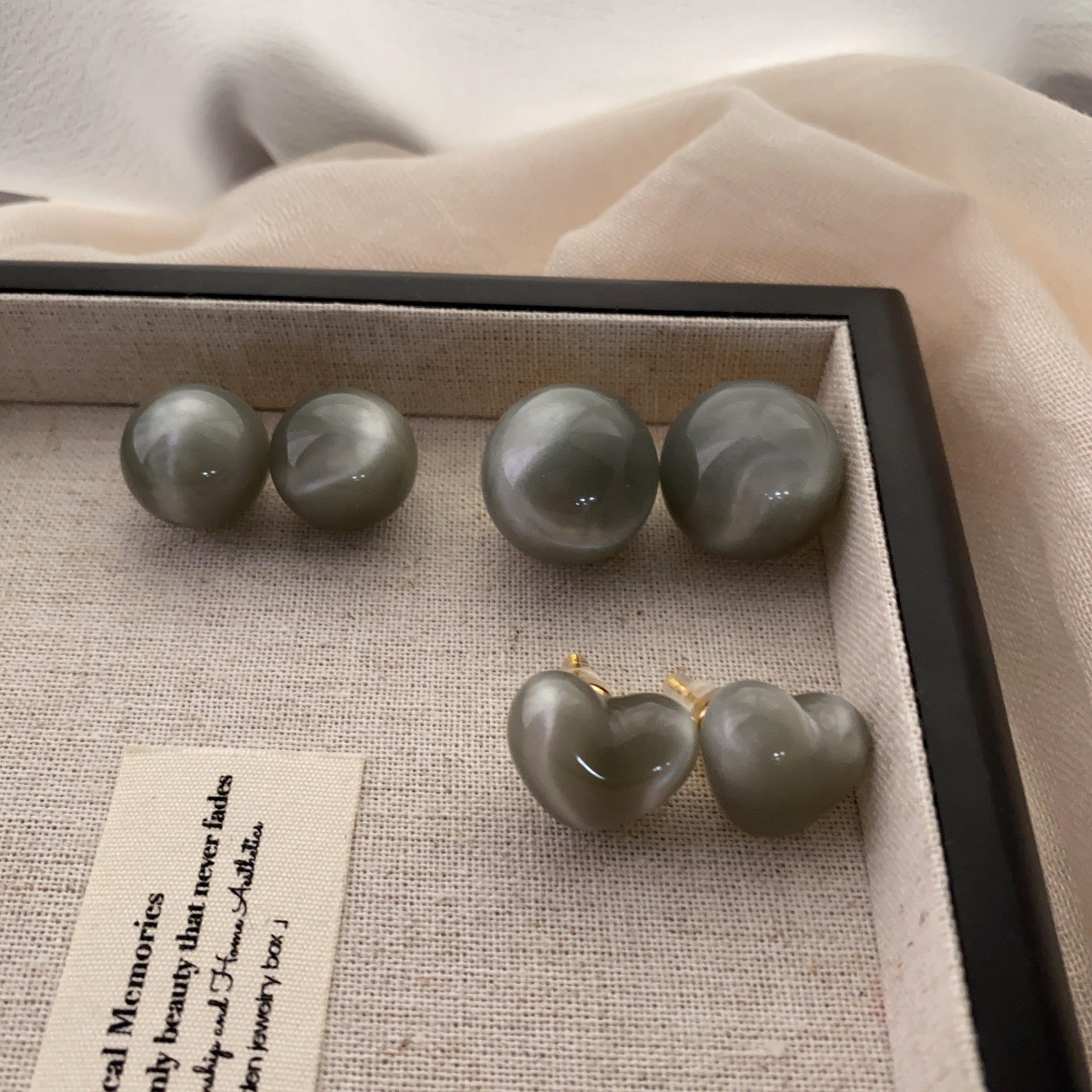 夏日多巴胺灰色晕染爱心圆球耳钉女通勤气质爆款独特百搭时尚耳饰