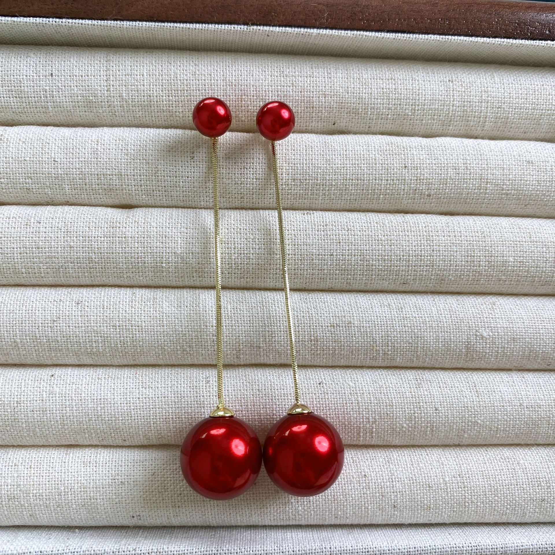 珍珠流苏耳环韩国新款女神专属长款香槟色圆脸显瘦耳坠女耳饰耳钉