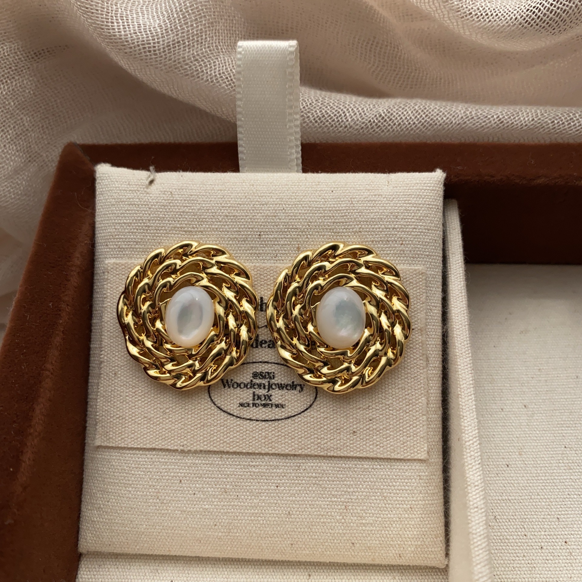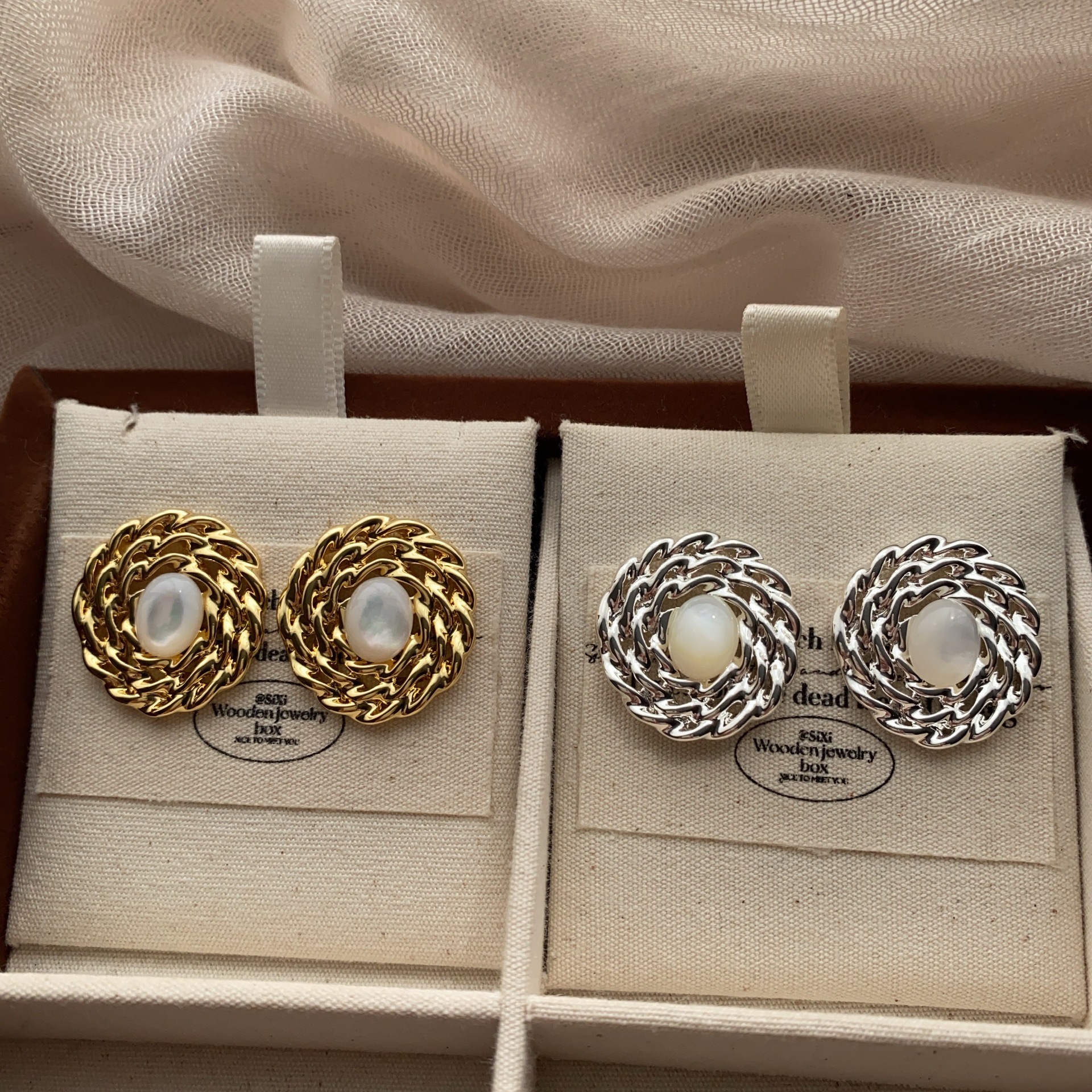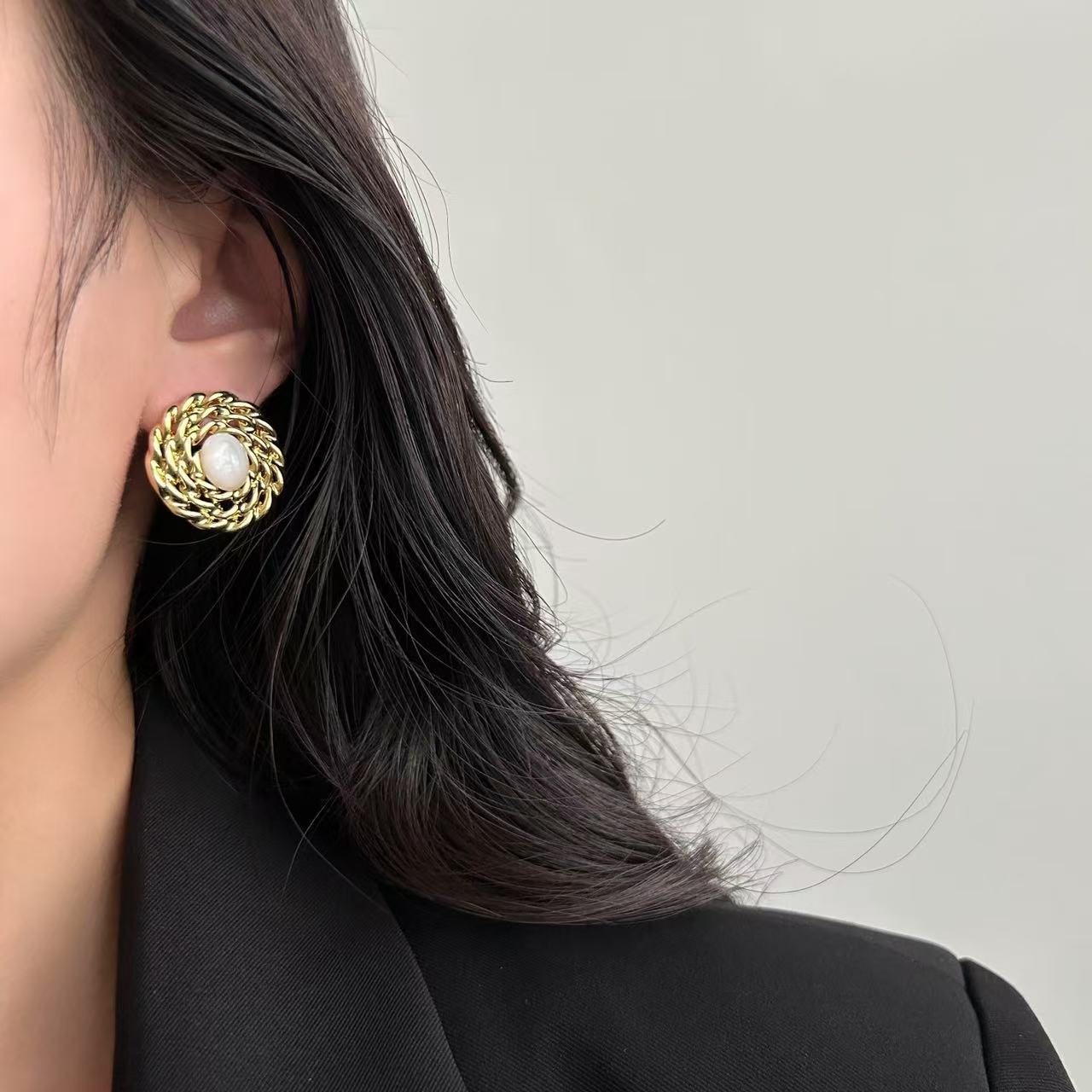 金属圆形螺旋耳钉耳环几何时尚高级经典百搭优雅柔美复古轻奢耳饰