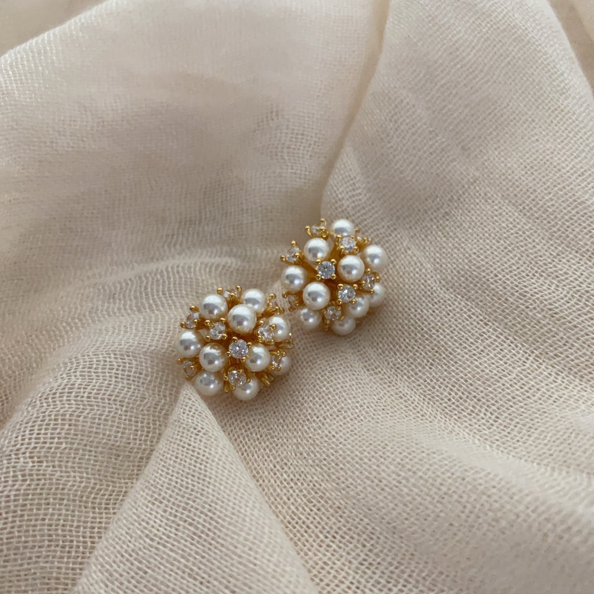 珍珠球可爱俏皮耳钉春夏新款法式复古百搭小清新时尚通勤珍珠耳环