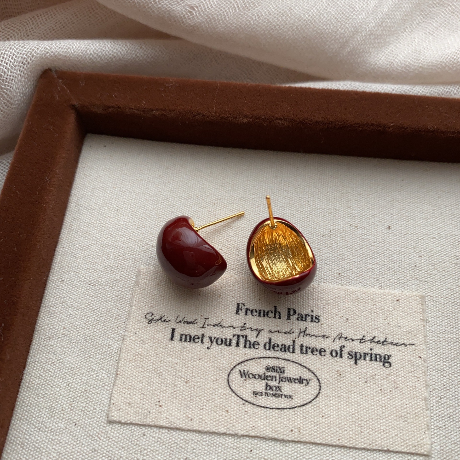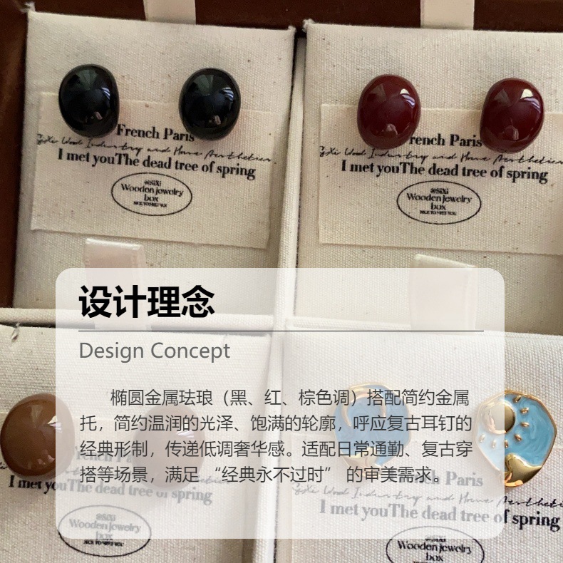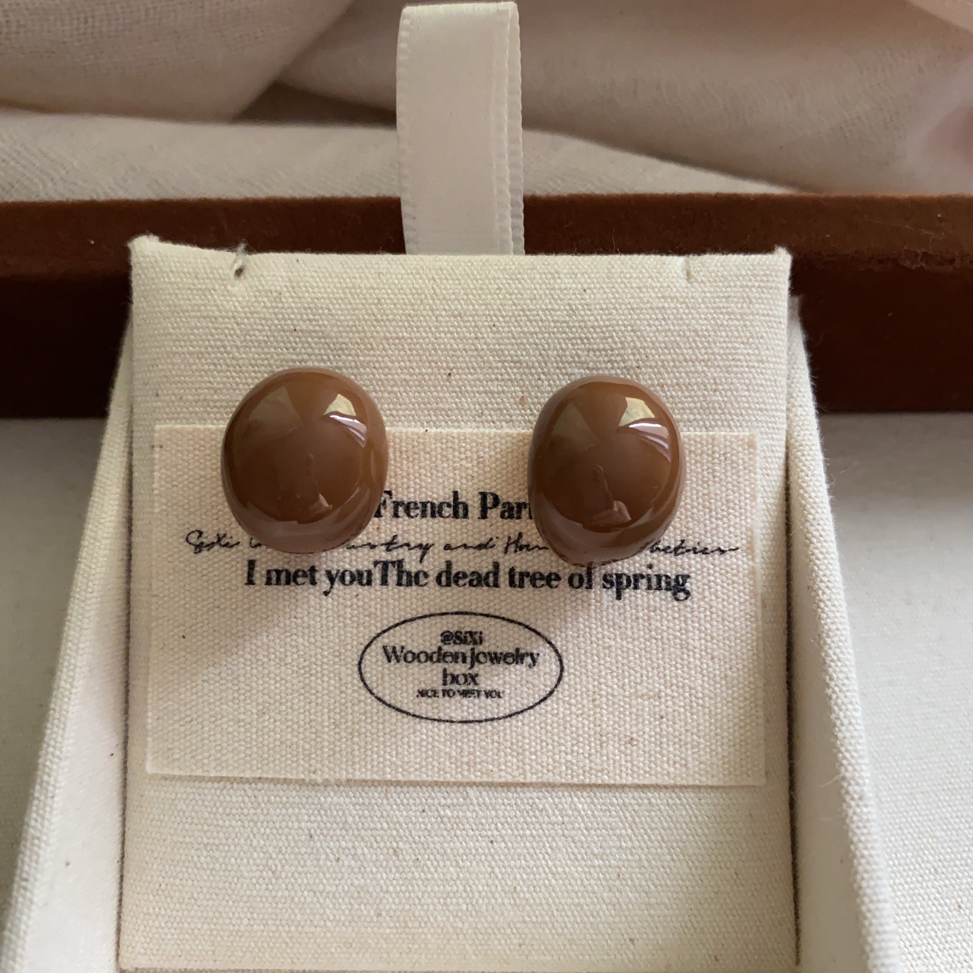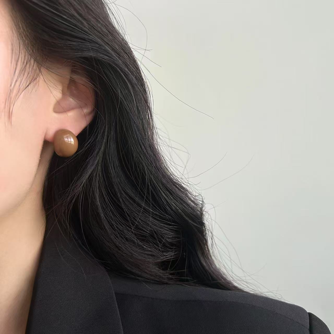 滴釉椭圆球豆豆耳钉耳环个性时尚百搭美拉德小众轻奢法式秋冬耳环
