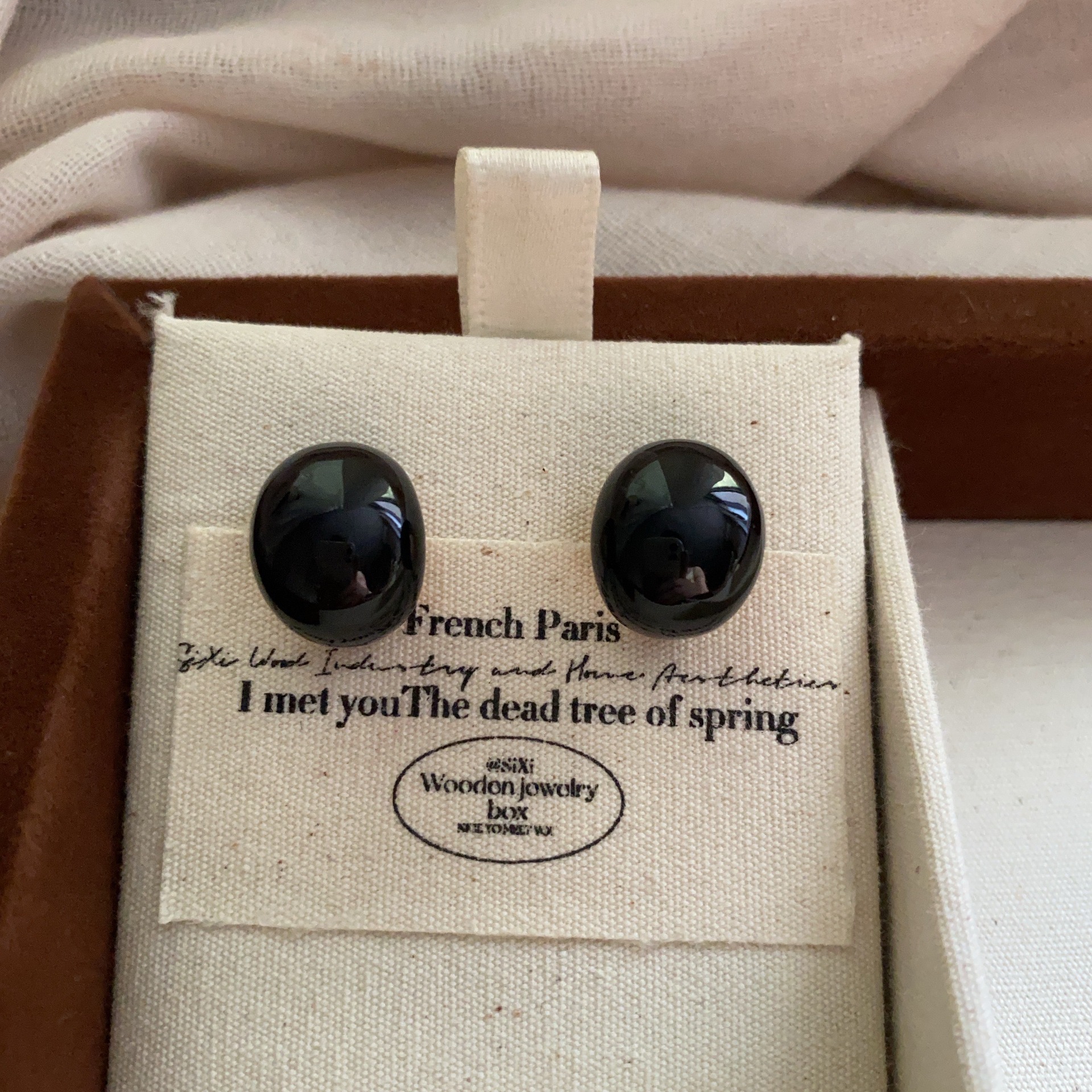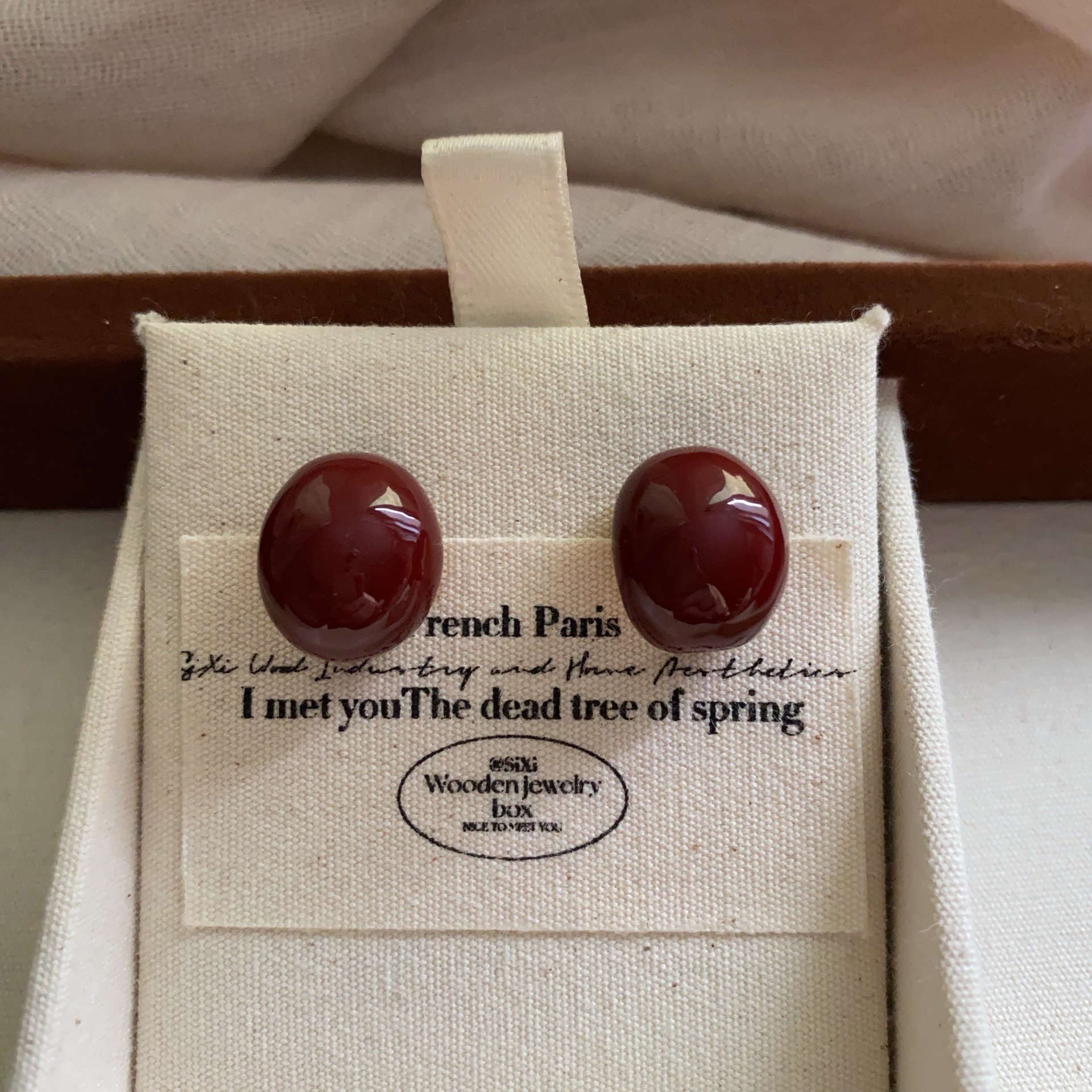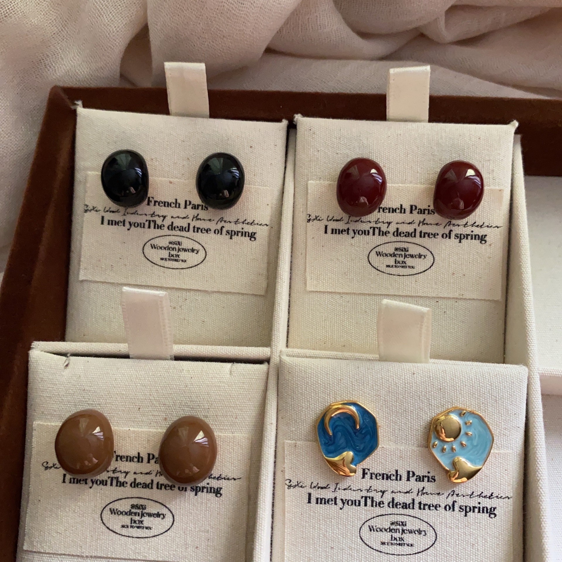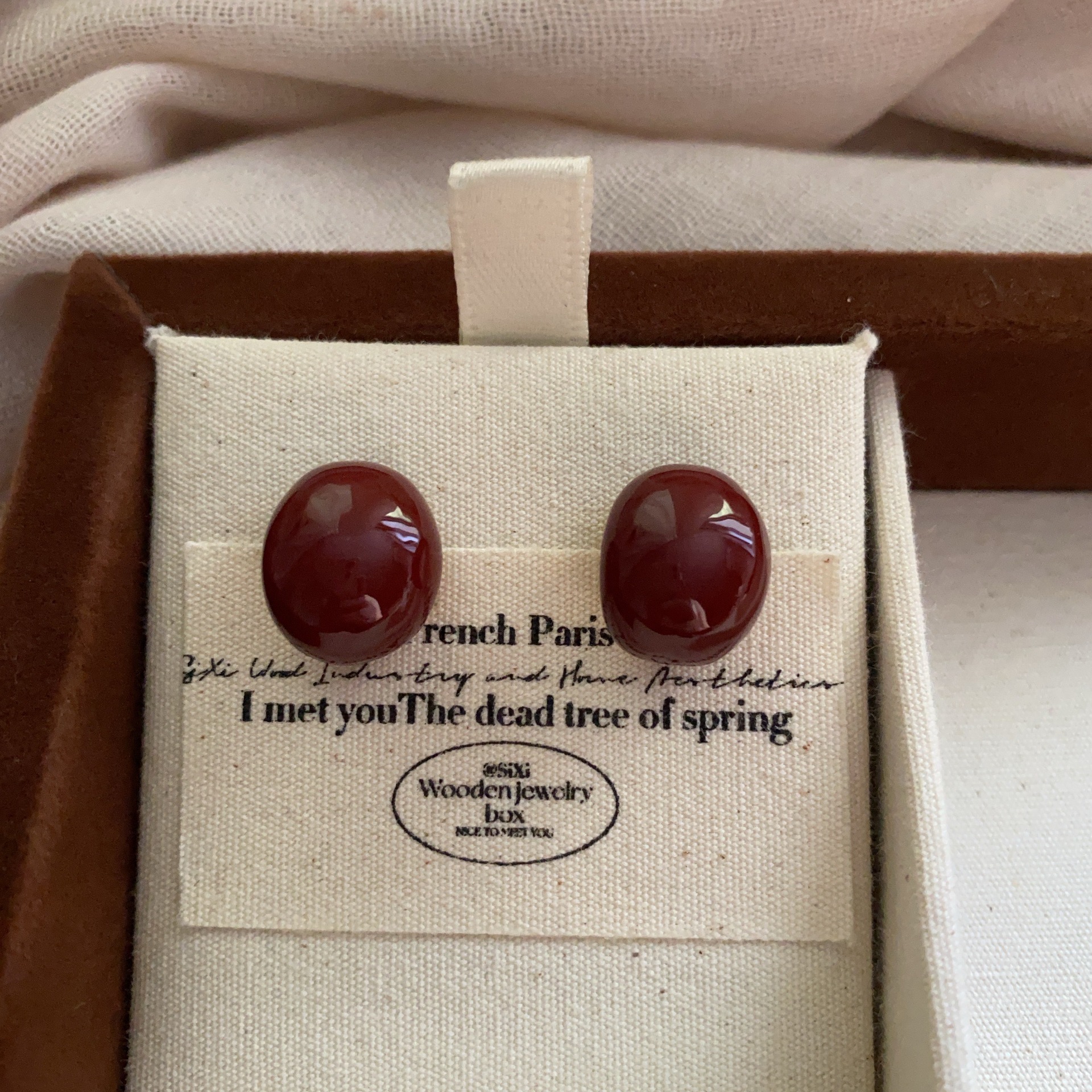 滴釉椭圆球豆豆耳钉耳环个性时尚百搭美拉德小众轻奢法式秋冬耳环