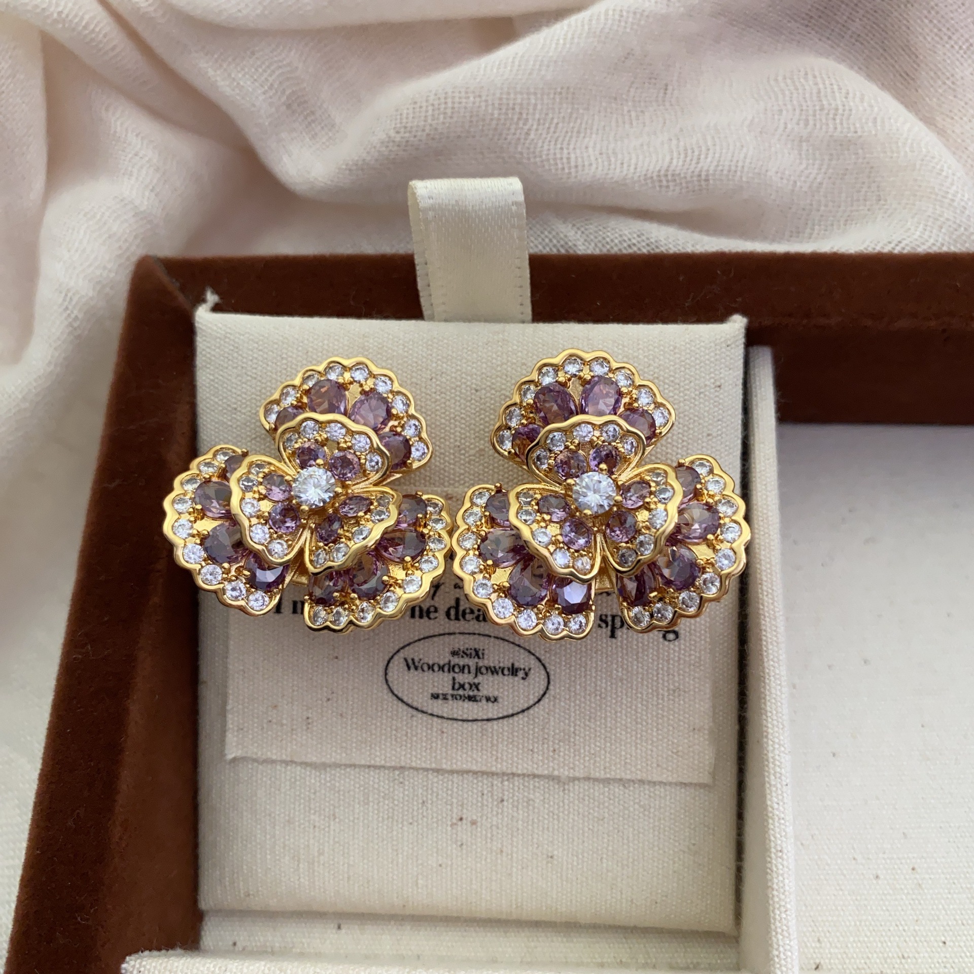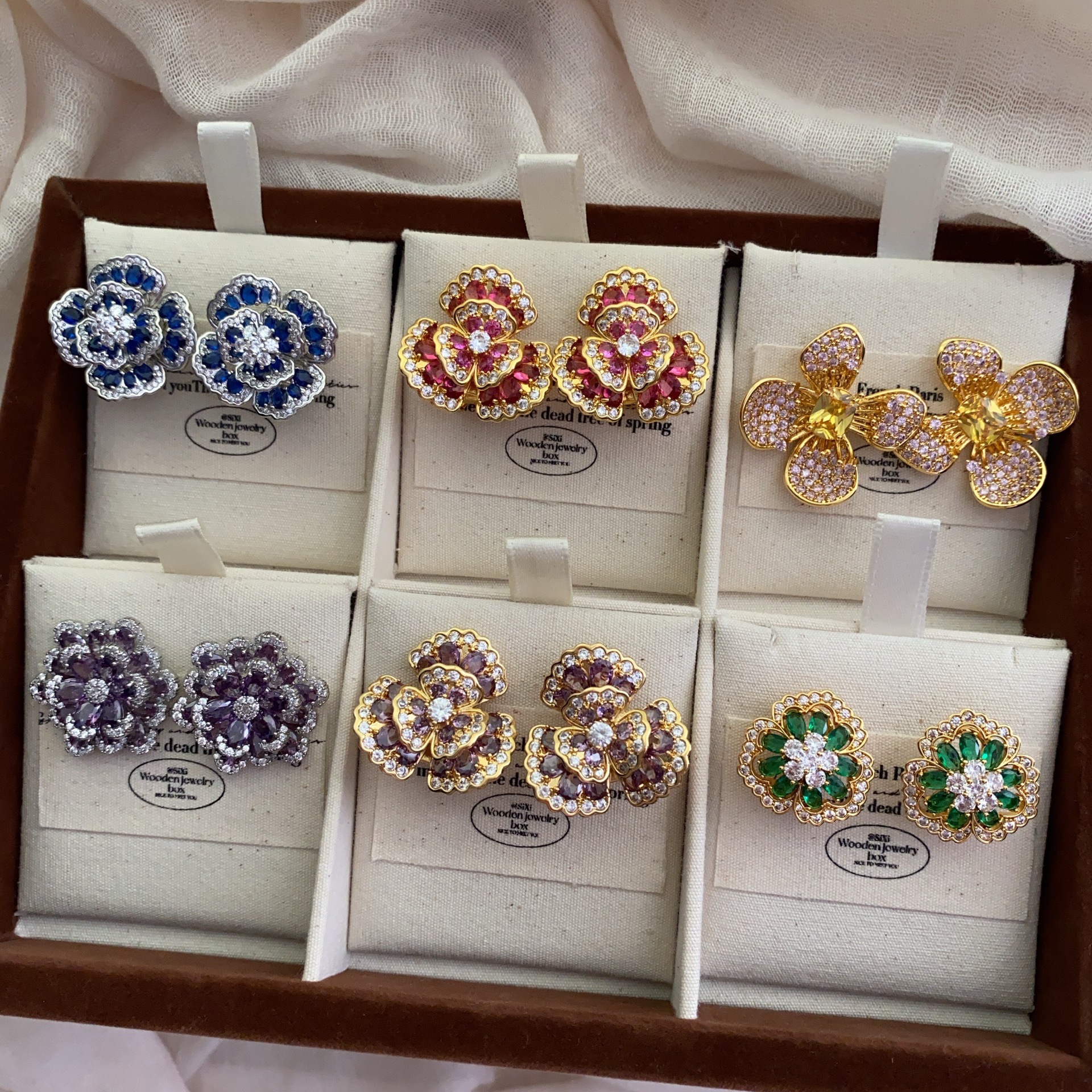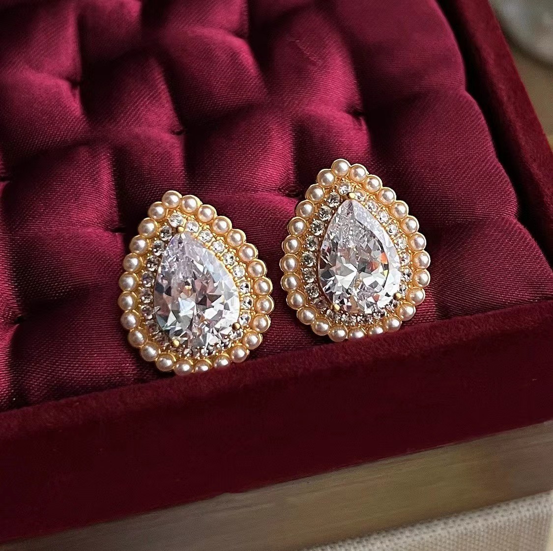 法式复古轻奢精致超闪简约锆石耳扣多色气质小众批发时尚耳钉耳环