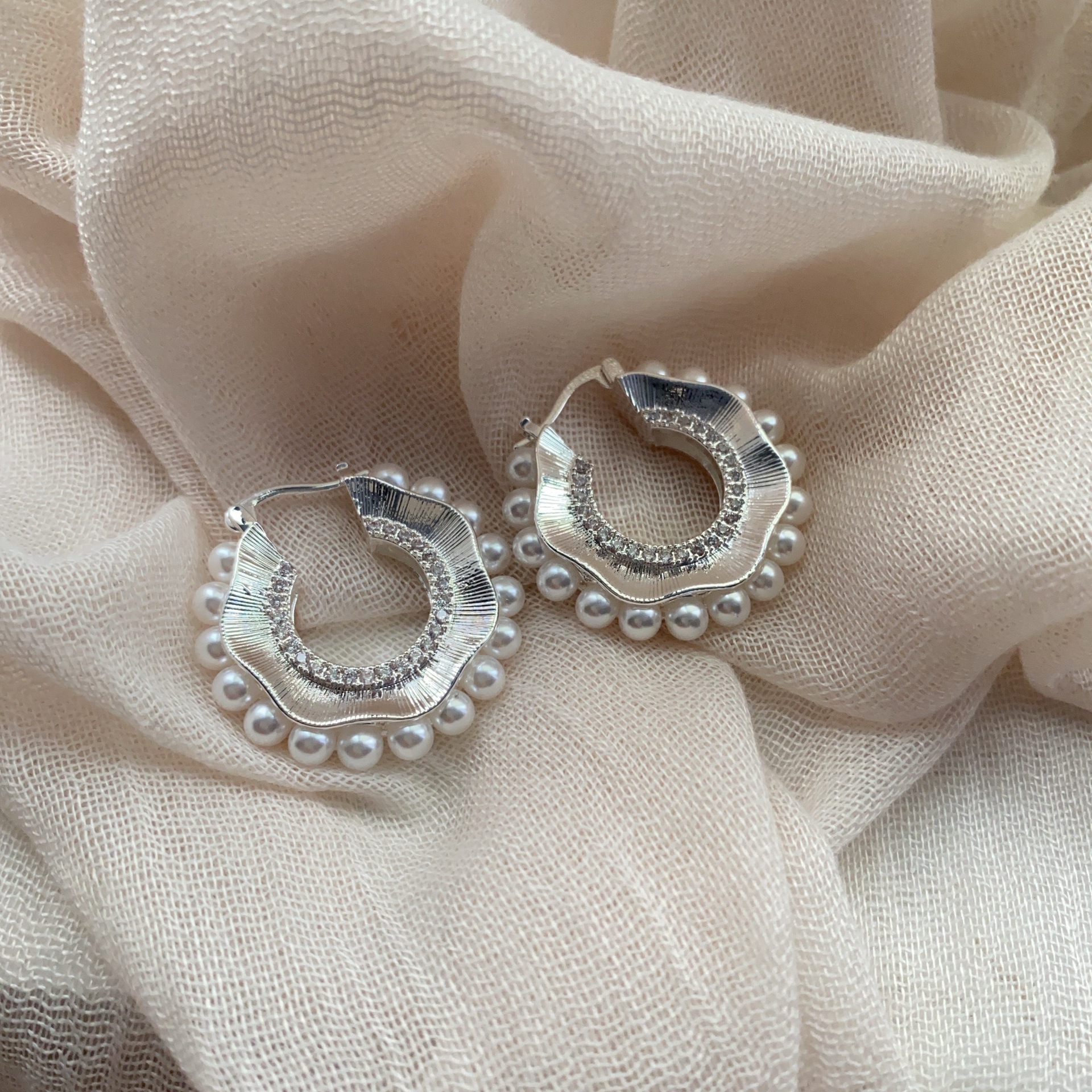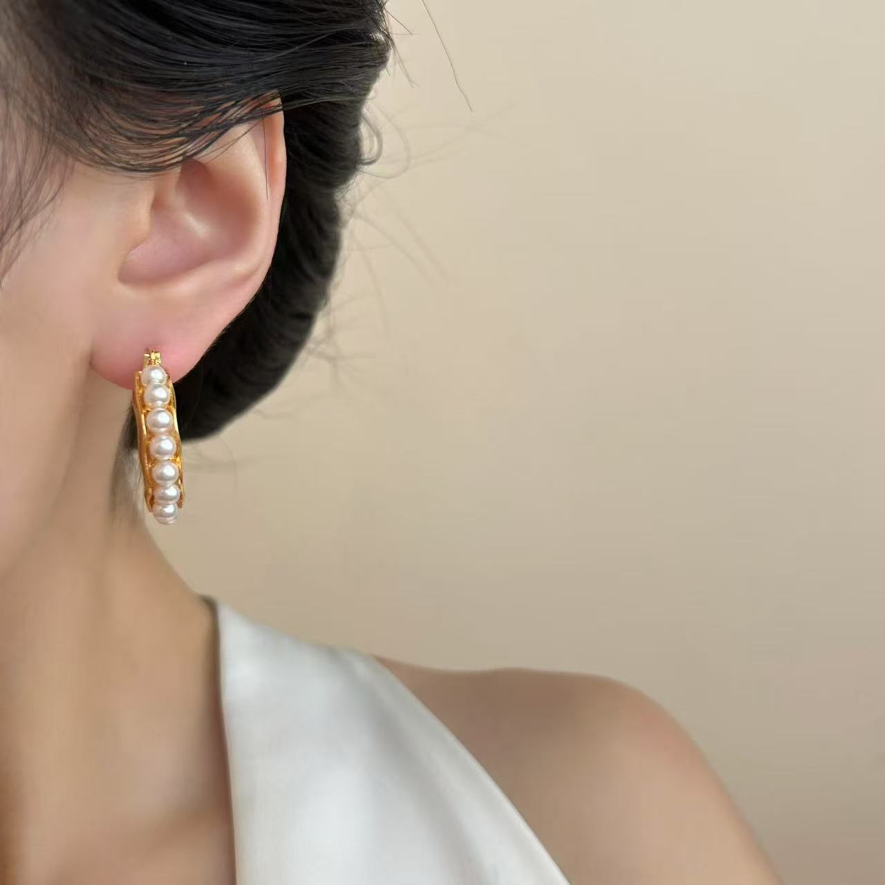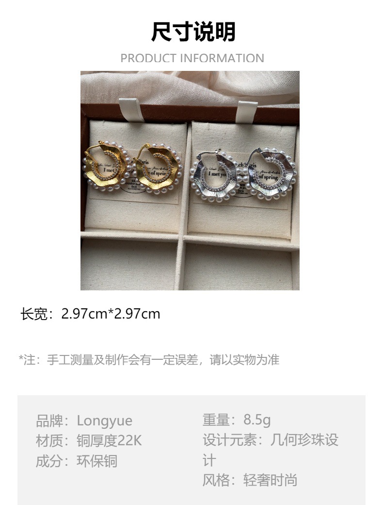 法式复古气质米粒珍珠耳环新款不规则褶皱半圆形耳饰精致气质耳钉