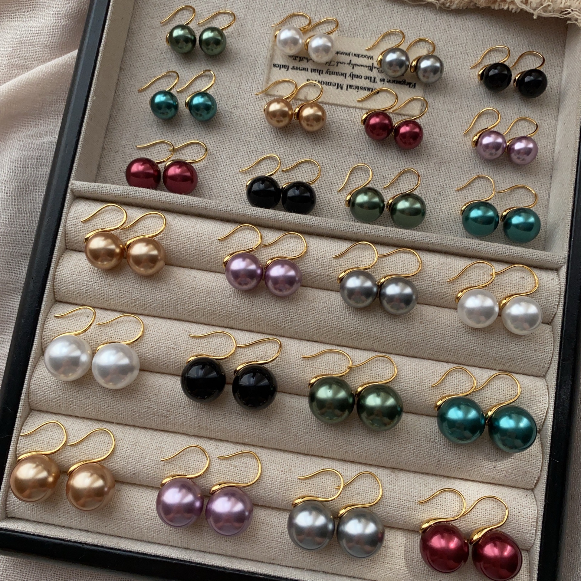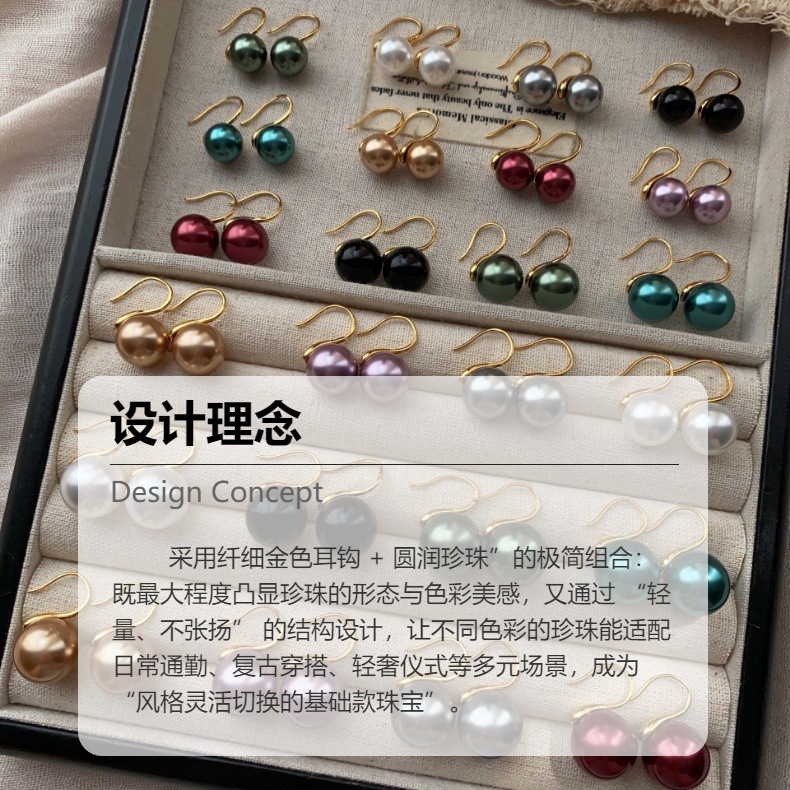 多色彩珍珠耳钉耳环优雅轻奢小众高级感经典个性时尚通勤耳钩耳钉