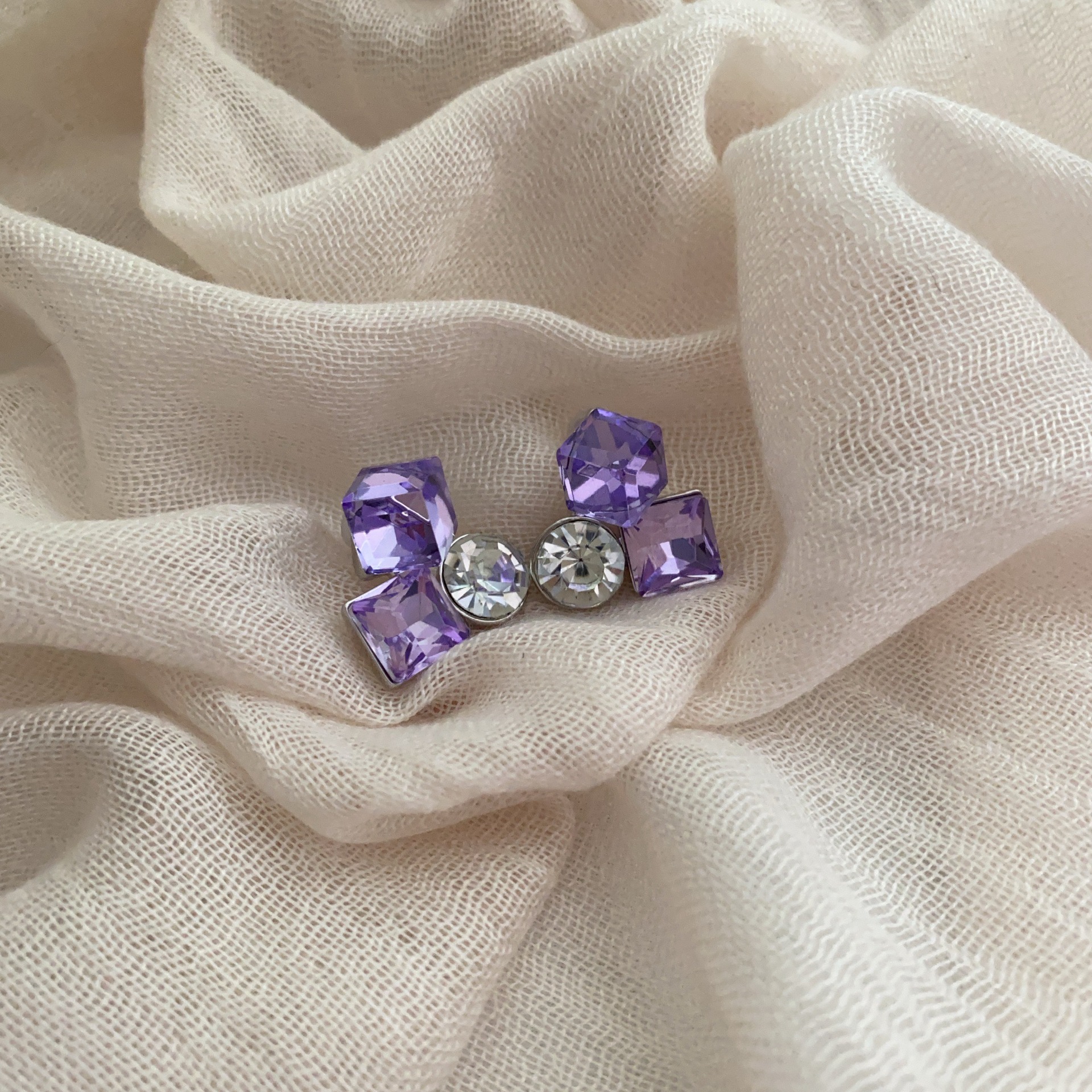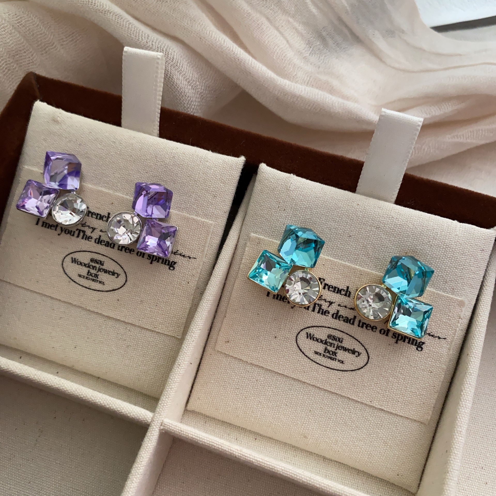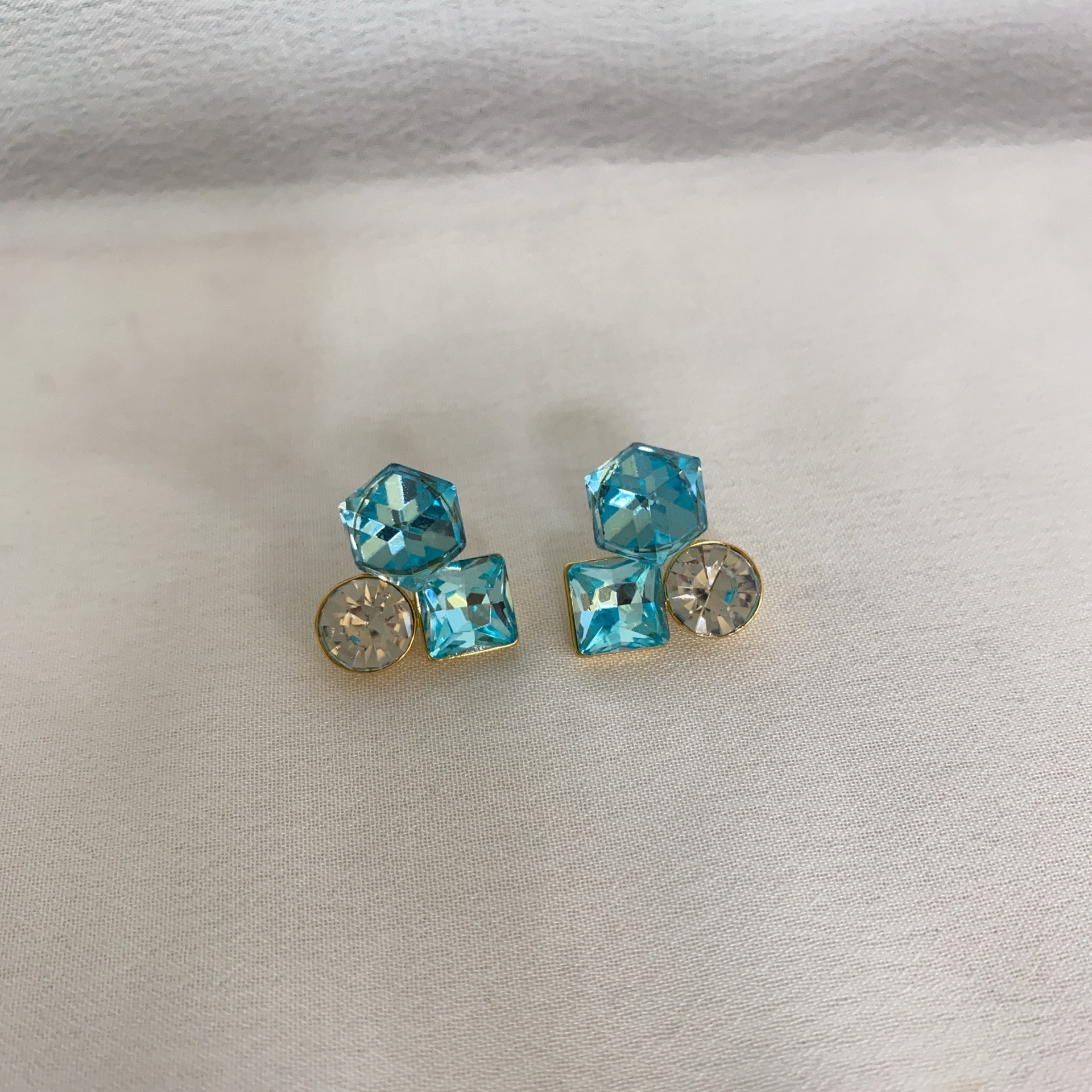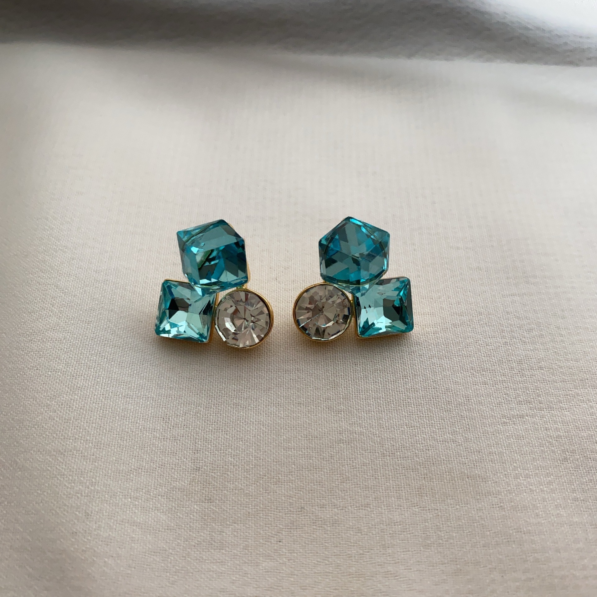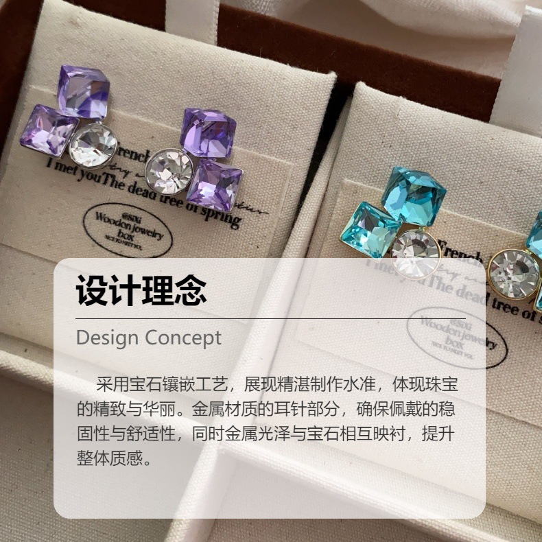 爆款花样年华方糖耳钉蓝色水晶精致百搭轻奢时尚小众设计韩版耳饰