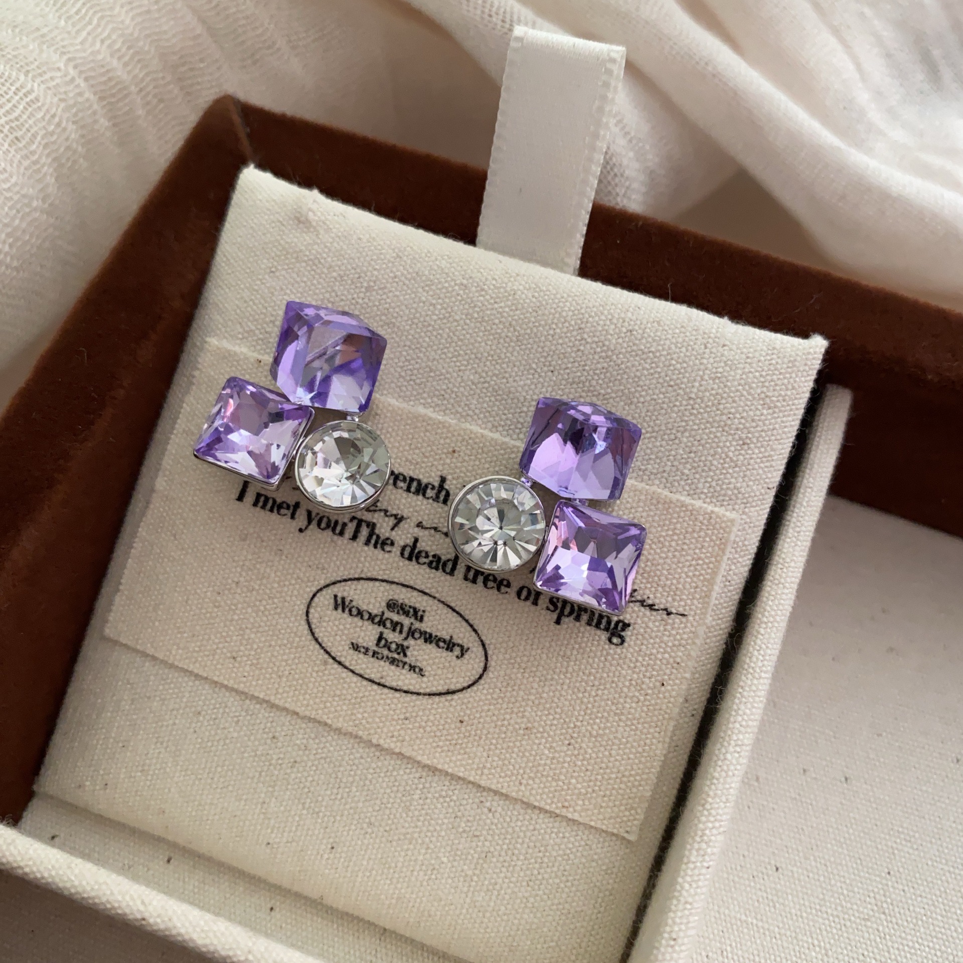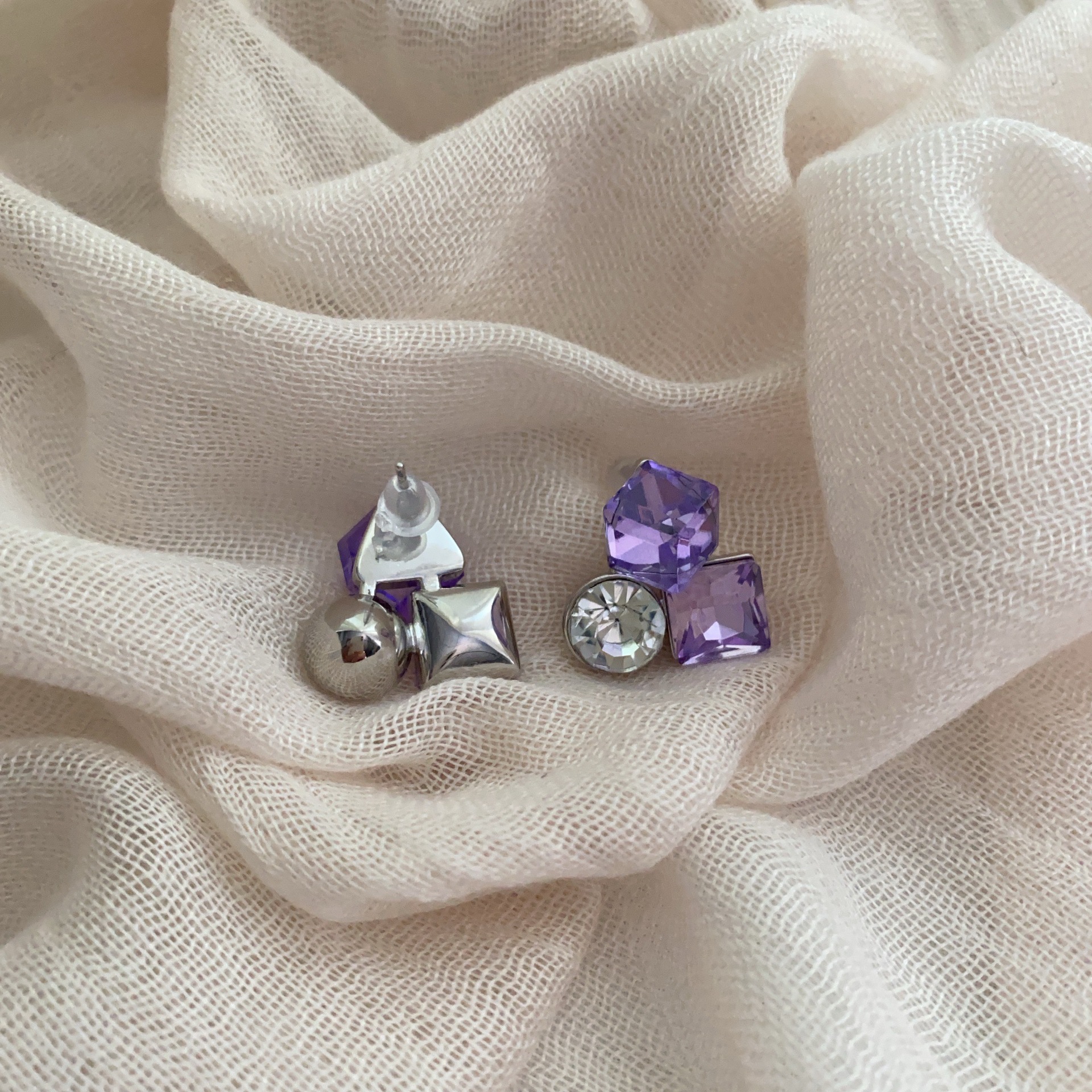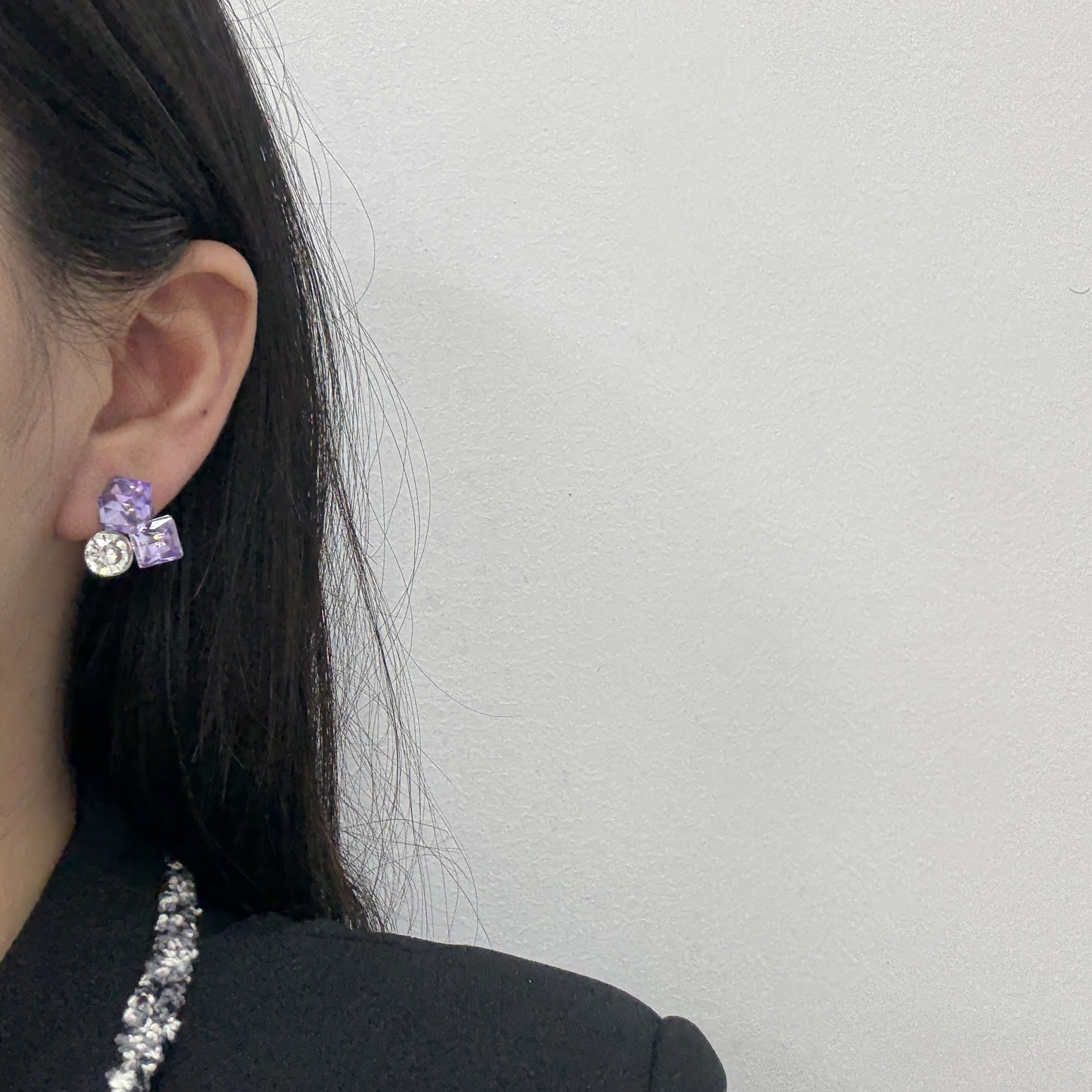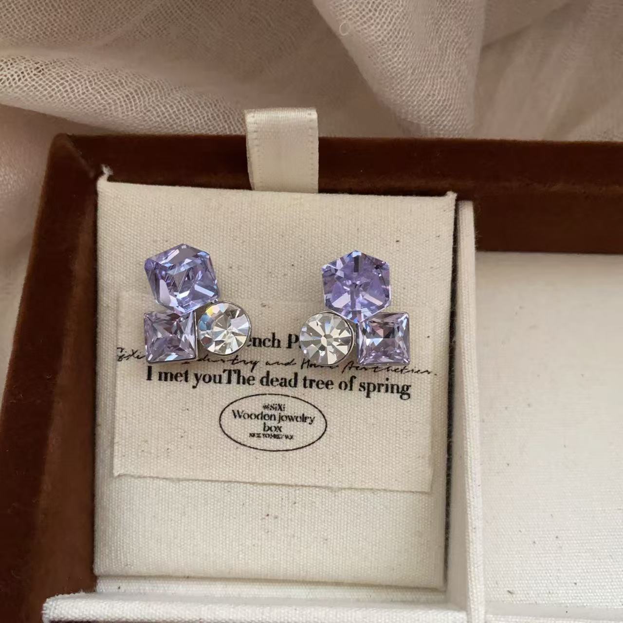 爆款花样年华方糖耳钉蓝色水晶精致百搭轻奢时尚小众设计韩版耳饰