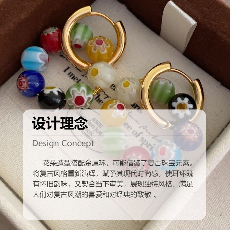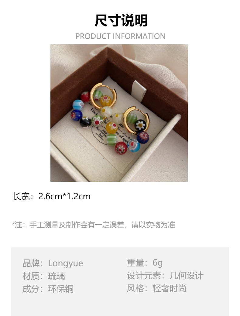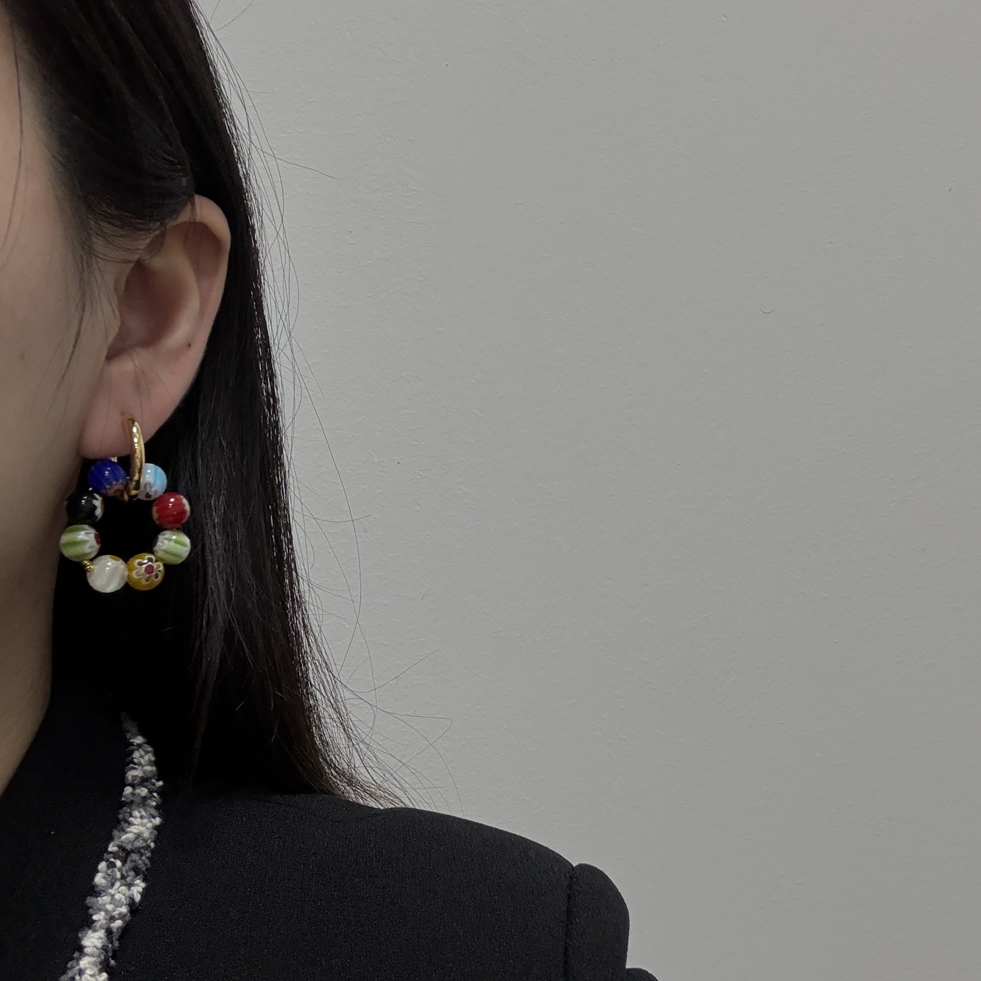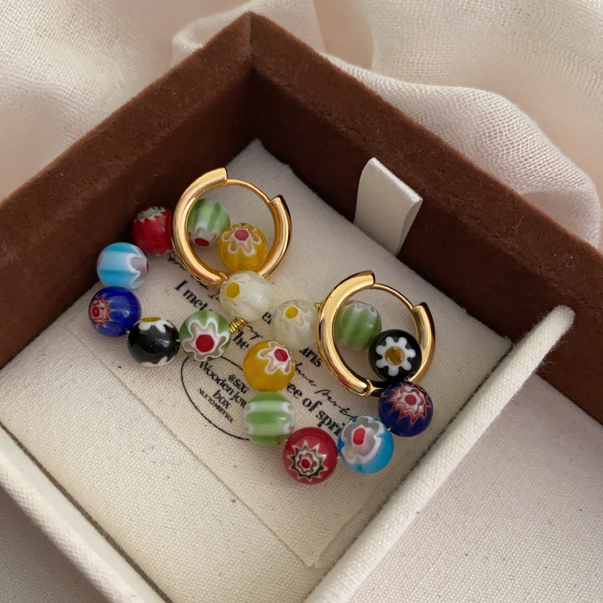 混彩爱心琉璃耳圈轻奢小众设计2025新款街拍配饰复古彩色时尚耳环