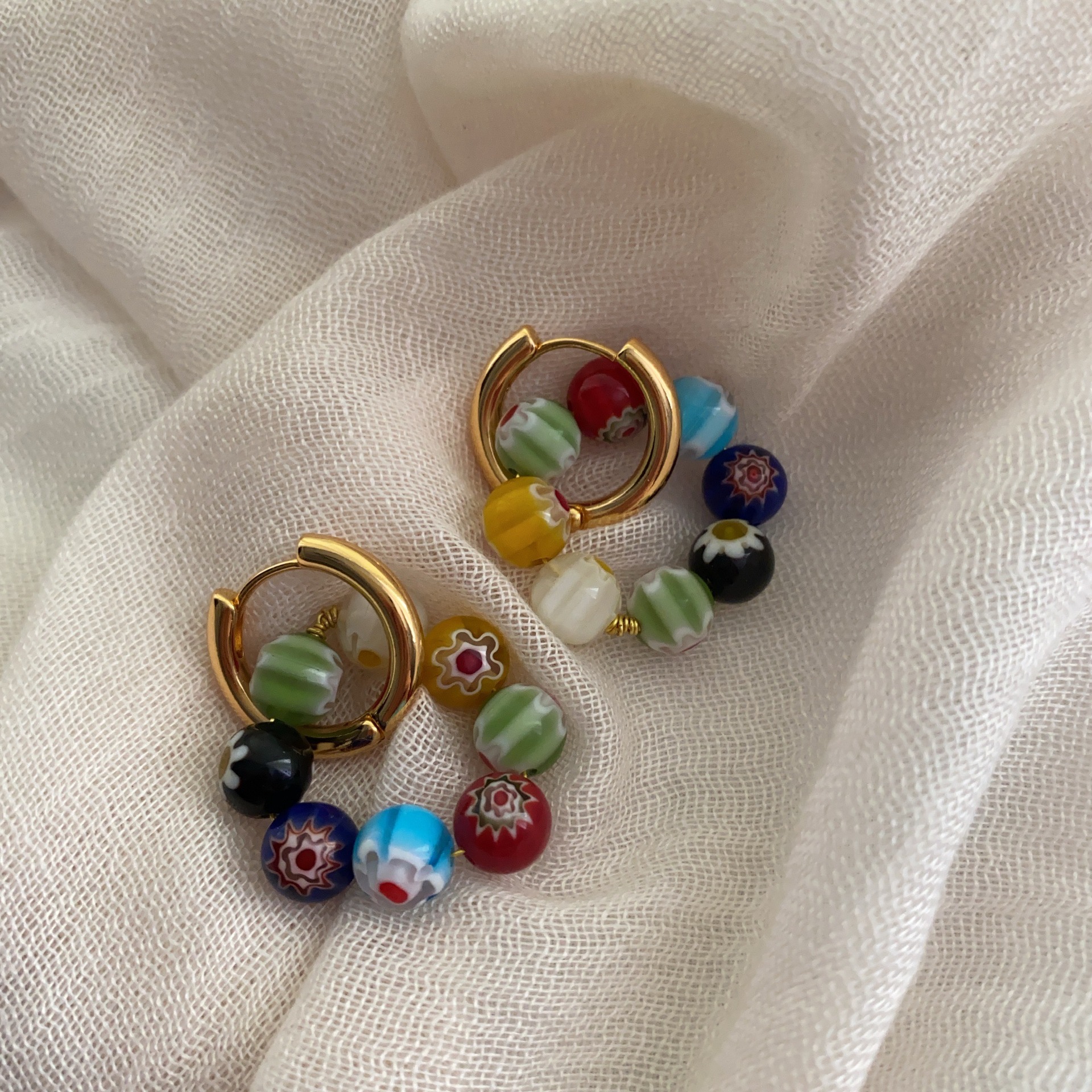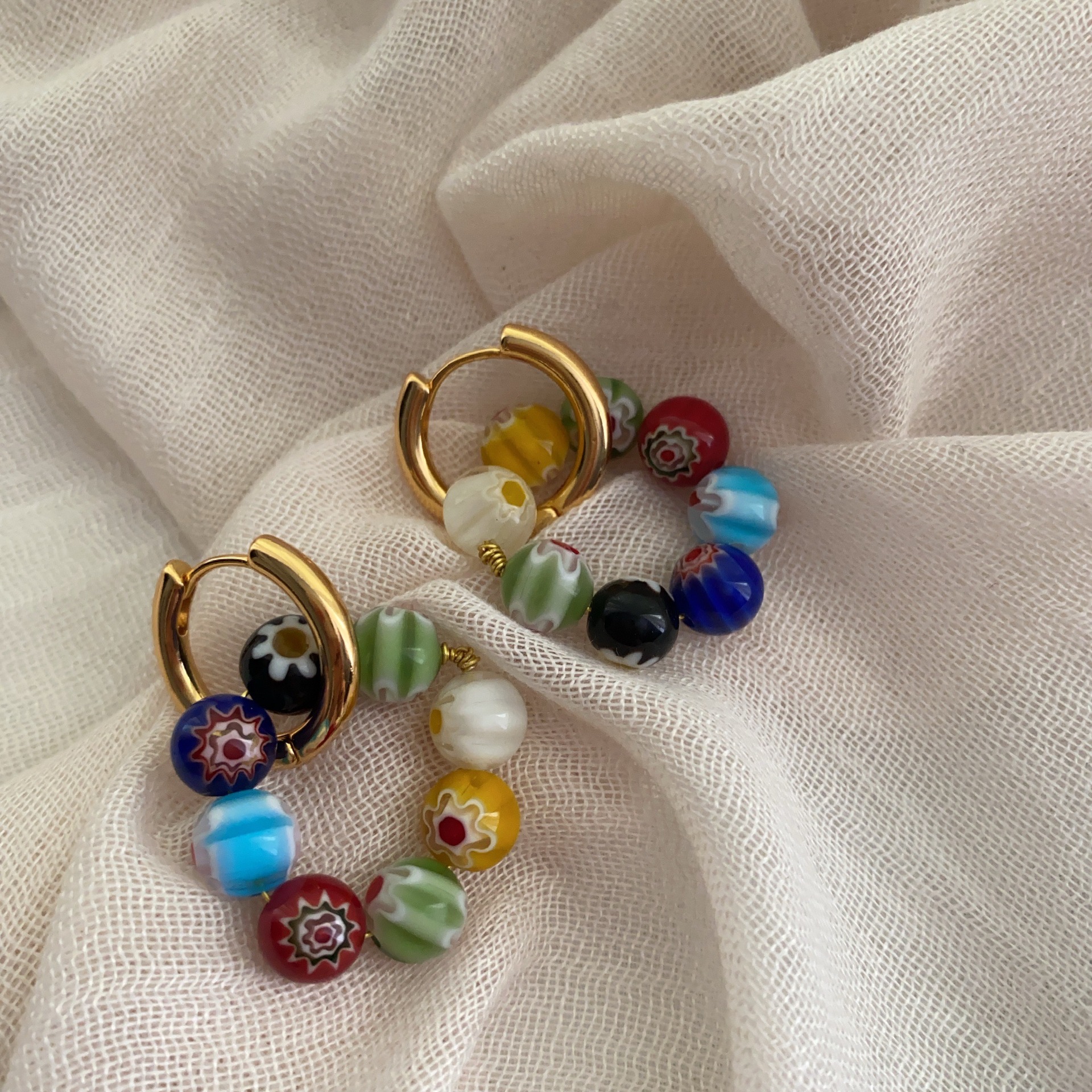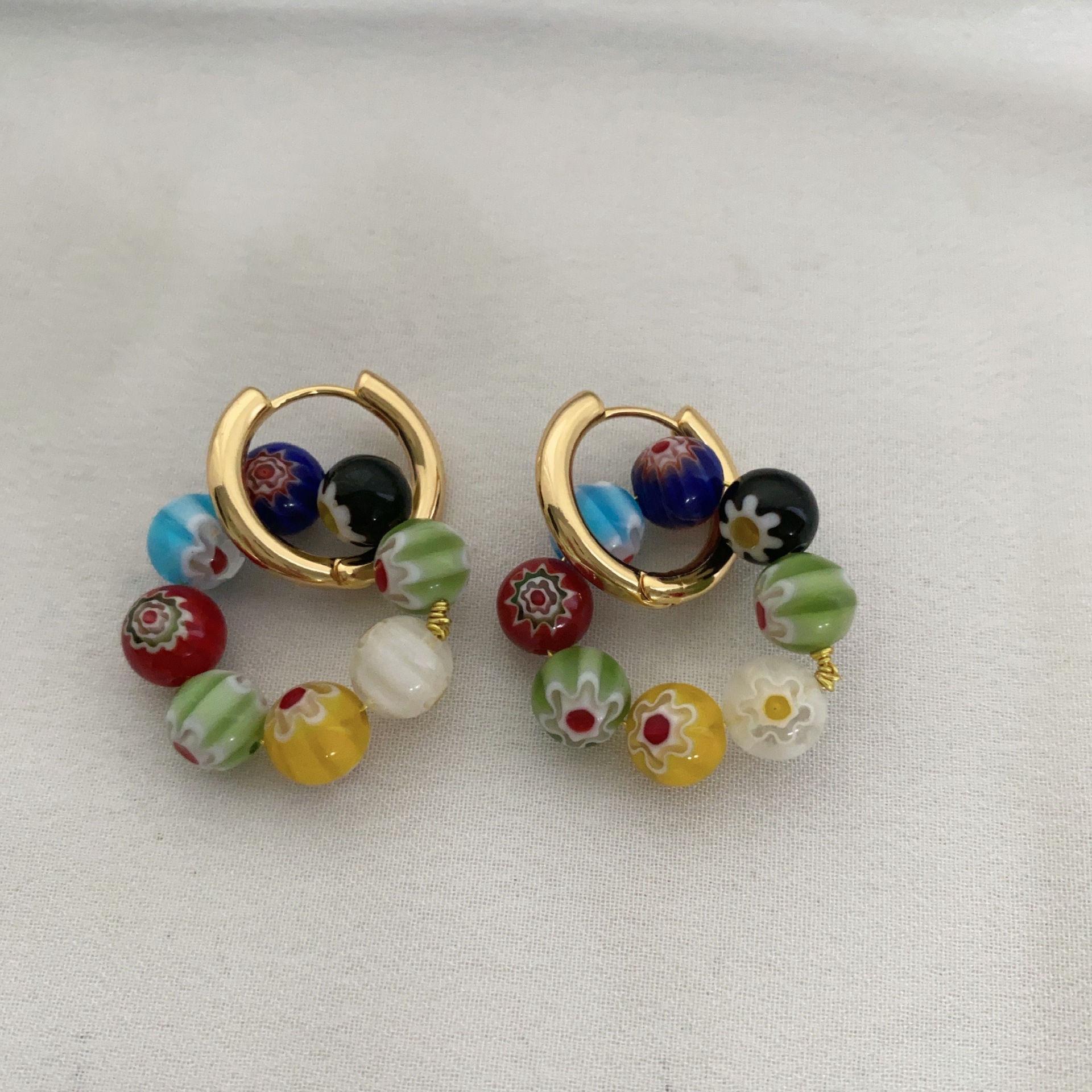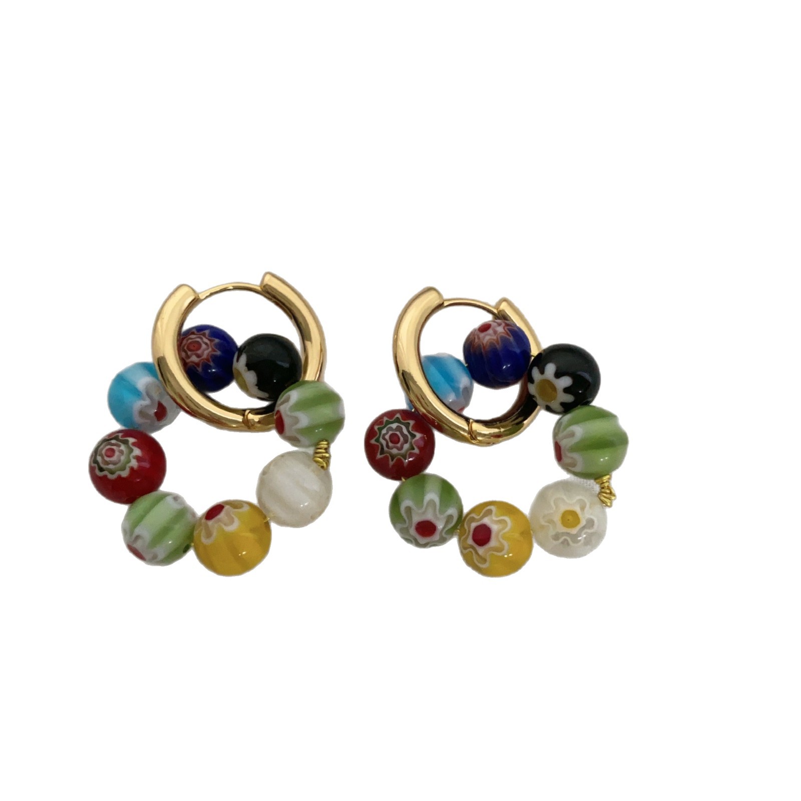 混彩爱心琉璃耳圈轻奢小众设计2025新款街拍配饰复古彩色时尚耳环