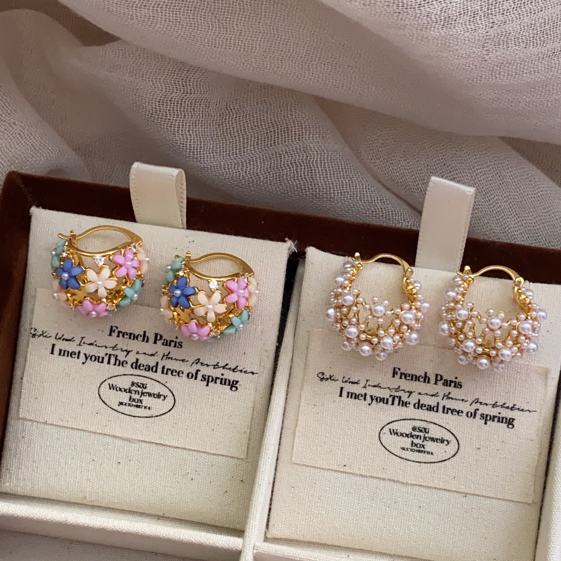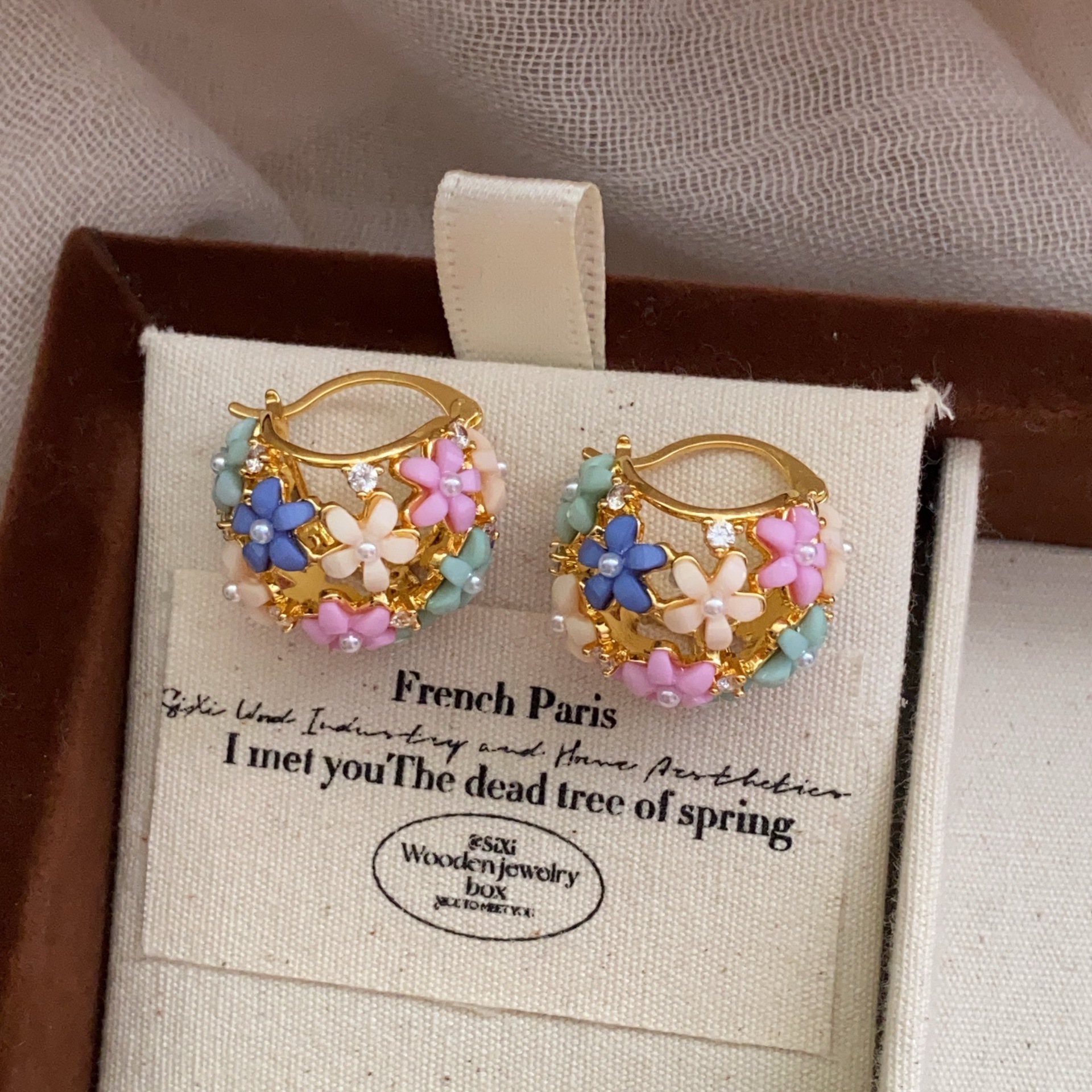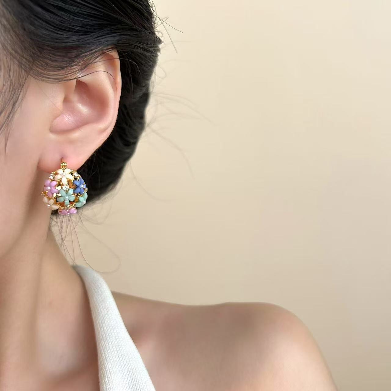 法式复古高级感小花篮耳钉金色温柔气质耳饰小众设计感花卉 耳环