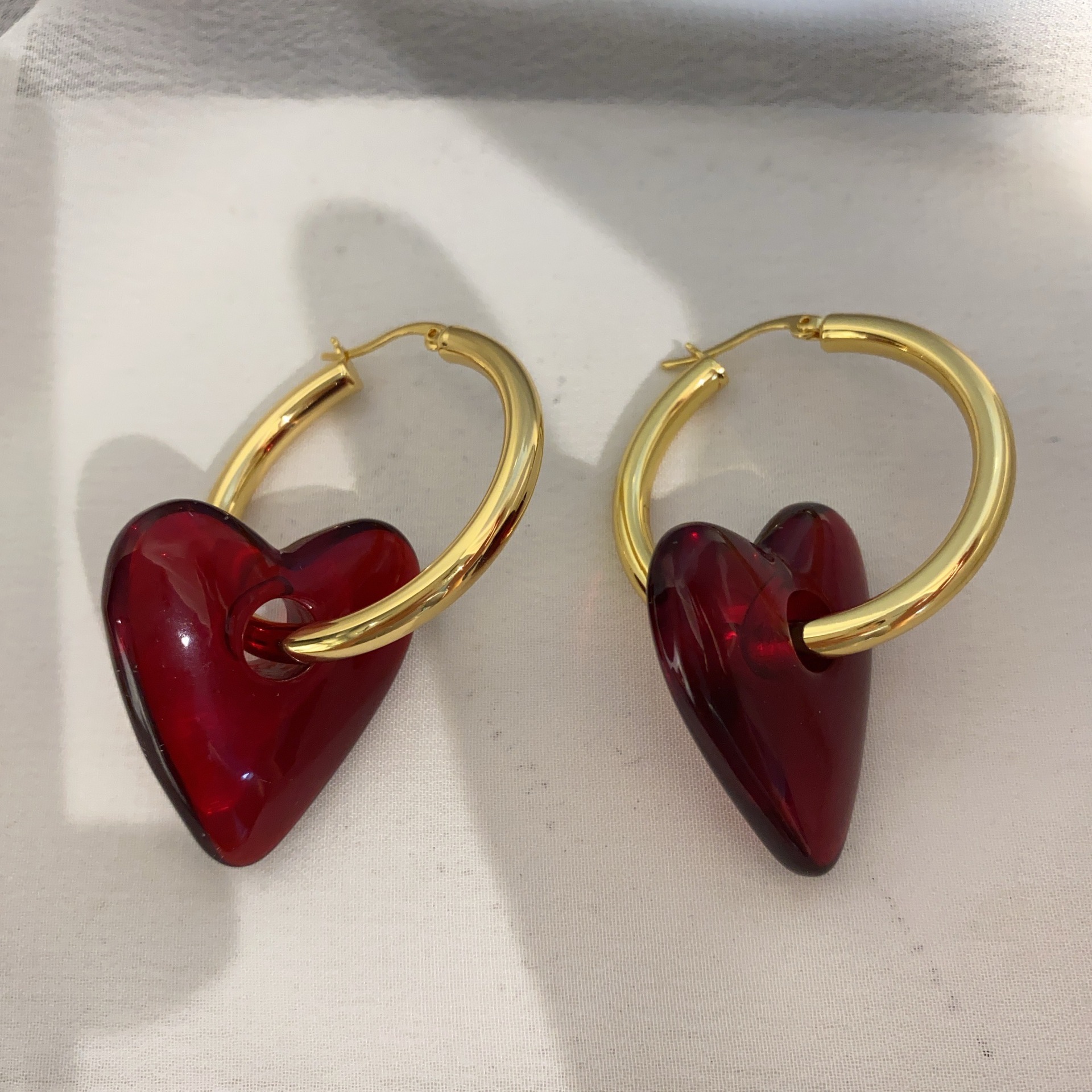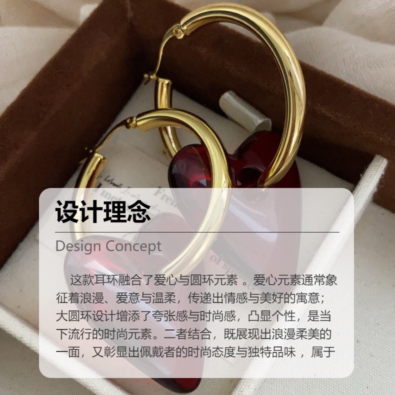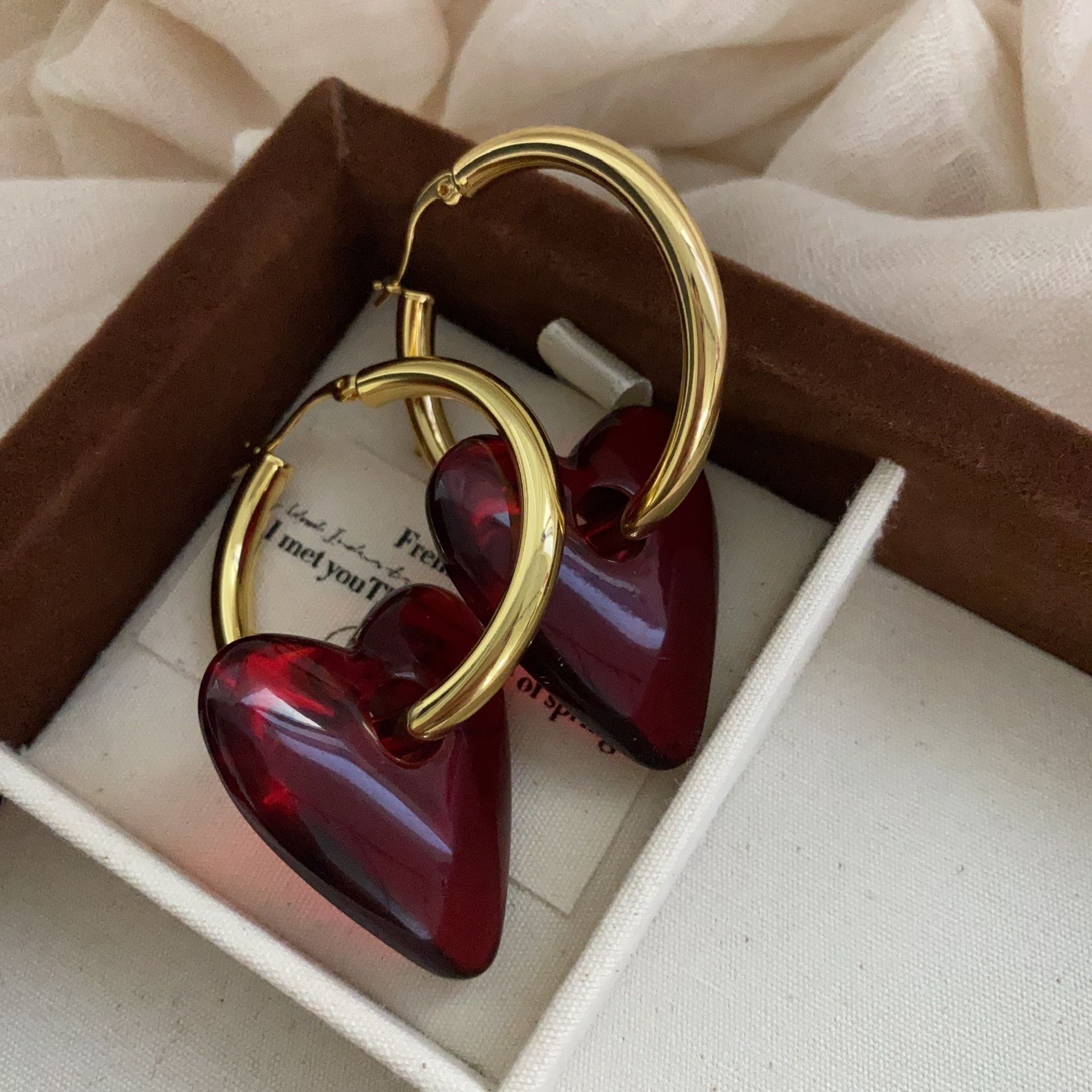 轻奢风酒红爱心耳扣法式复古高级感优雅气质时尚百搭女耳饰品批发