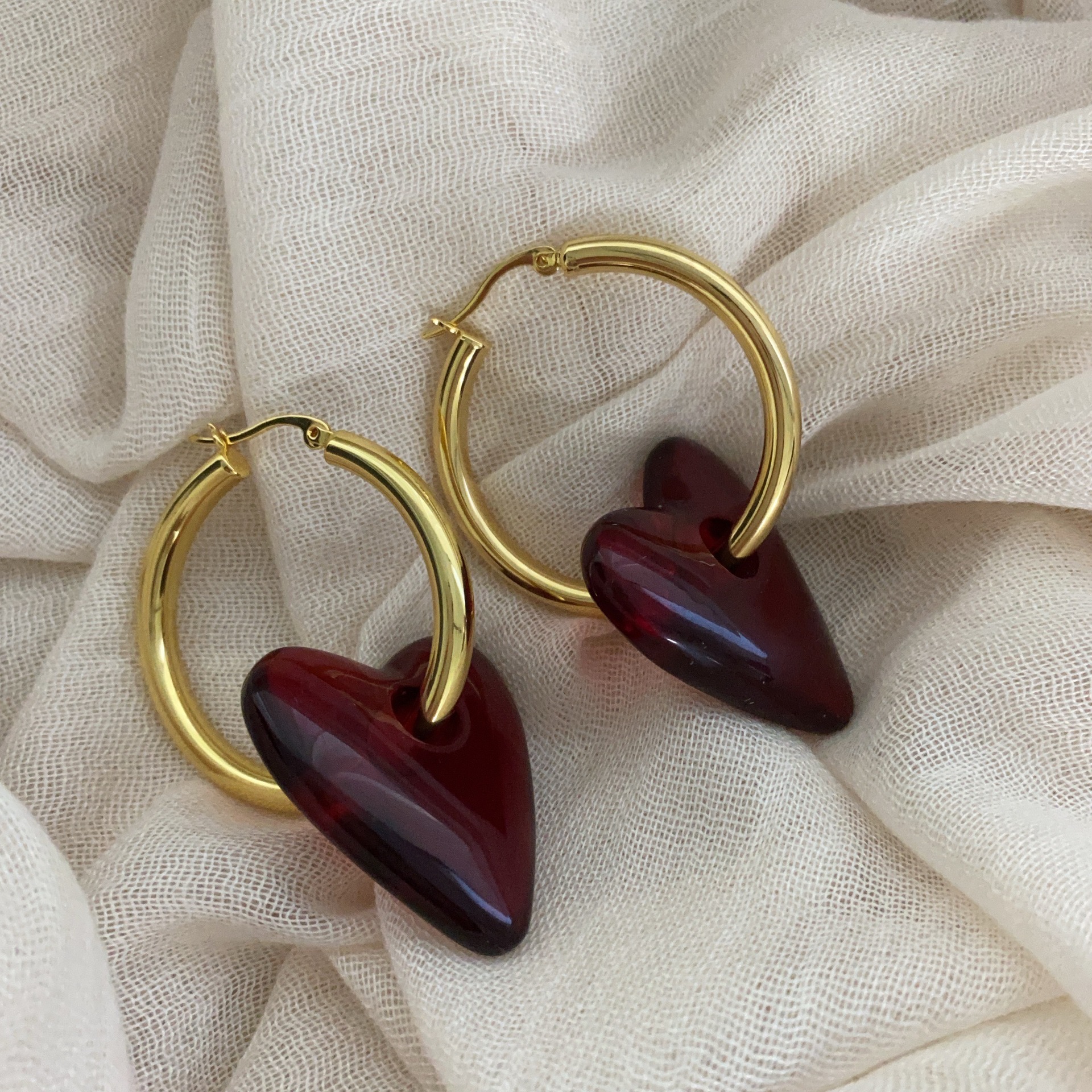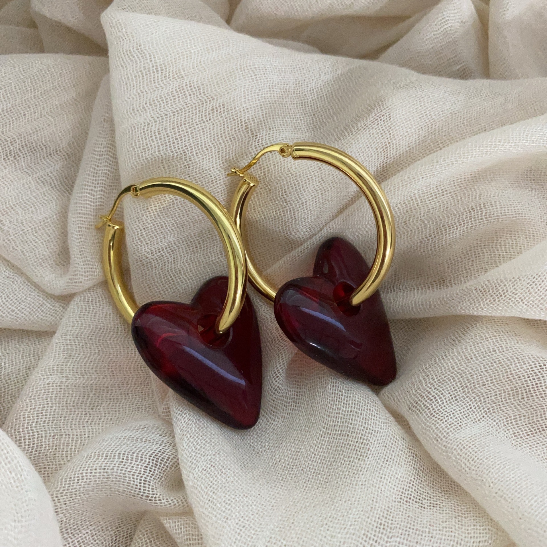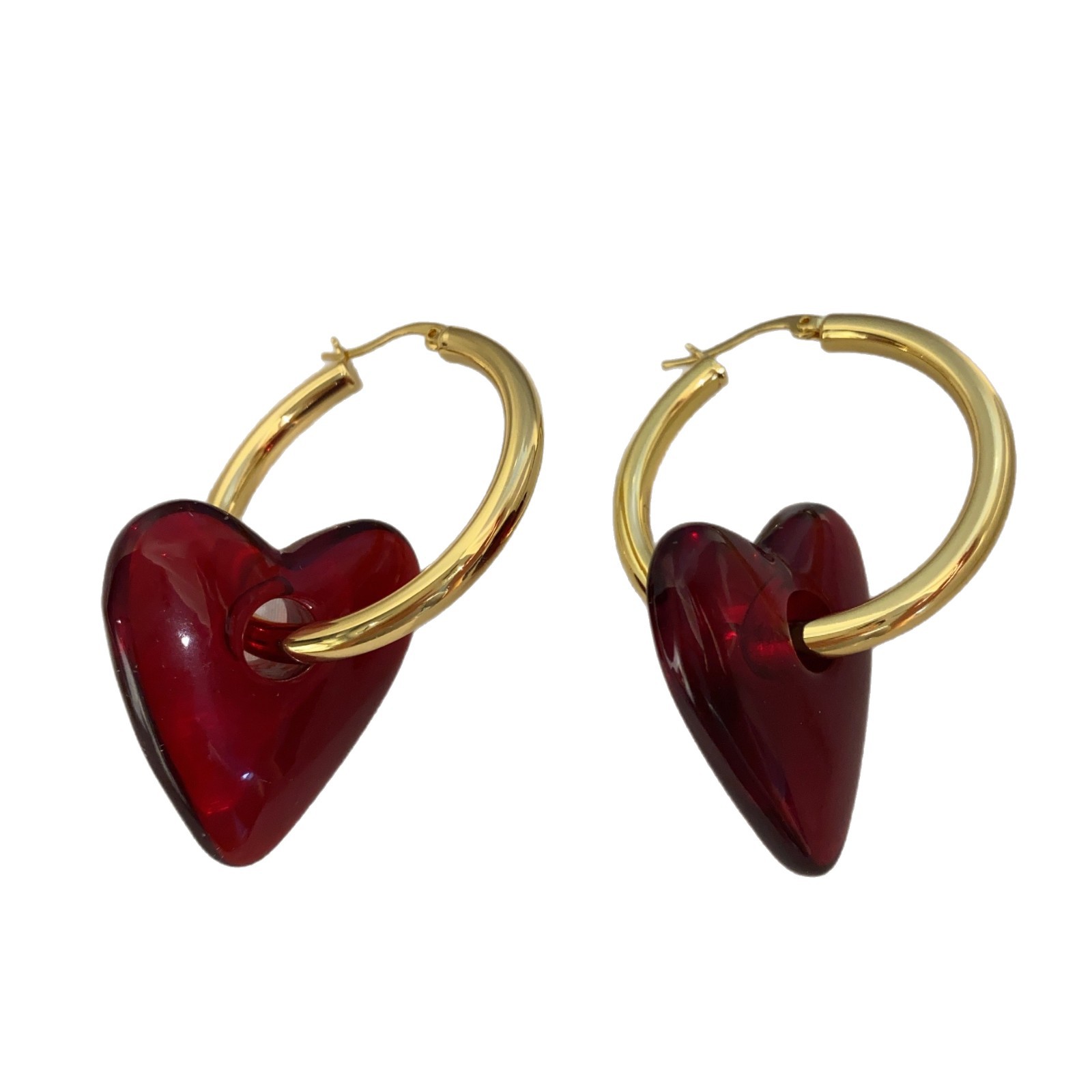 轻奢风酒红爱心耳扣法式复古高级感优雅气质时尚百搭女耳饰品批发