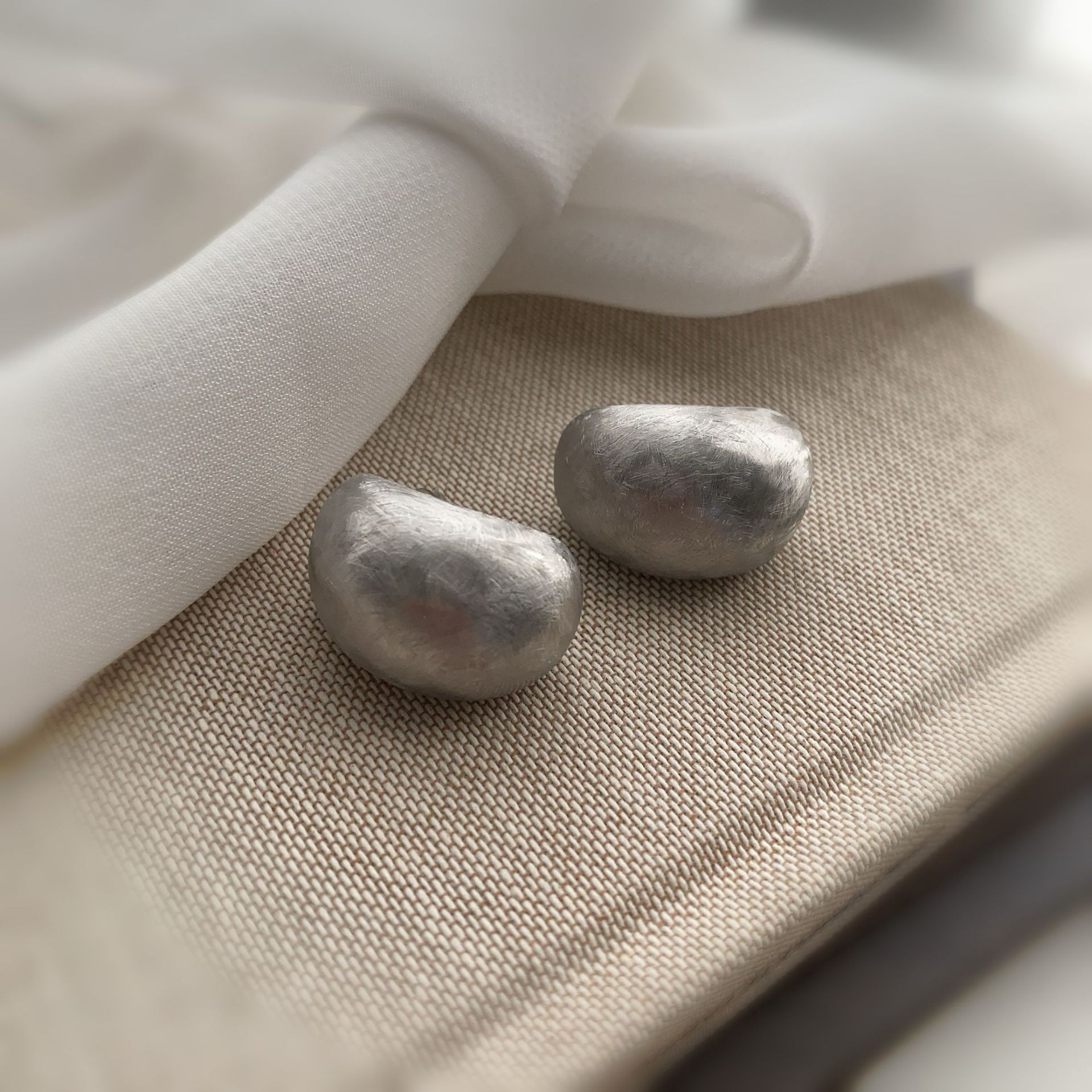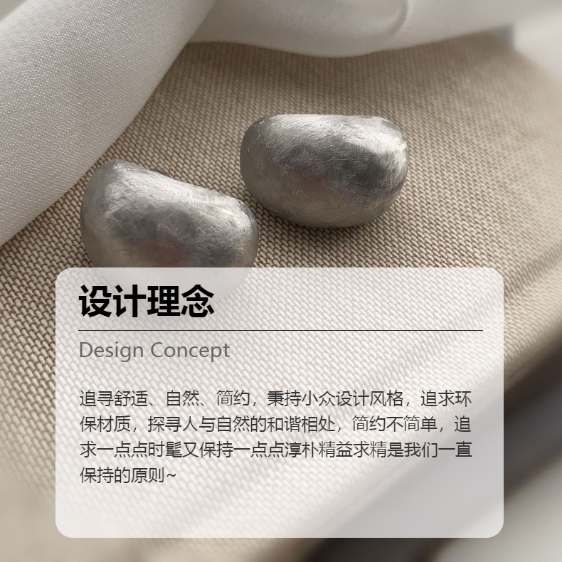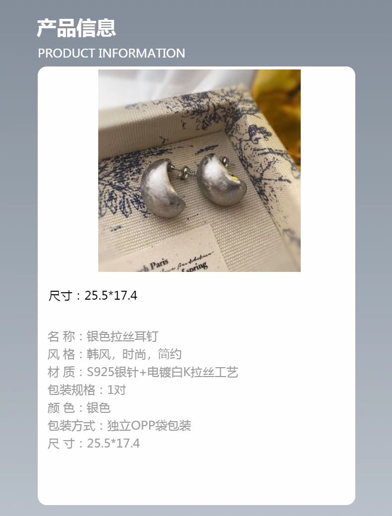 气质简约电镀白K拉丝工艺银色耳钉肌理纹路小众设计复古百搭耳环