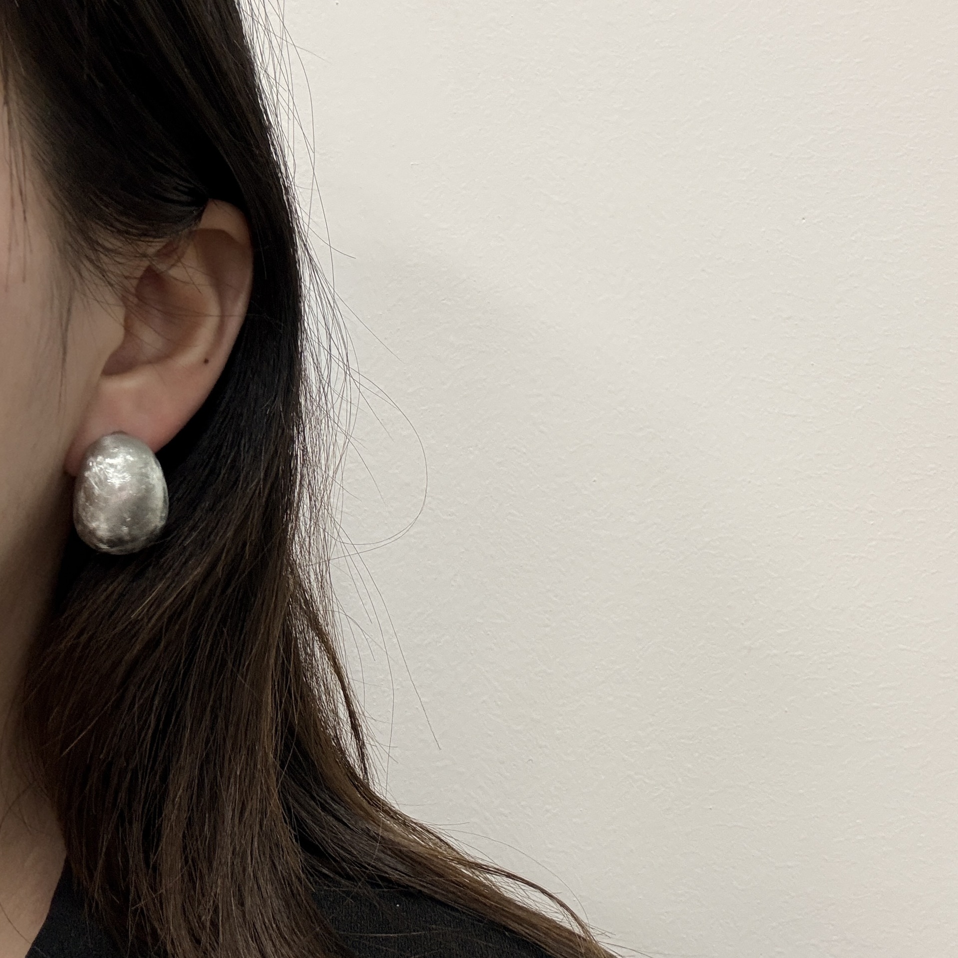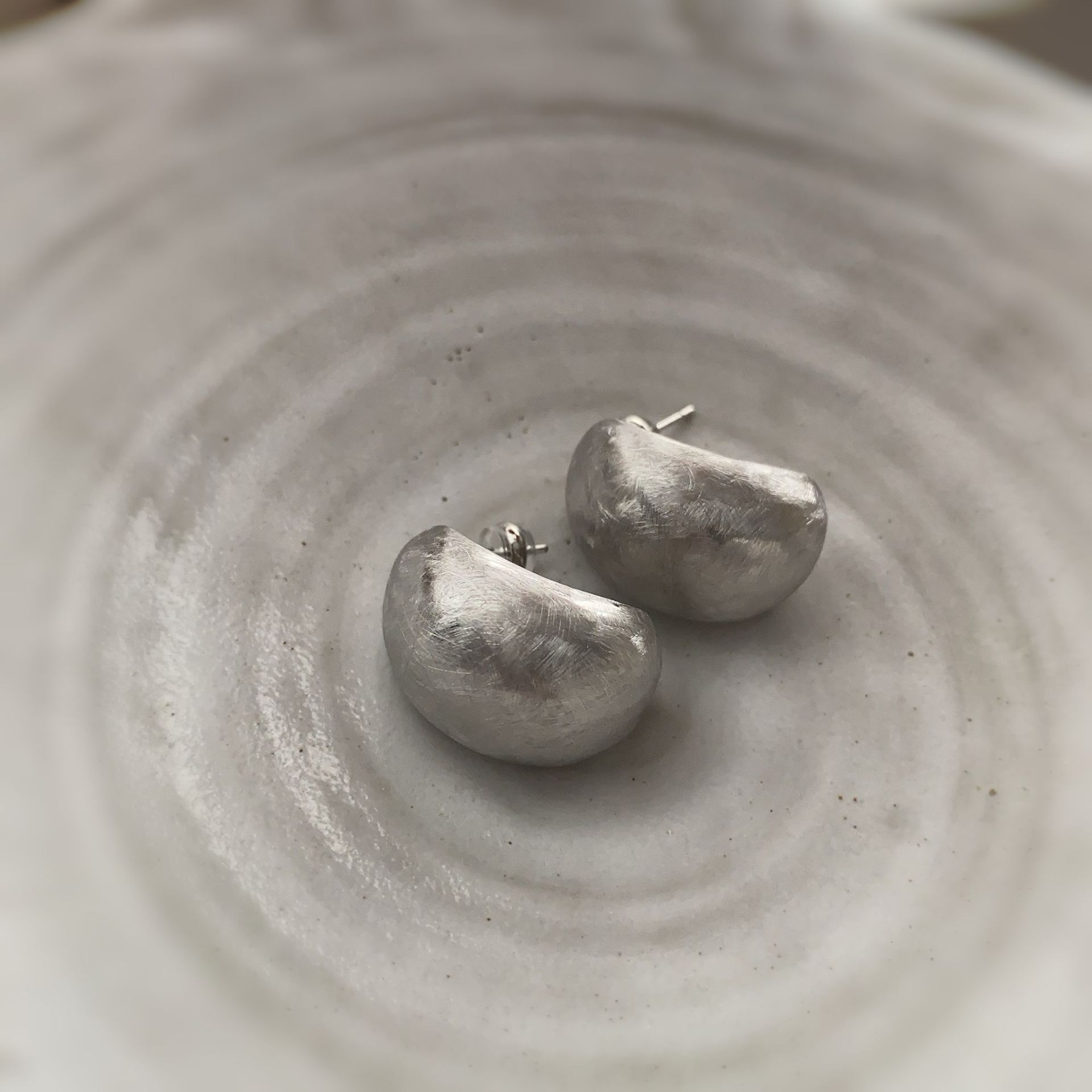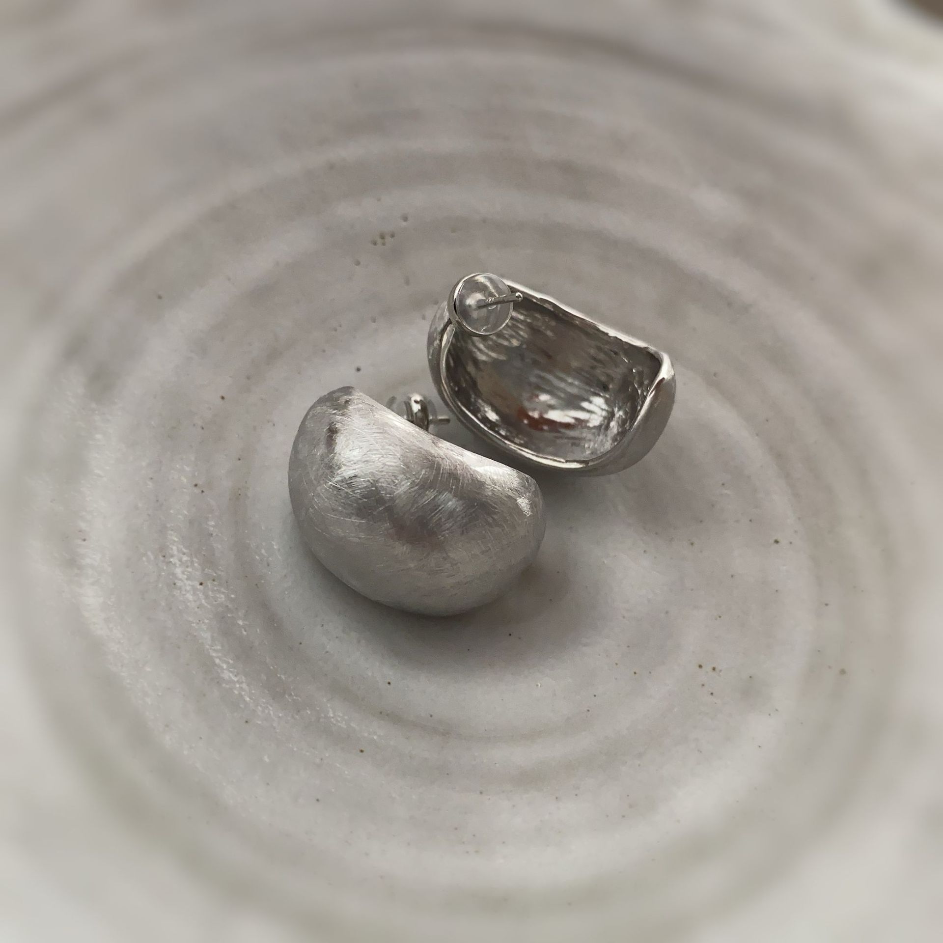 气质简约电镀白K拉丝工艺银色耳钉肌理纹路小众设计复古百搭耳环