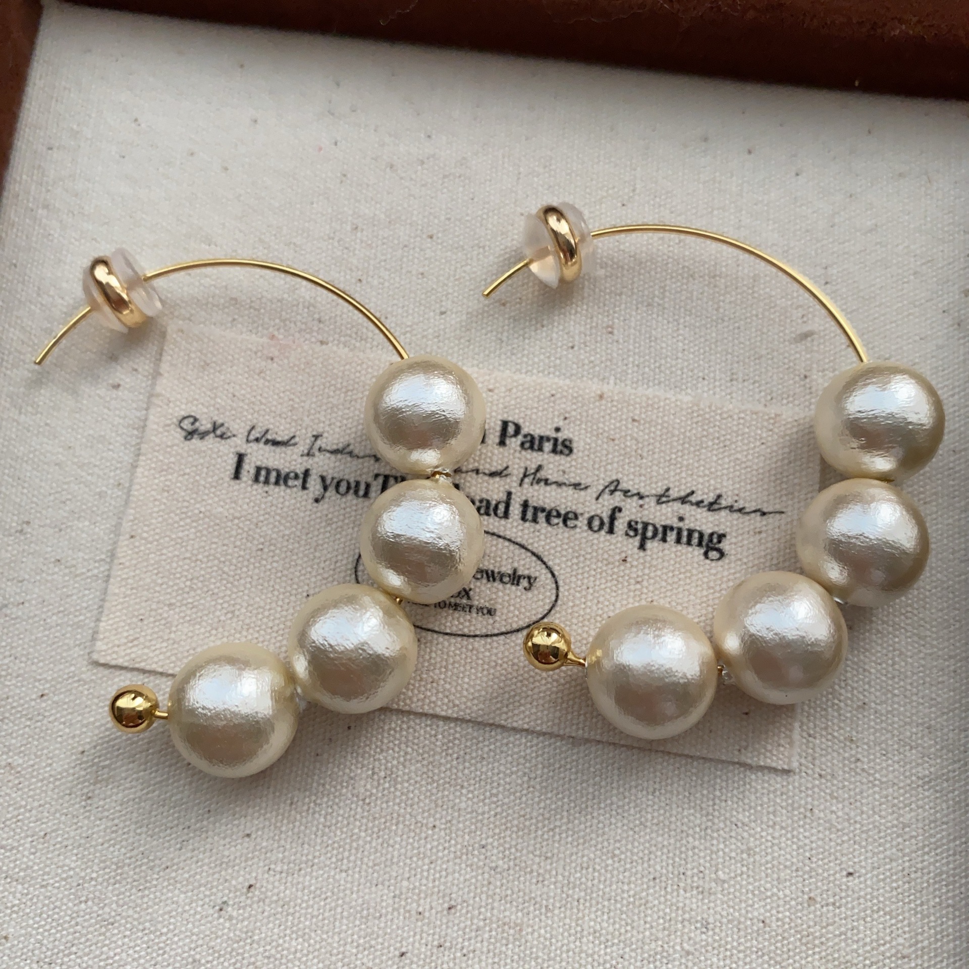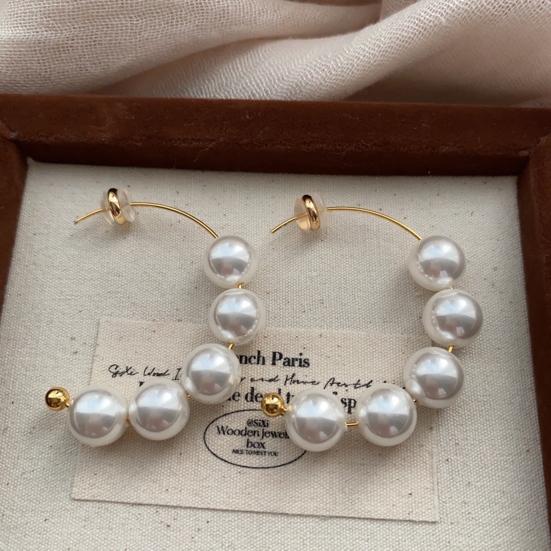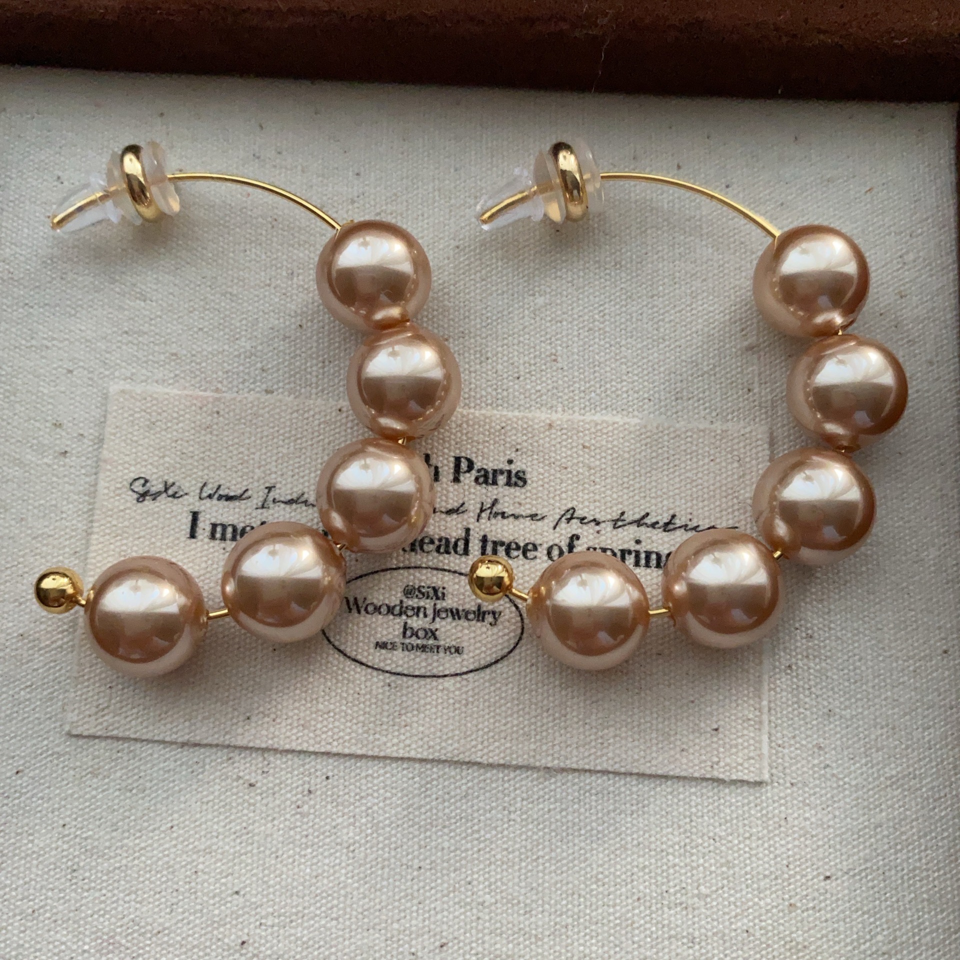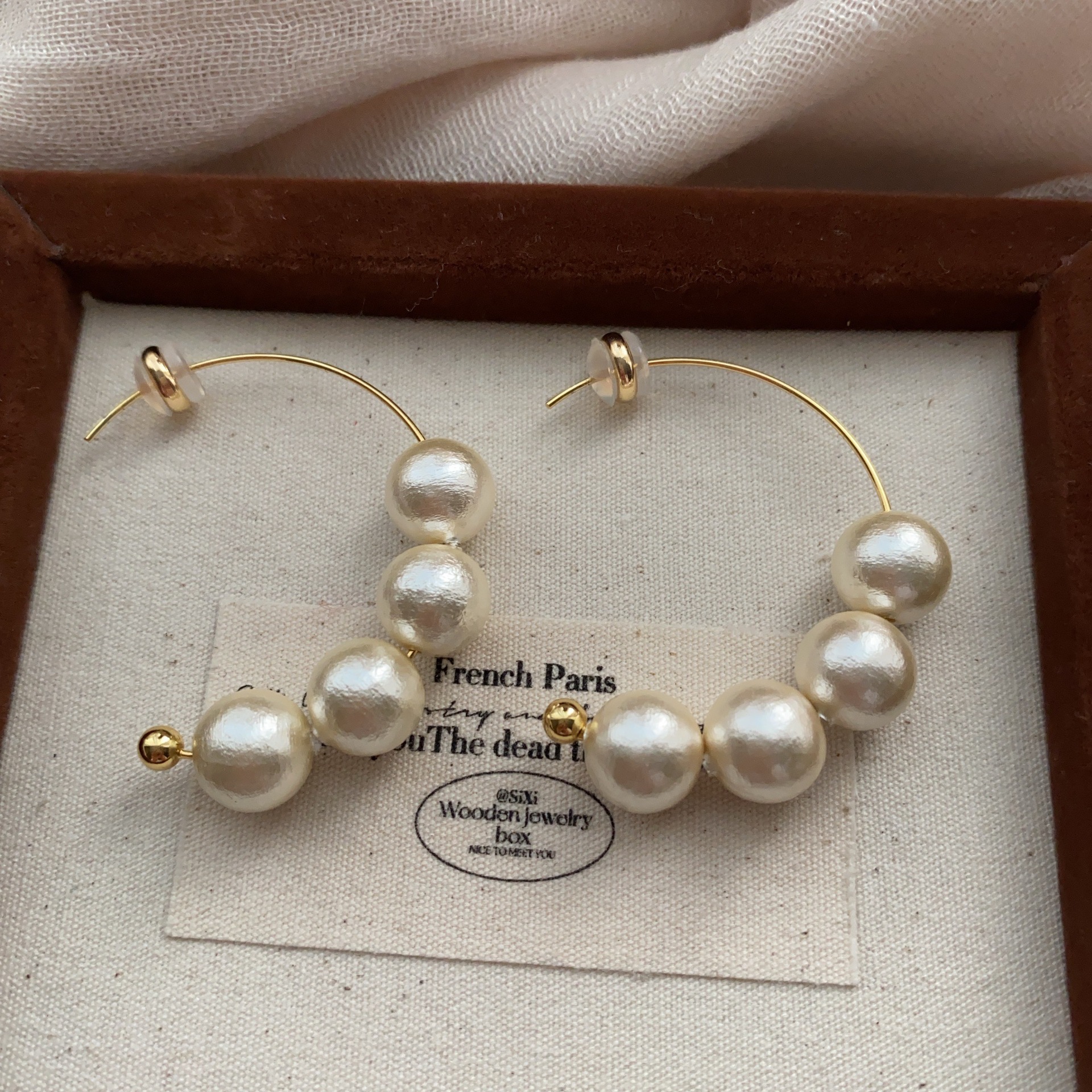 圆形珍珠耳钉耳环高级小众设计简约轻奢自然百搭精致温润细腻耳饰