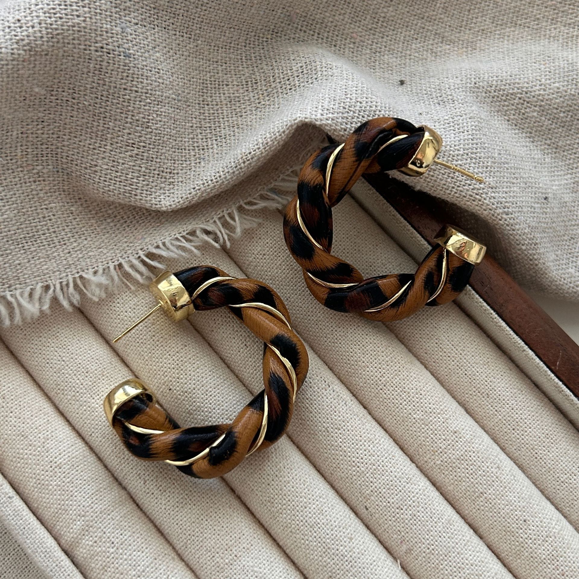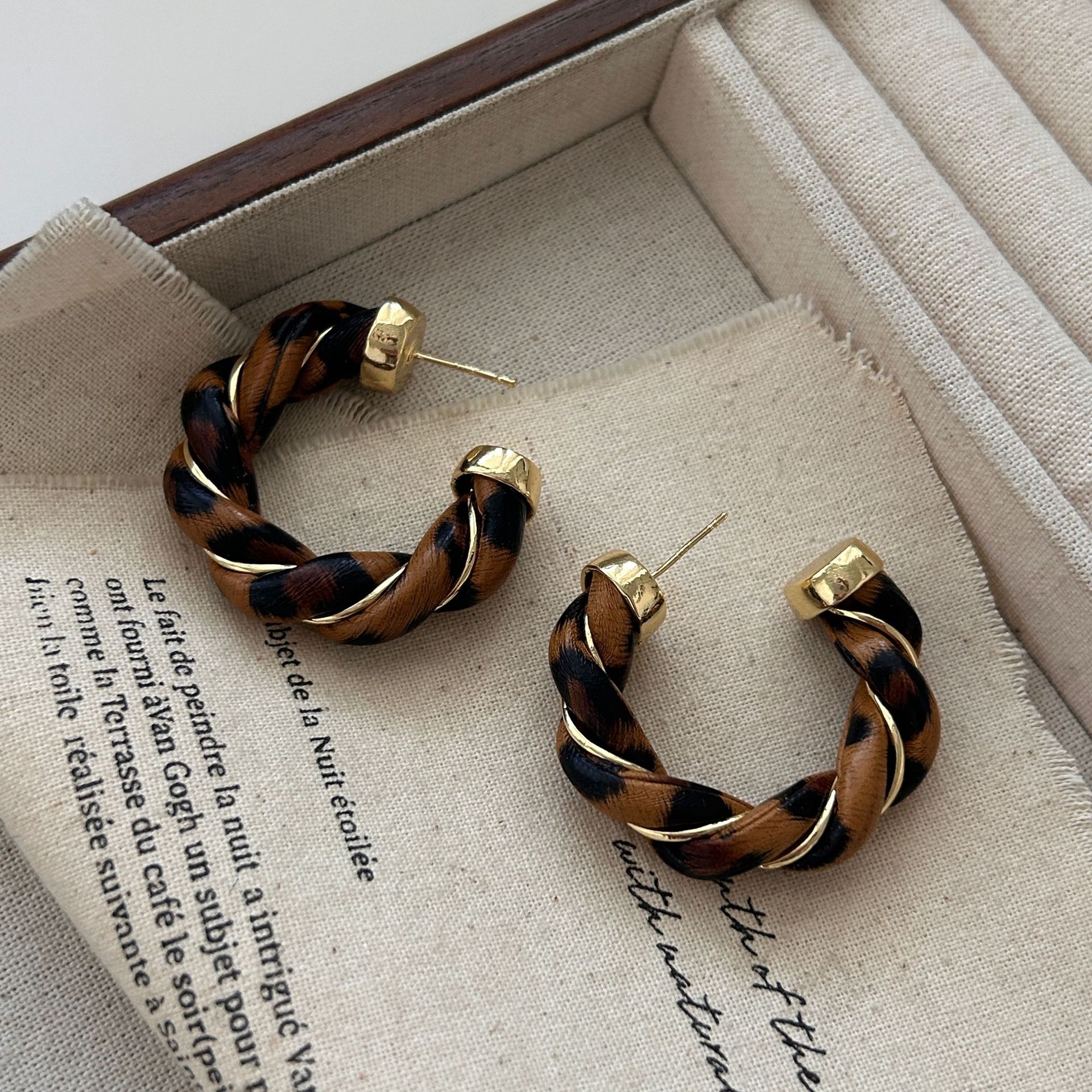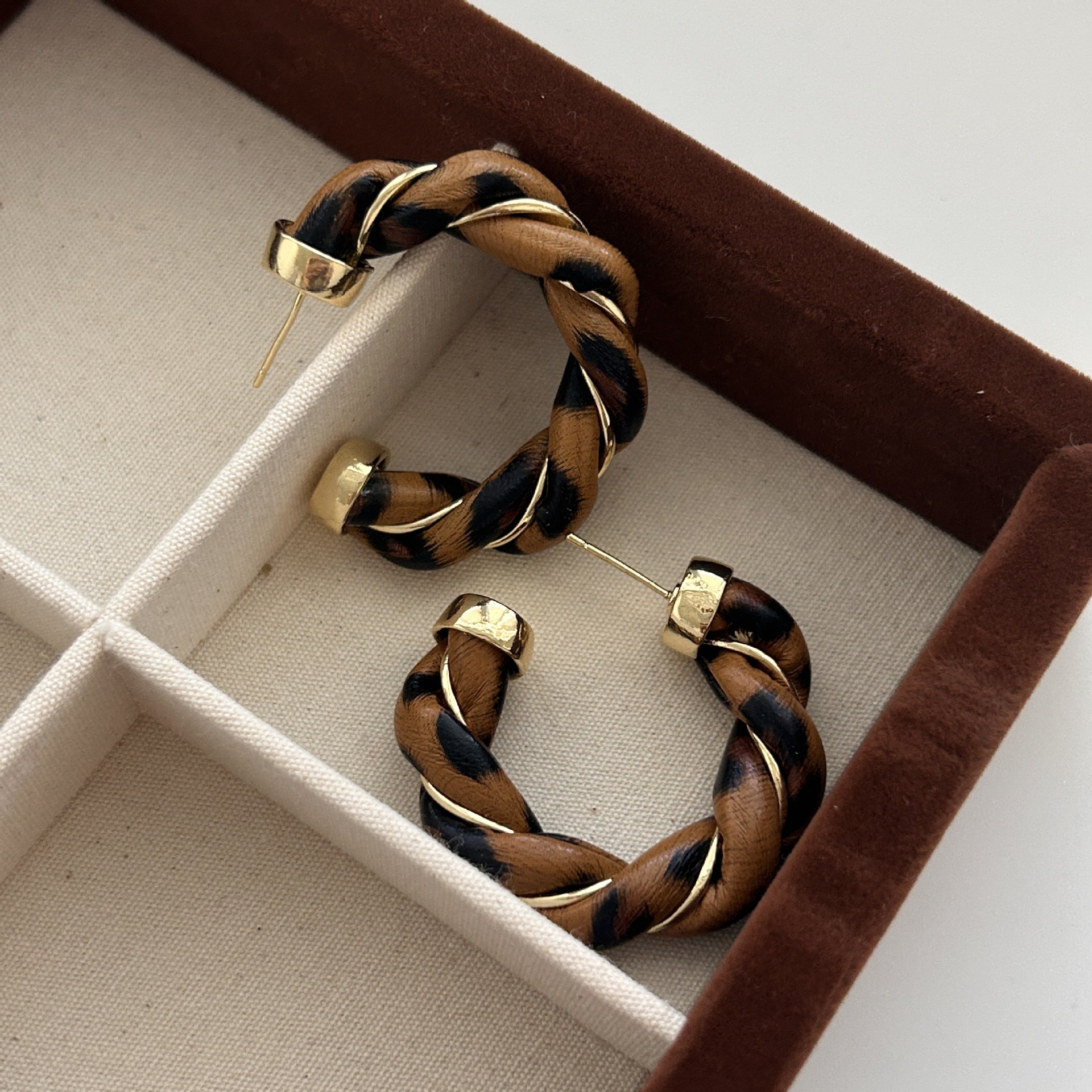 大气豹纹缠绕耳环耳圈气质轻奢个性百搭耳圈秋冬复古独特纹理耳饰