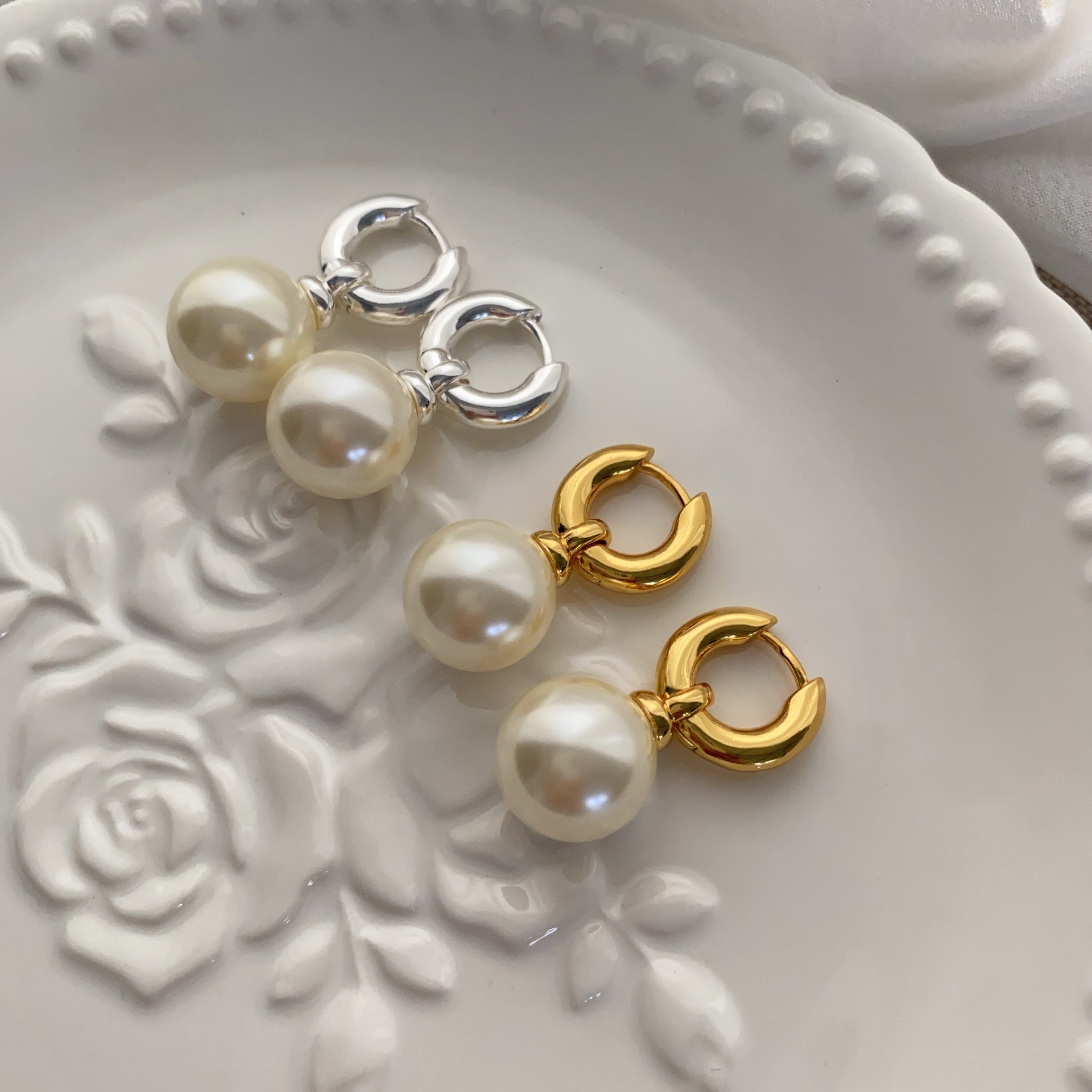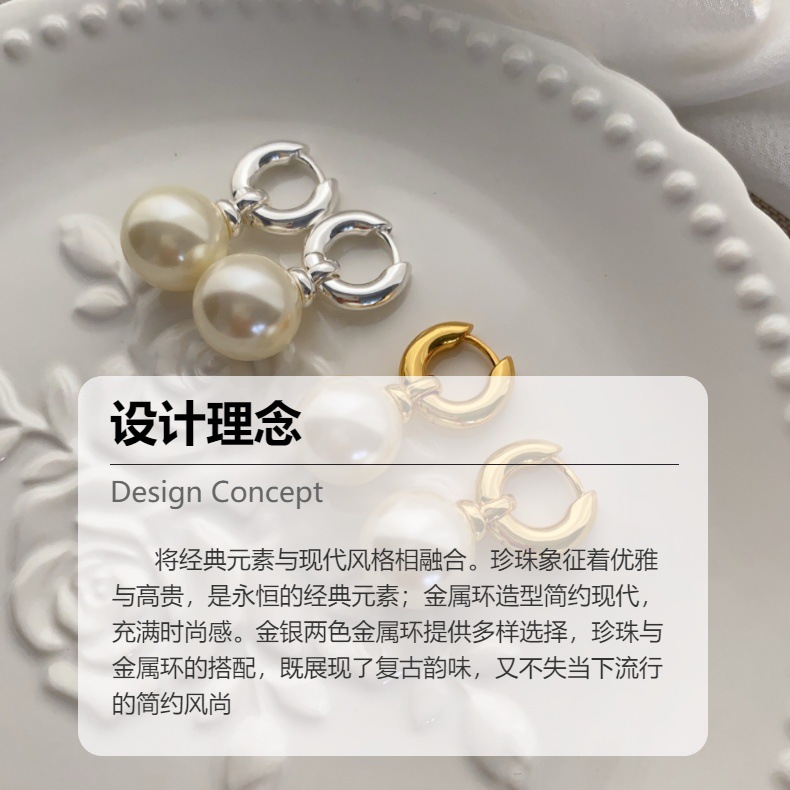 波西米亚风气质几何珍珠耳环冷淡风优雅奢华轻奢小众复古百搭耳圈