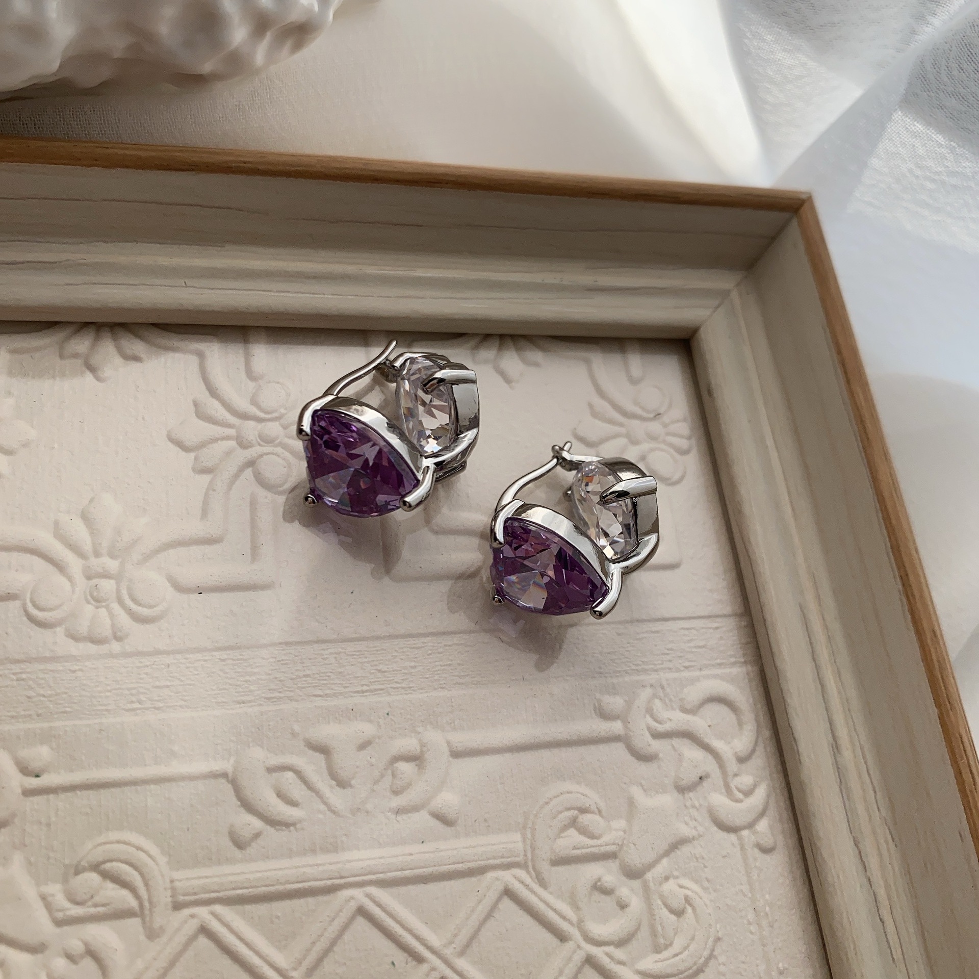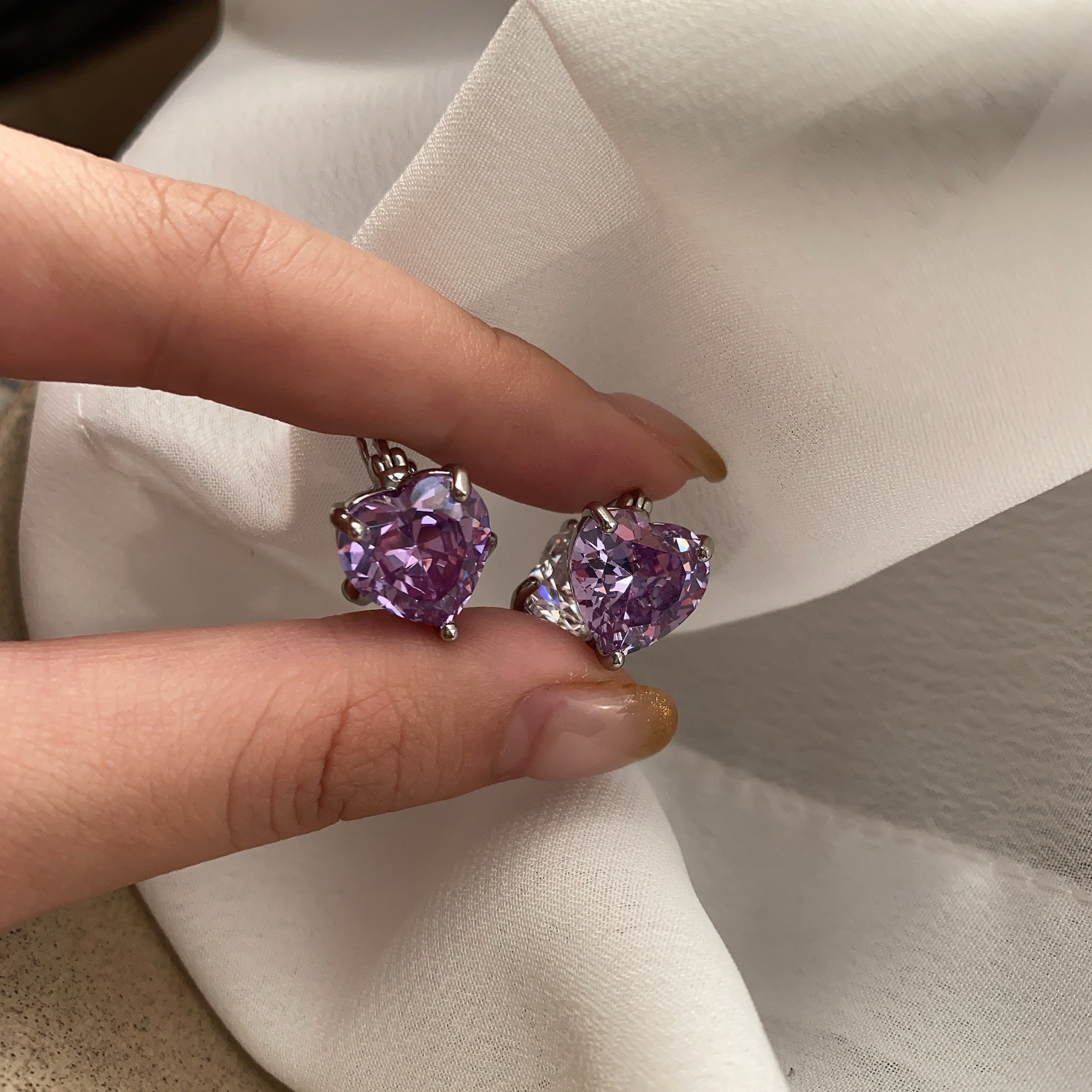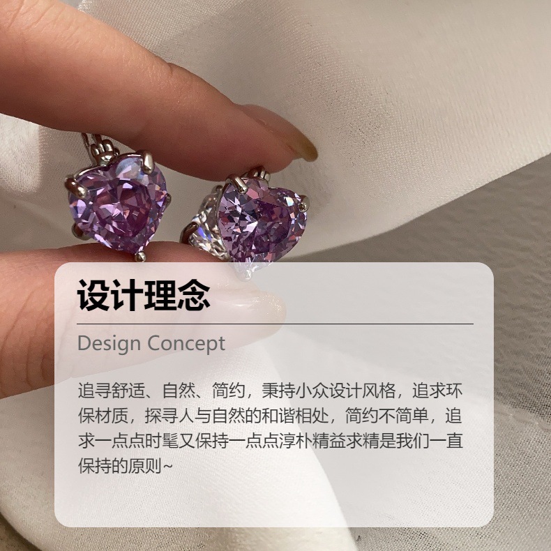 法式复古风古超优锆石时髦简约单颗大钻耳钉甜美爱心设计锆石耳钉