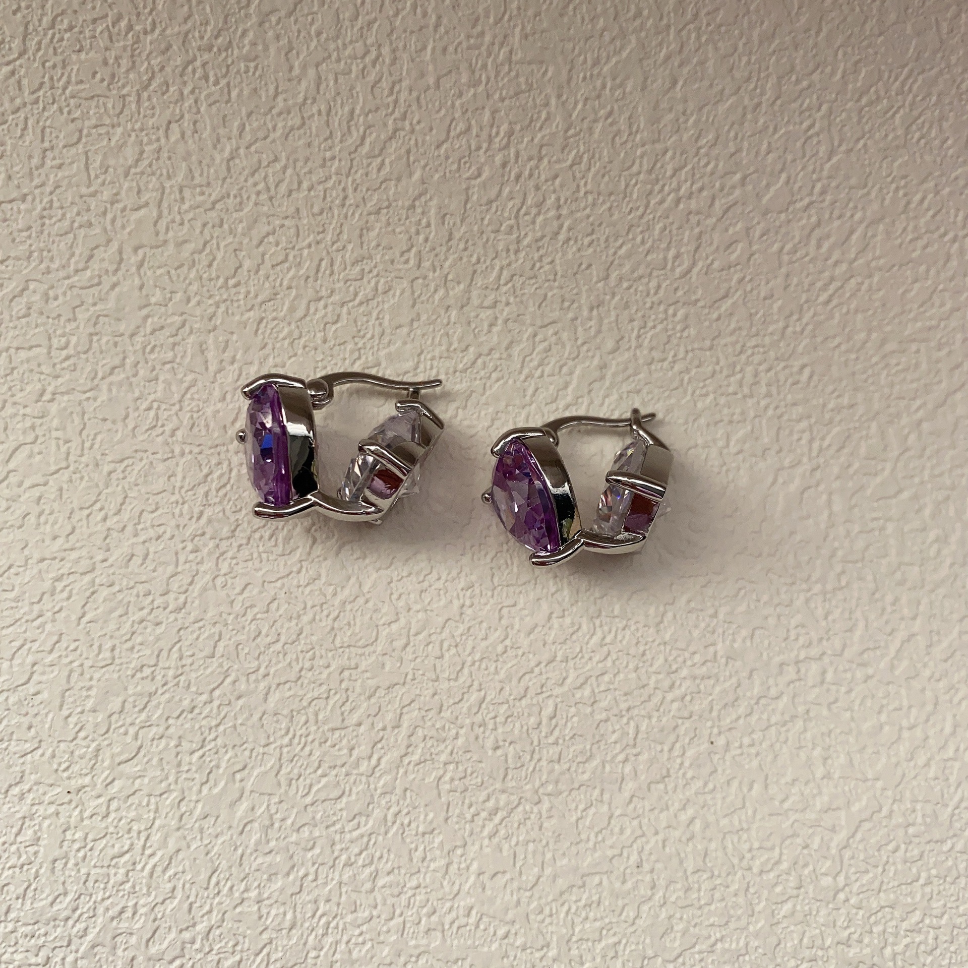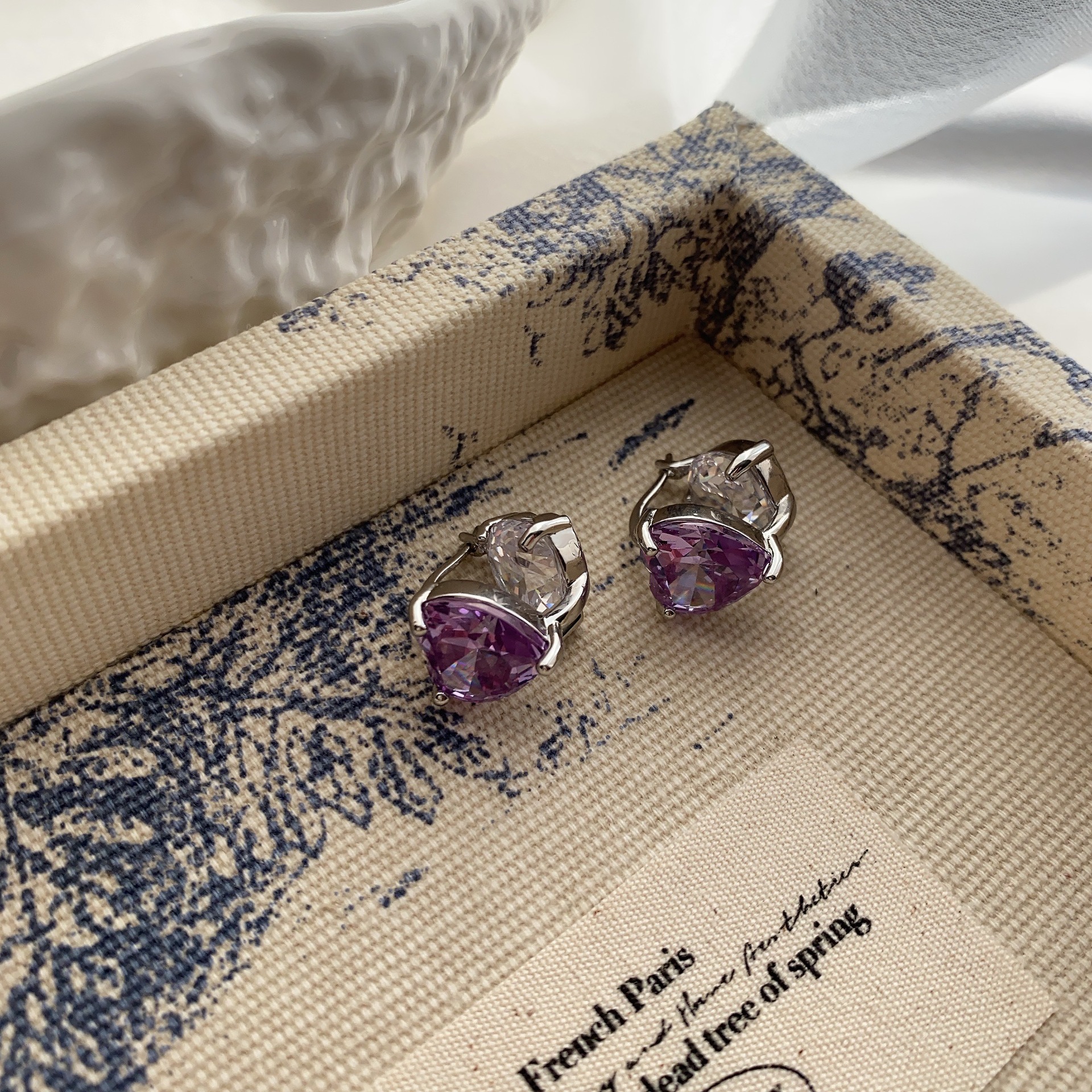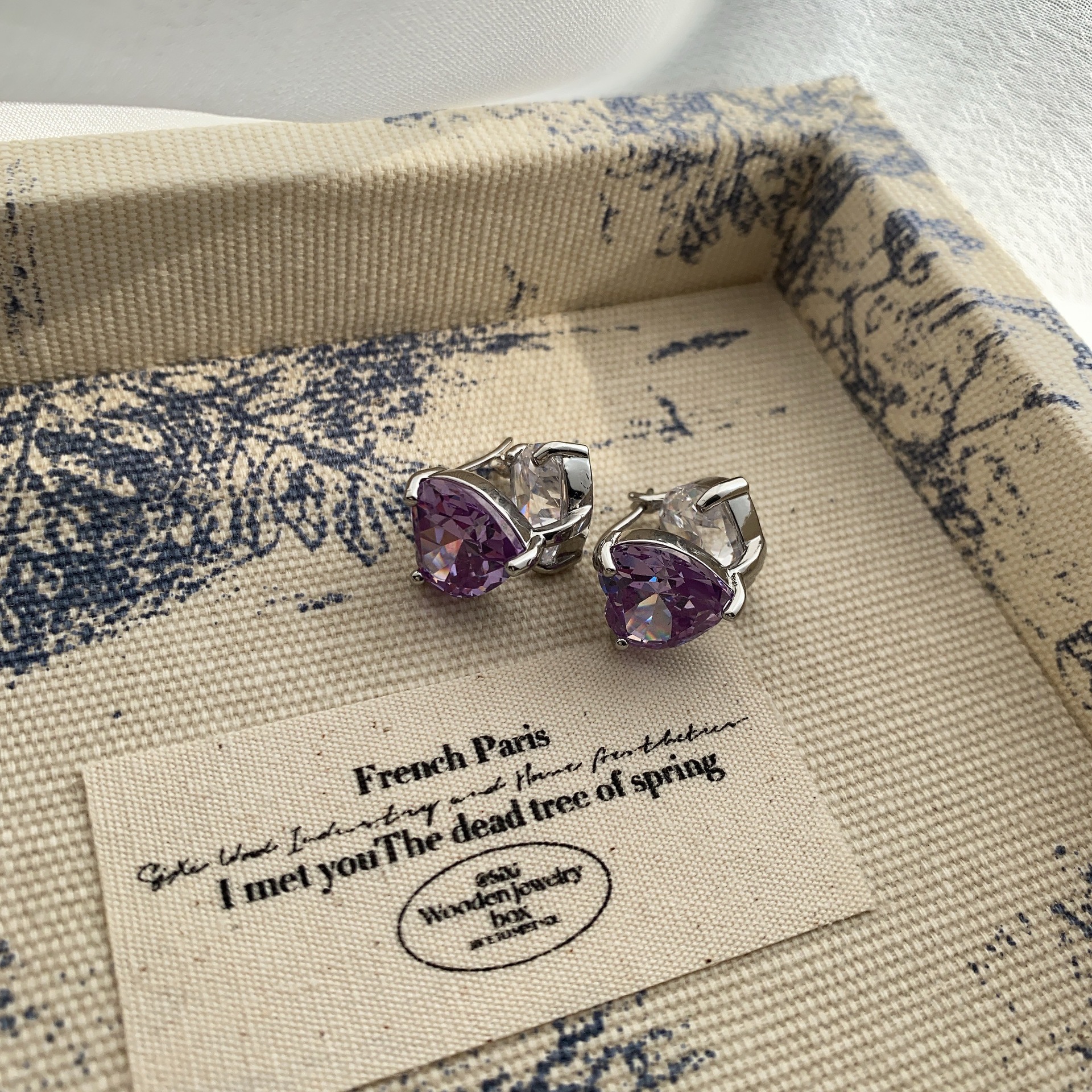 法式复古风古超优锆石时髦简约单颗大钻耳钉甜美爱心设计锆石耳钉