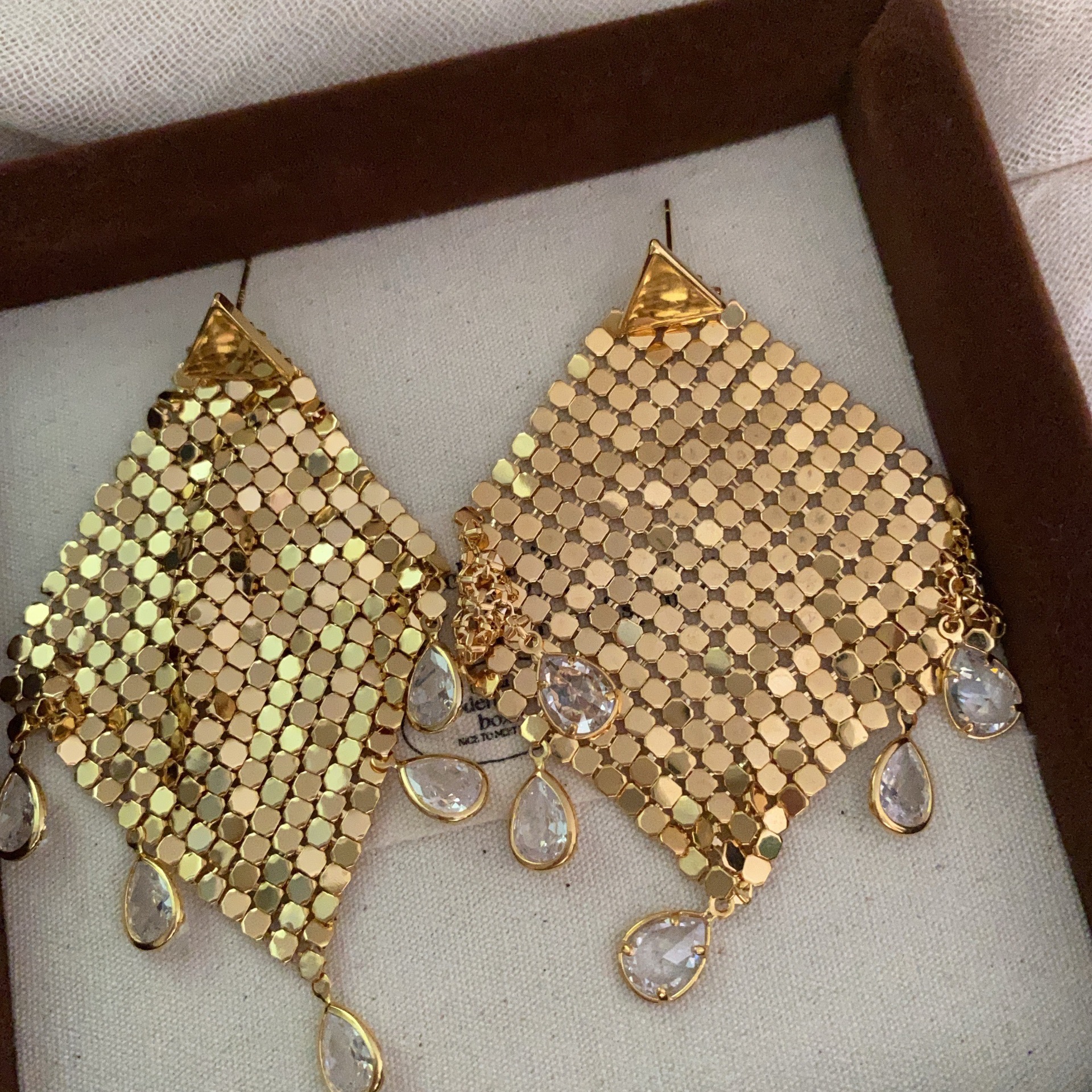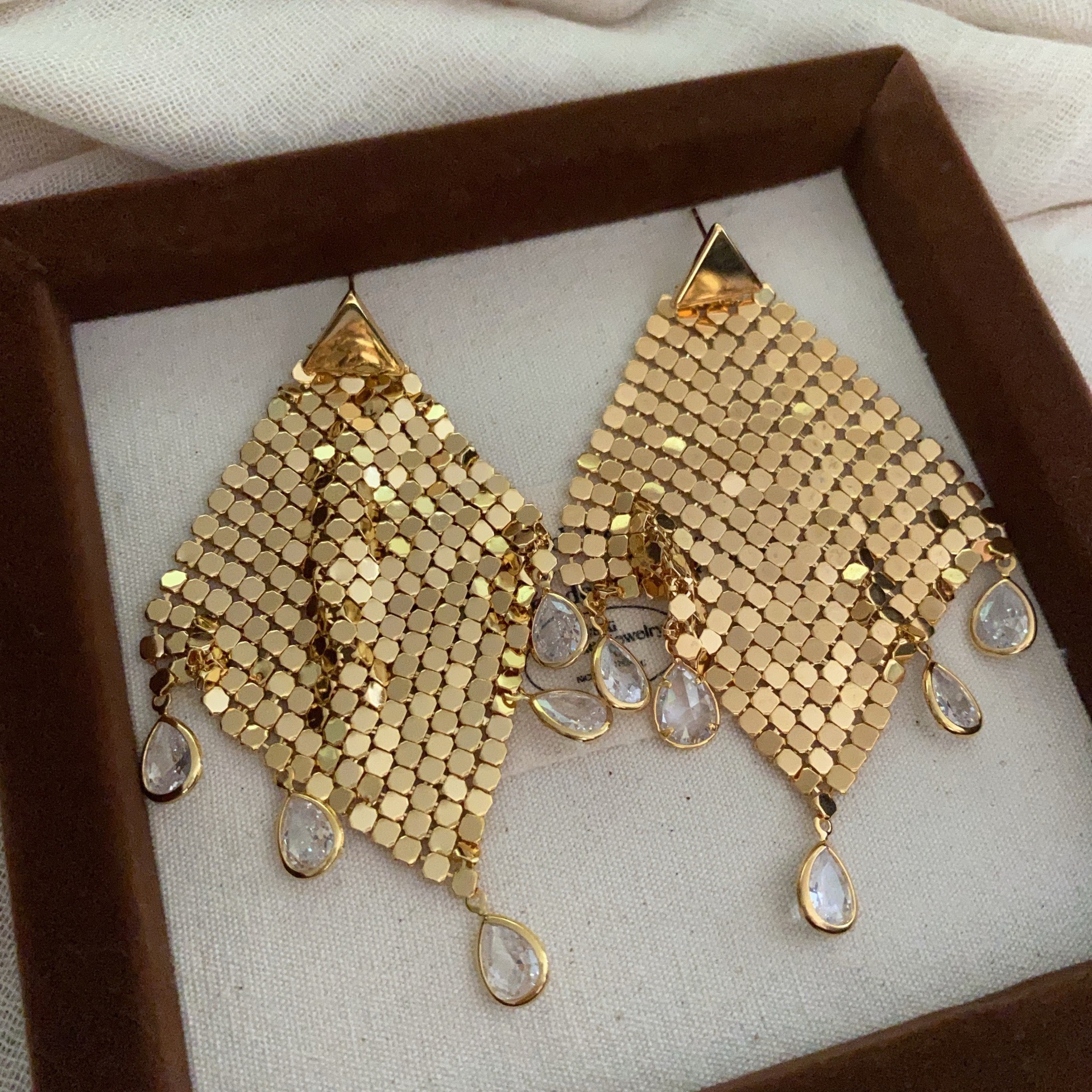 高级超闪方形垂坠流苏耳环小众设计个性时尚气质夸张轻奢灵动耳饰