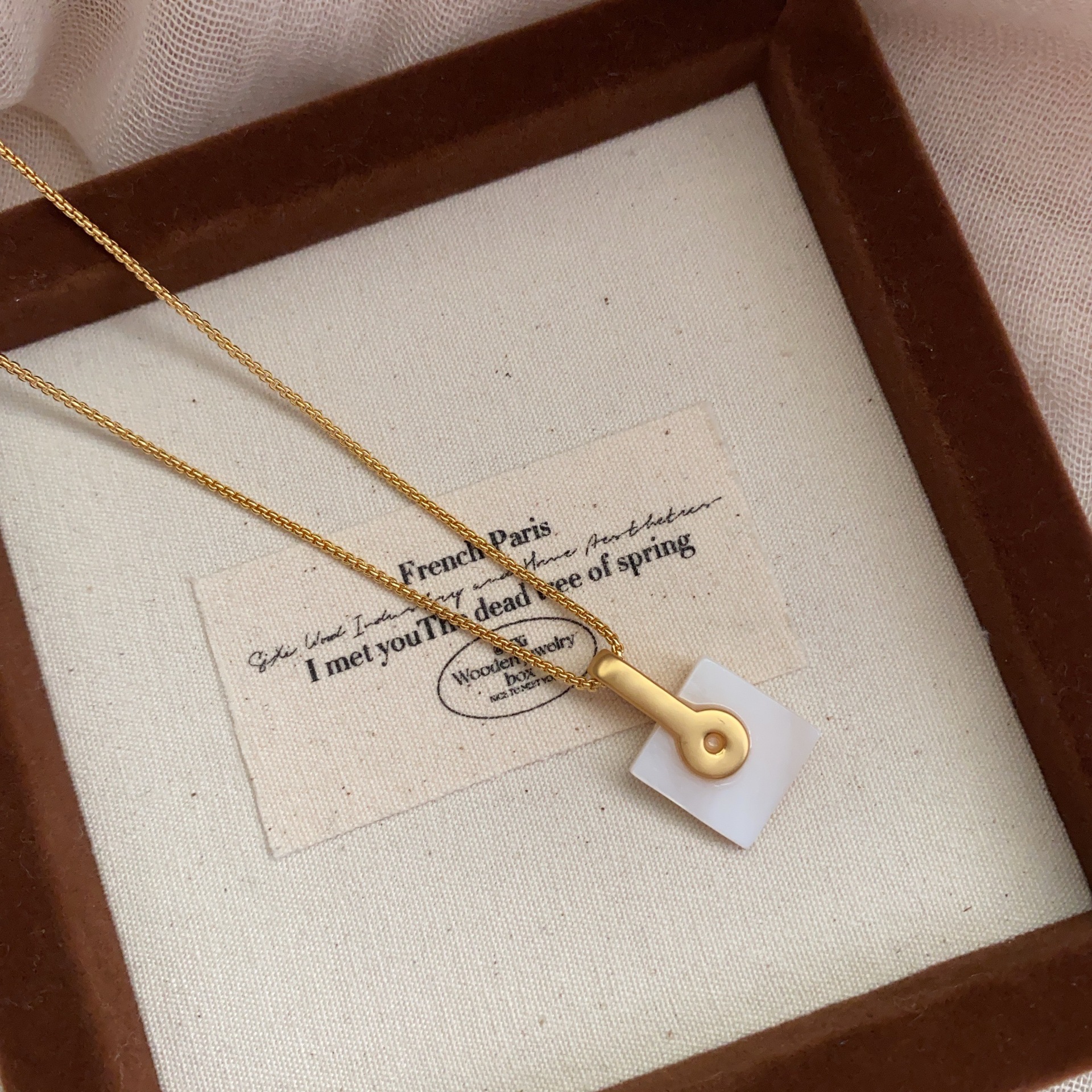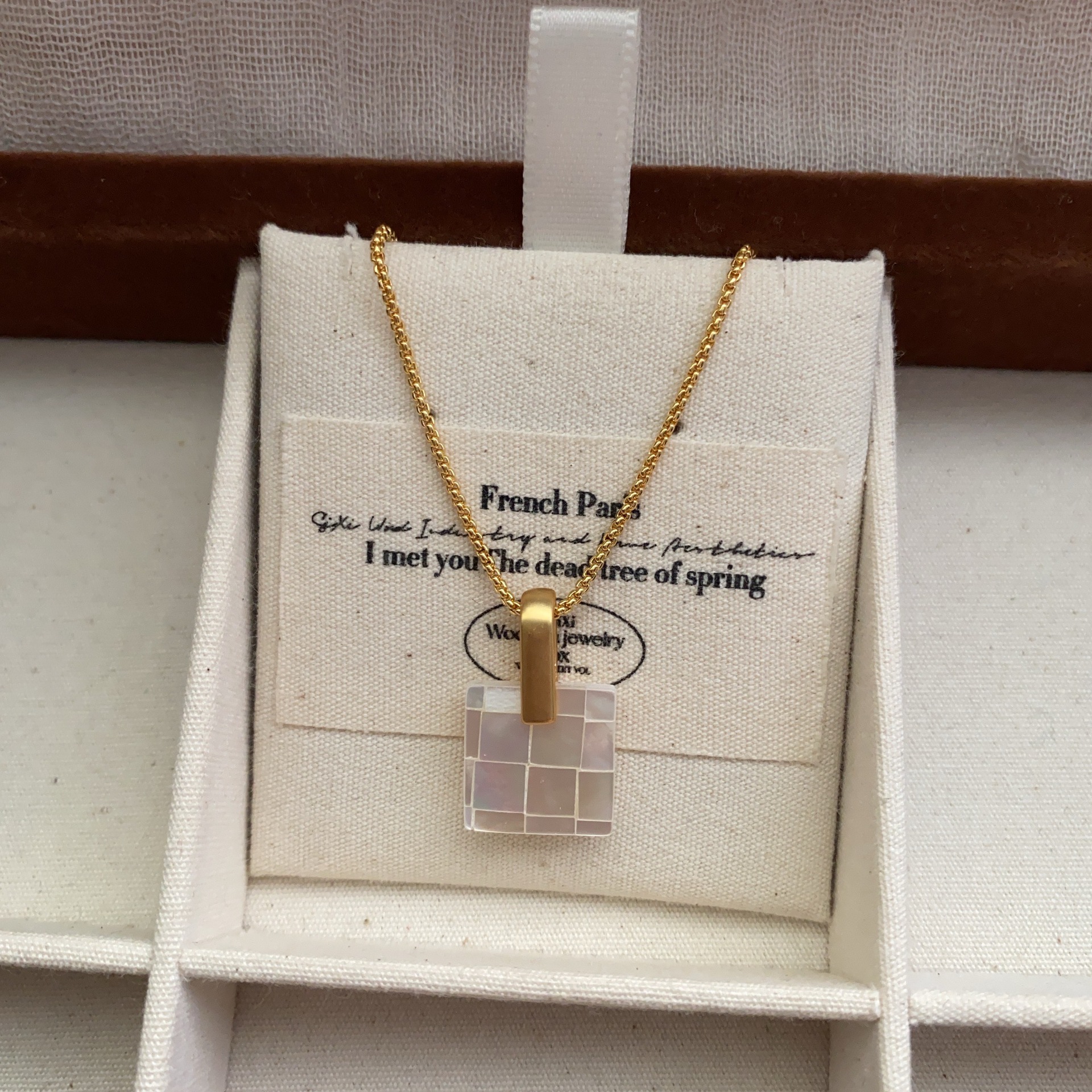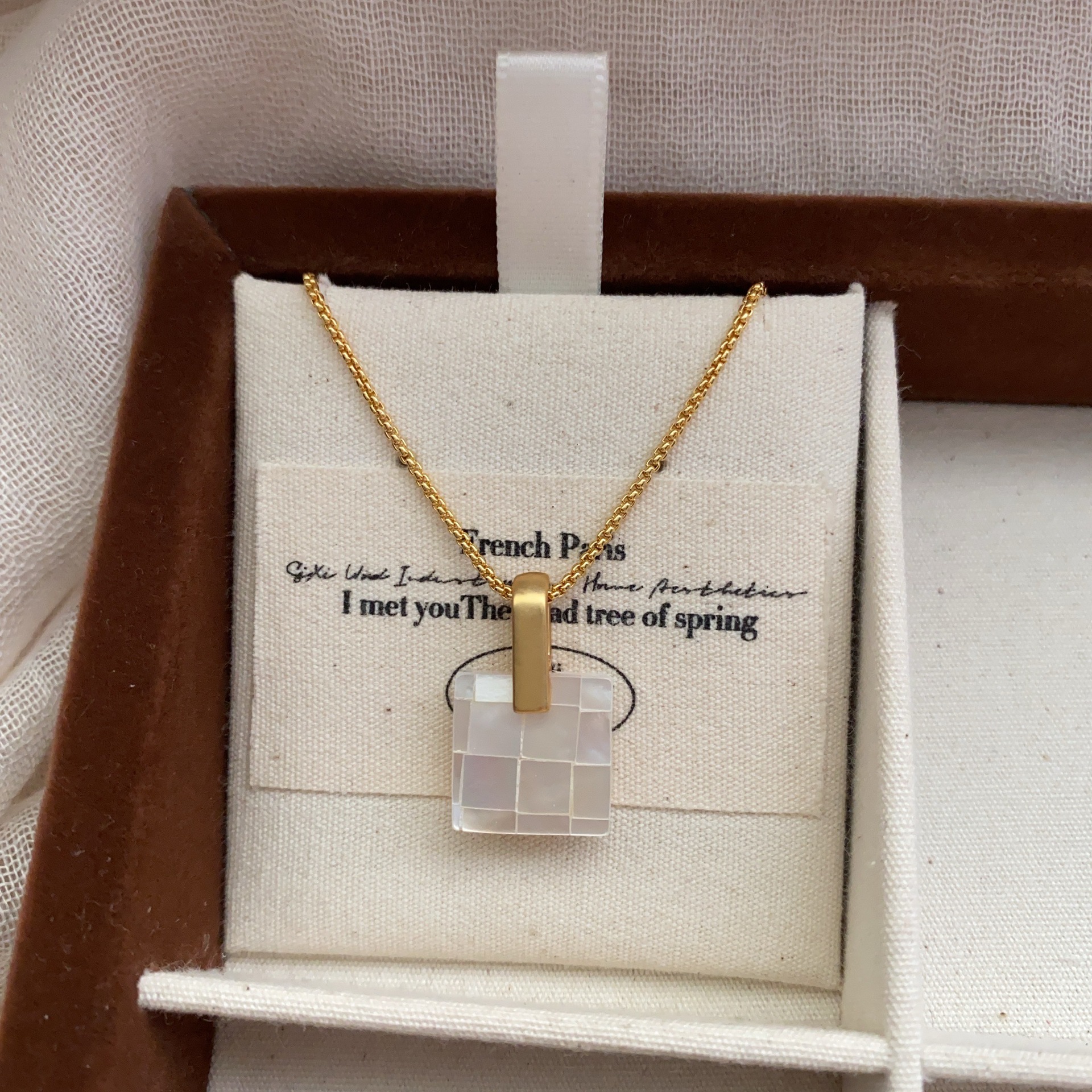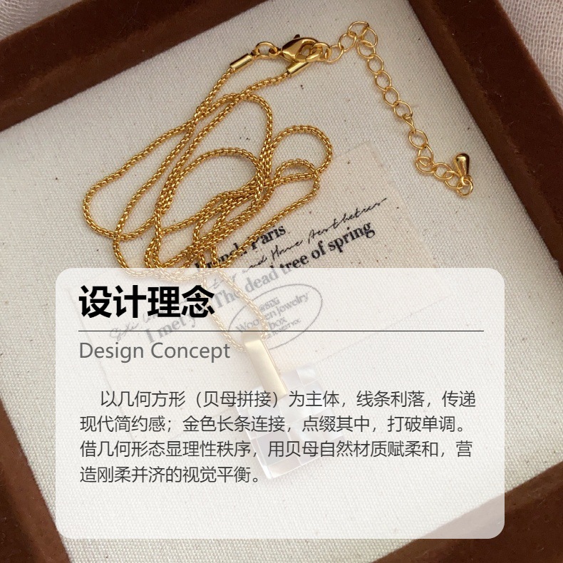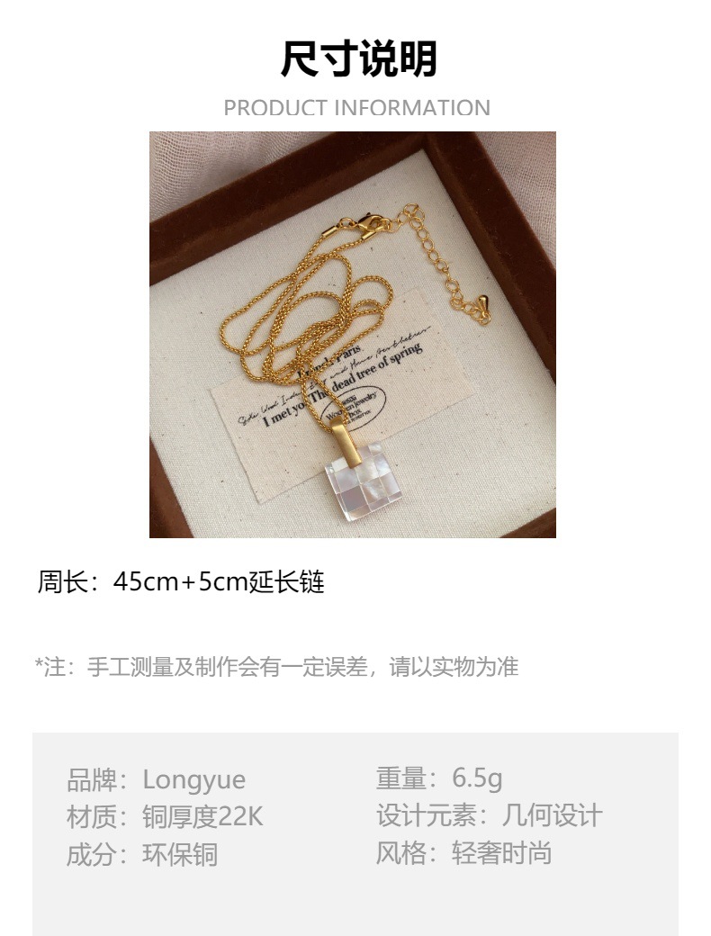 法式方形马赛克方块欧美港风贝壳简约项链锁骨链时尚通勤百搭项链