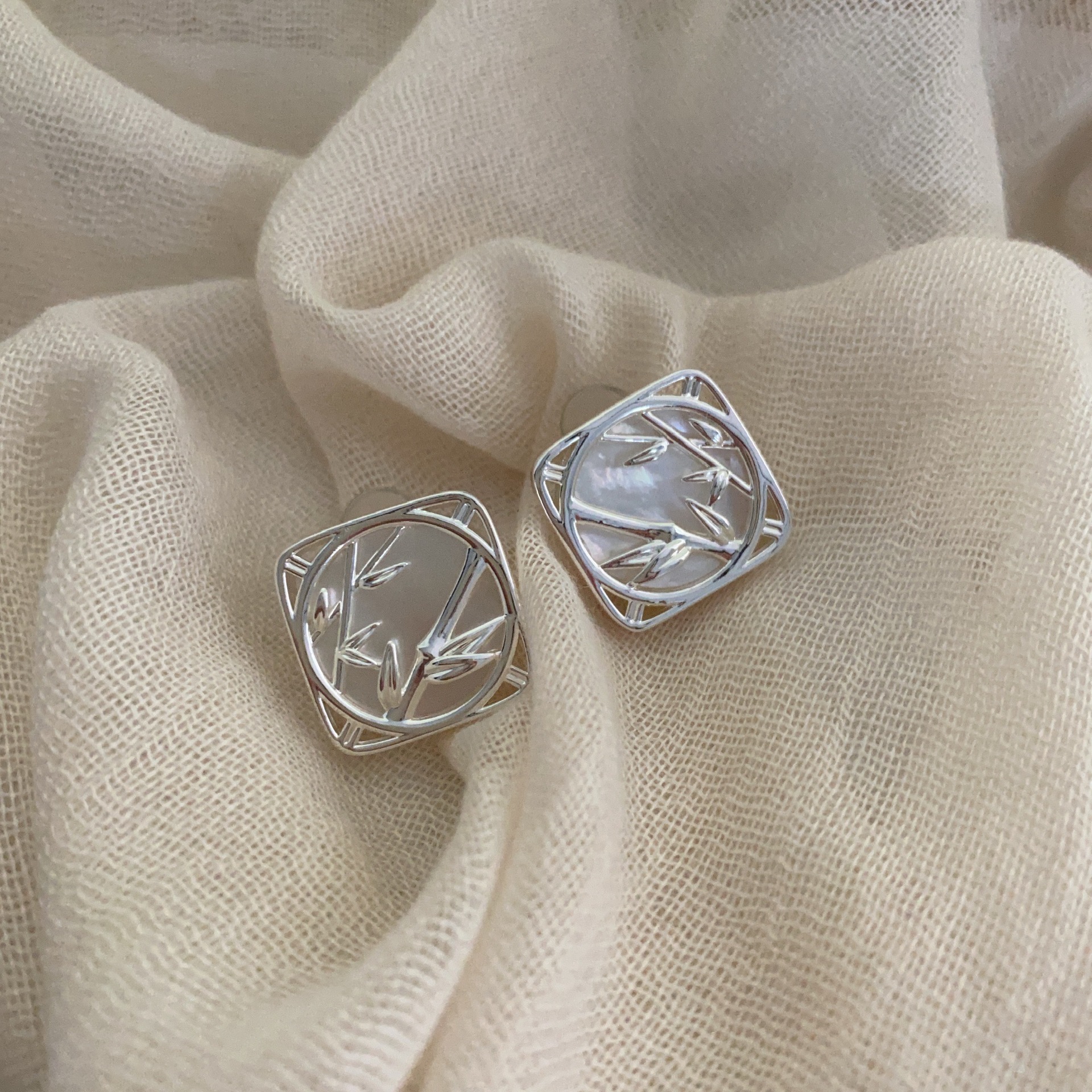 精致高级感新款耳钉镶锆石贴贝四叶首饰小众设计感百搭通勤耳环女