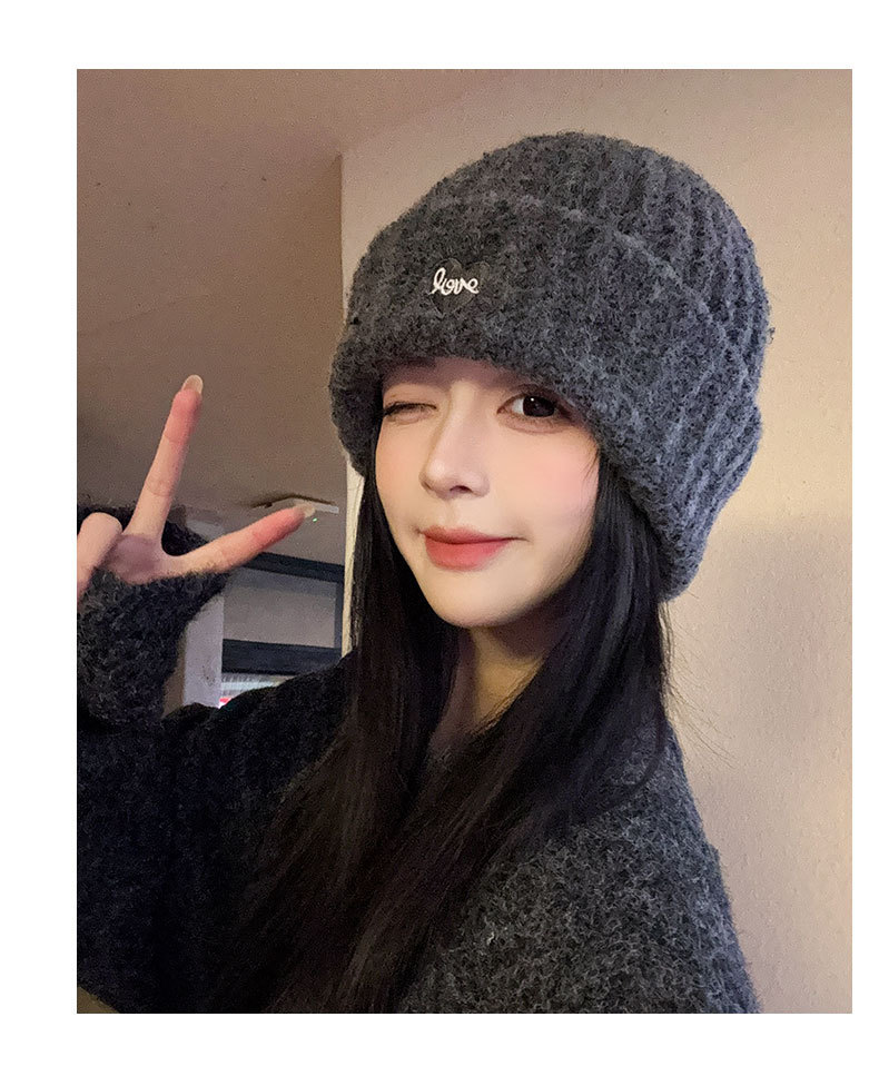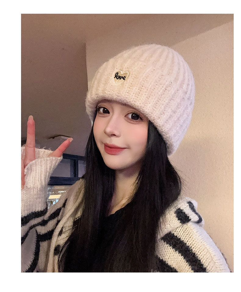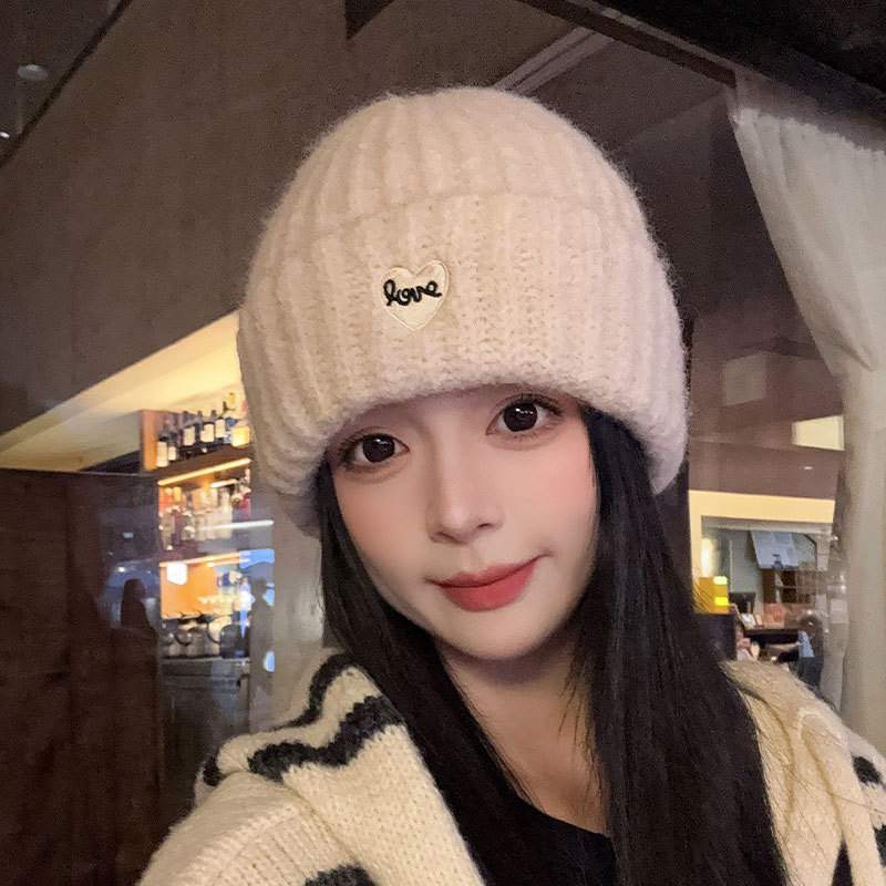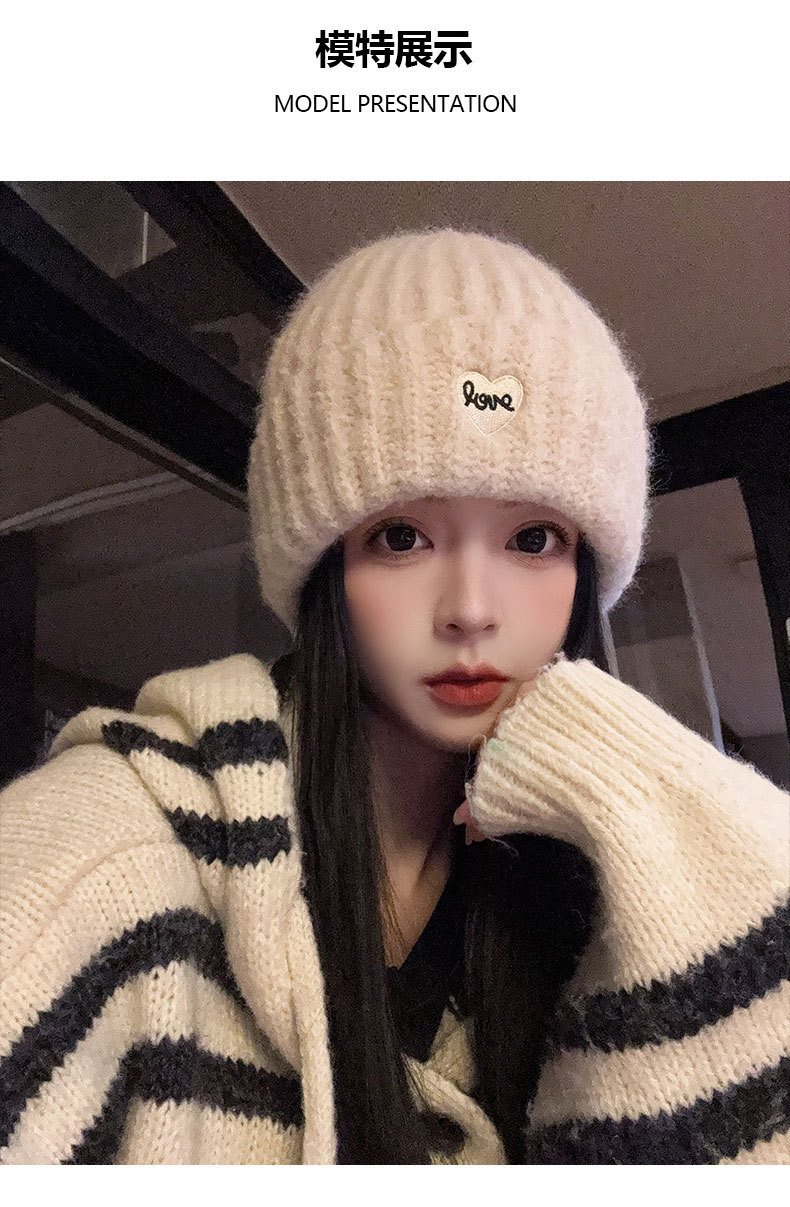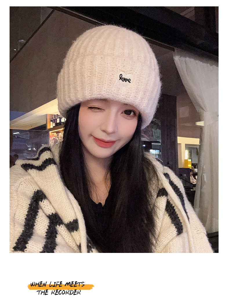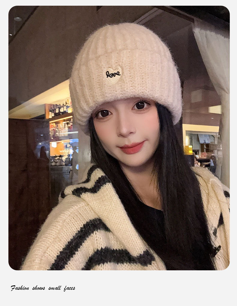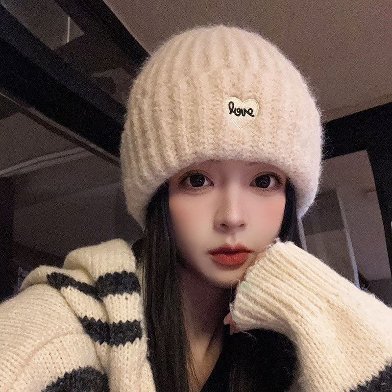 简约厚款针织帽女生加厚显脸小可爱心毛线帽秋冬保暖百搭护耳帽子