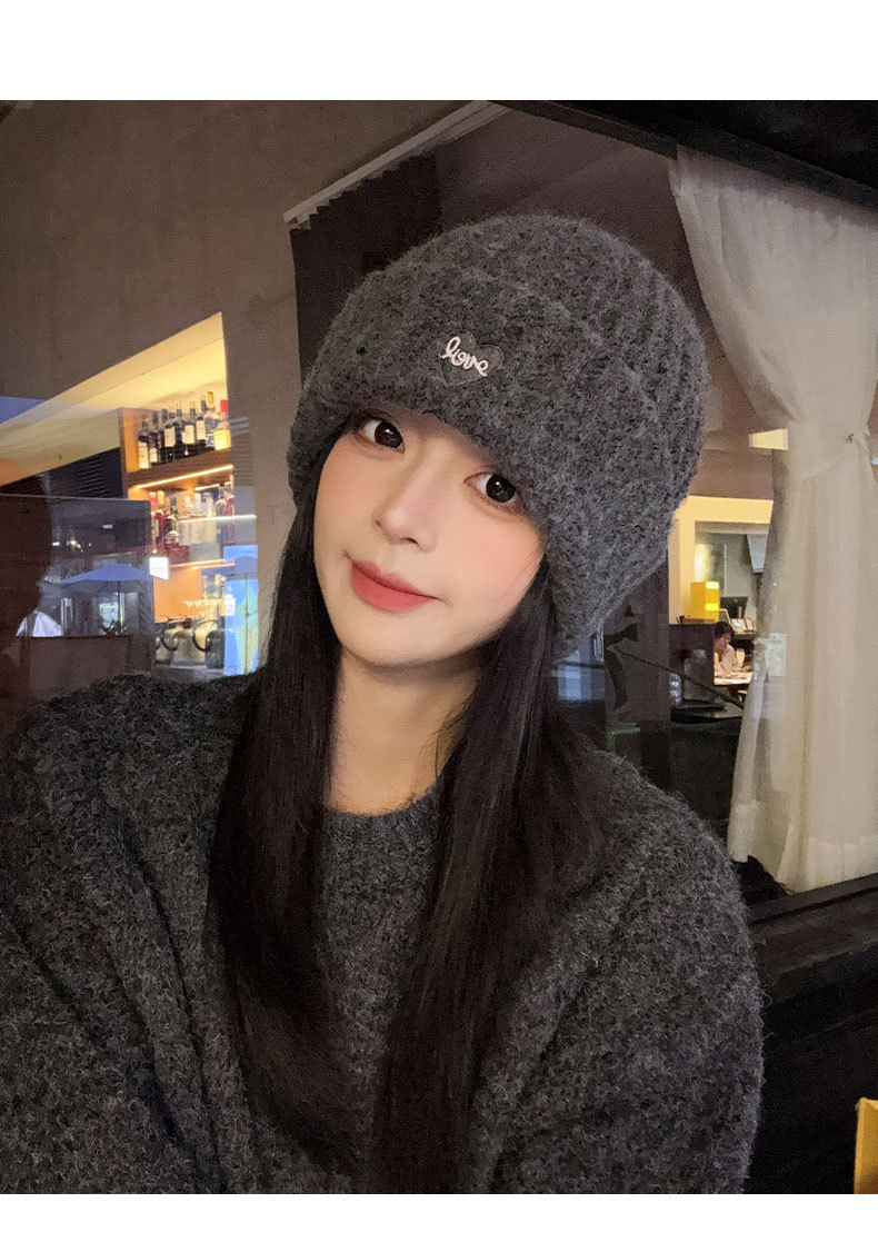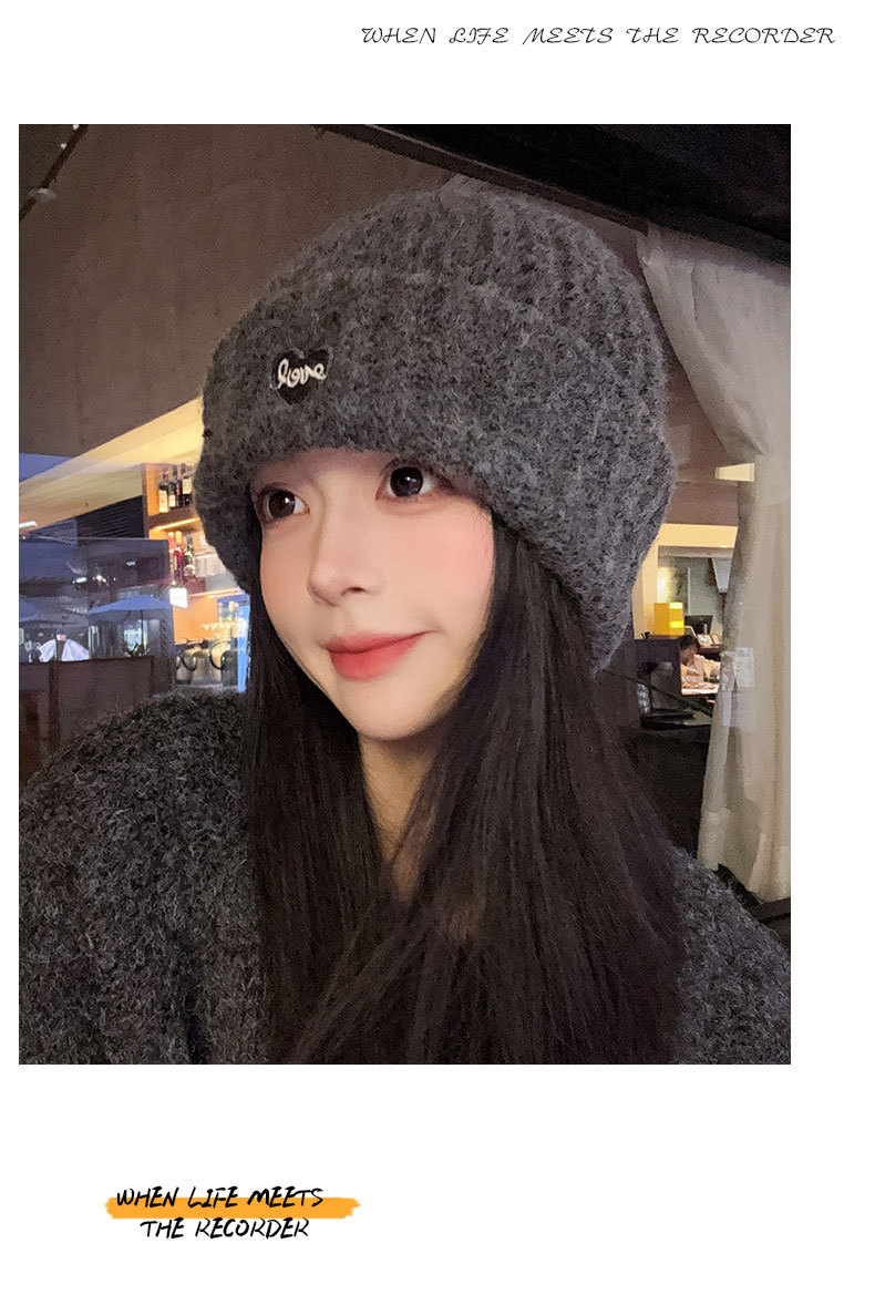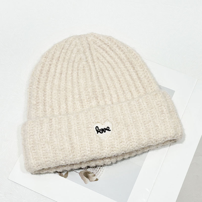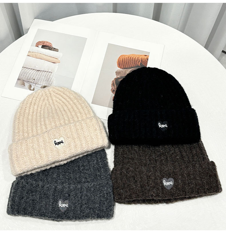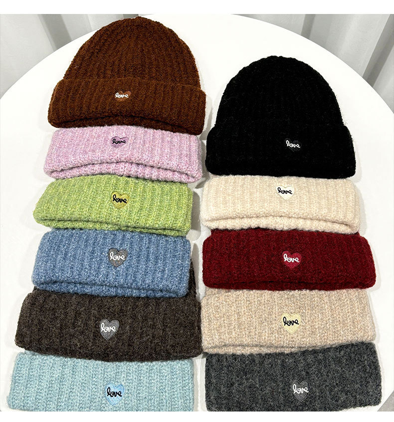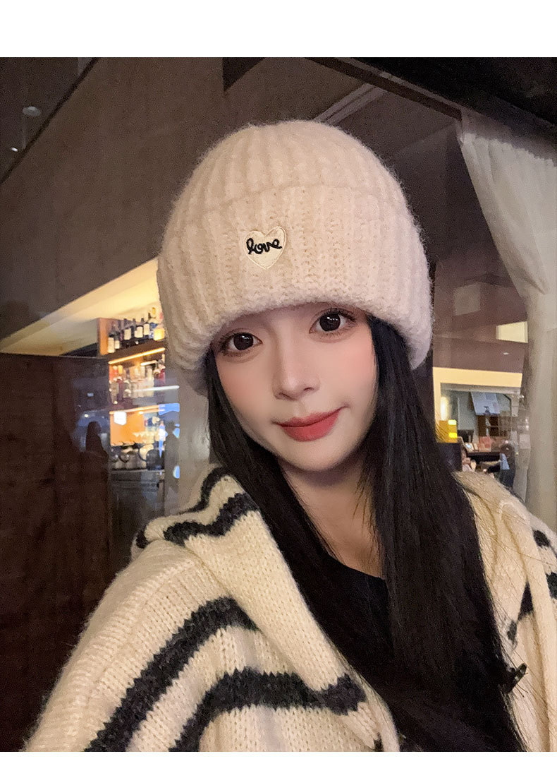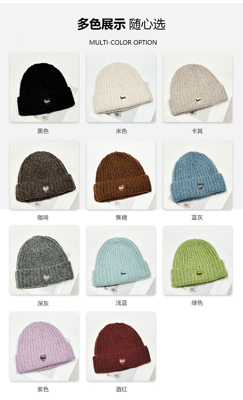 简约厚款针织帽女生加厚显脸小可爱心毛线帽秋冬保暖百搭护耳帽子