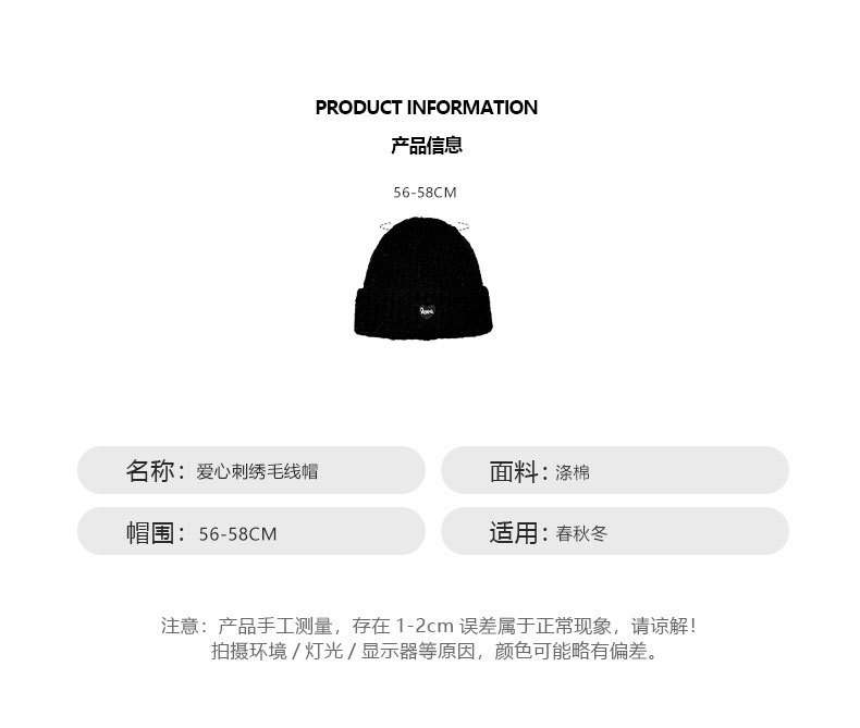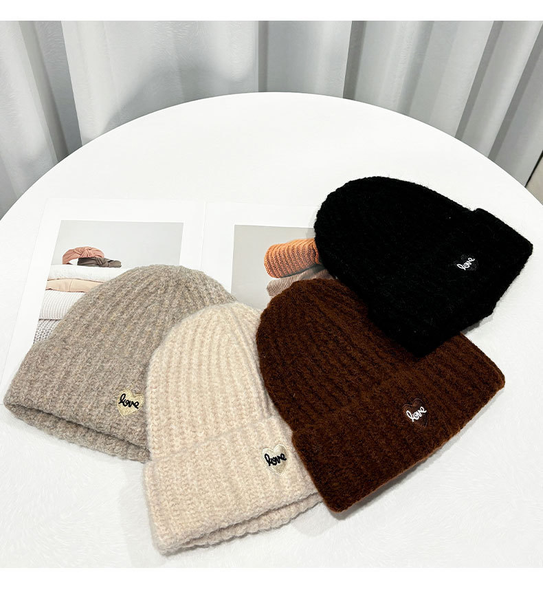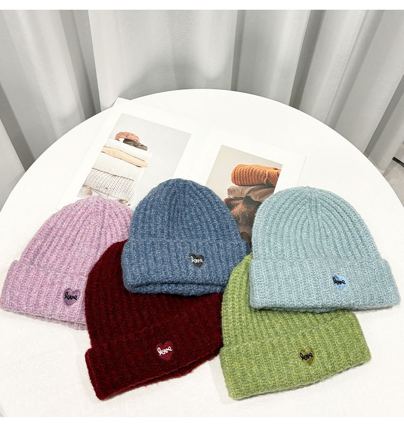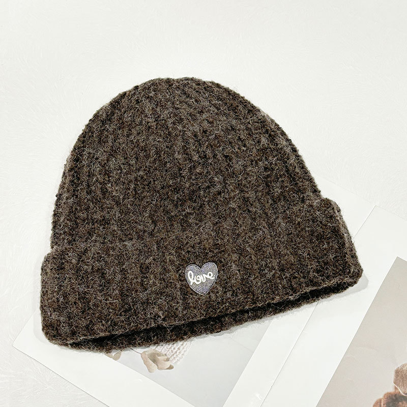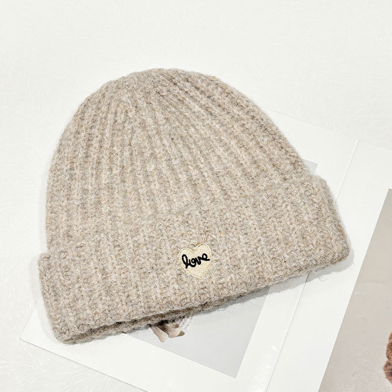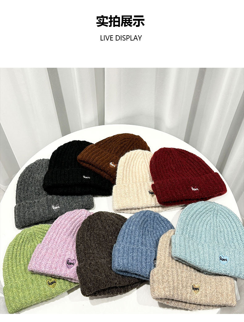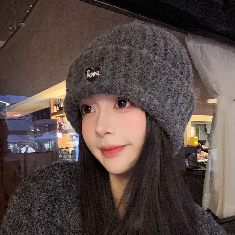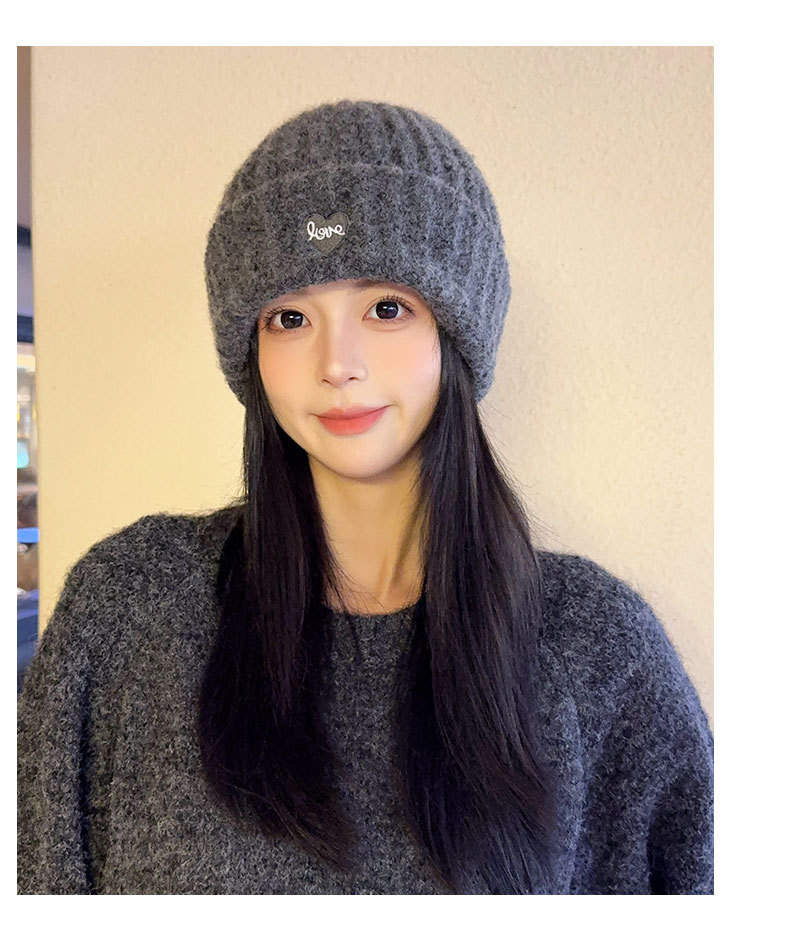简约厚款针织帽女生加厚显脸小可爱心毛线帽秋冬保暖百搭护耳帽子