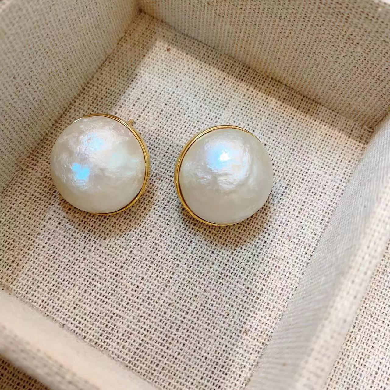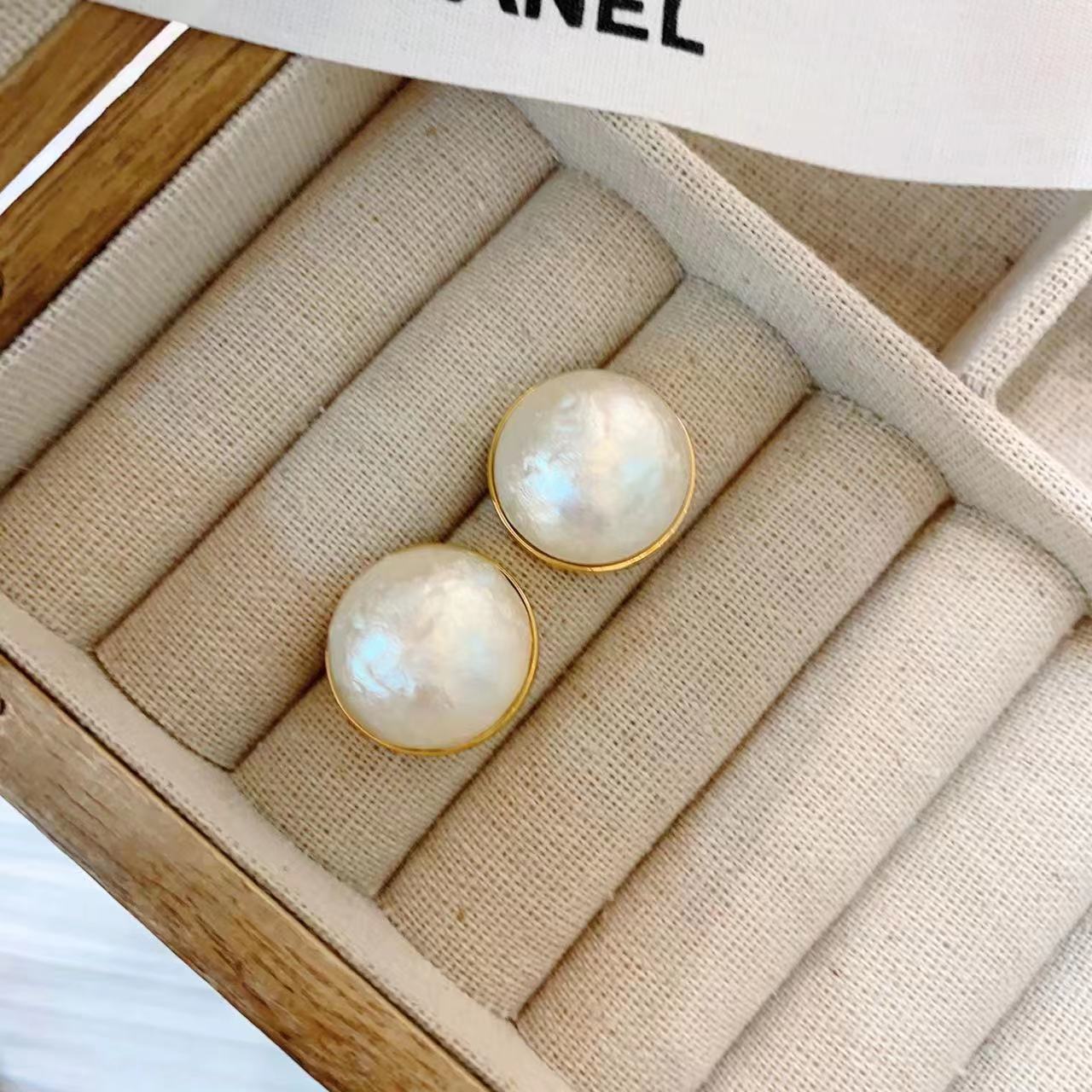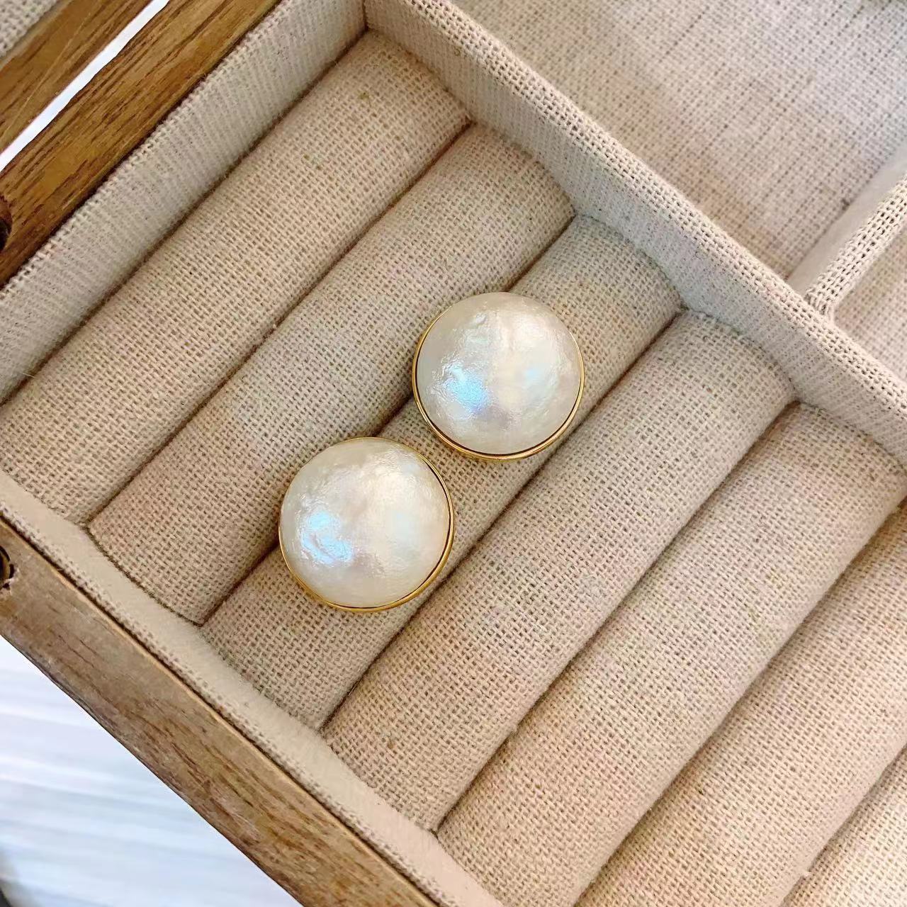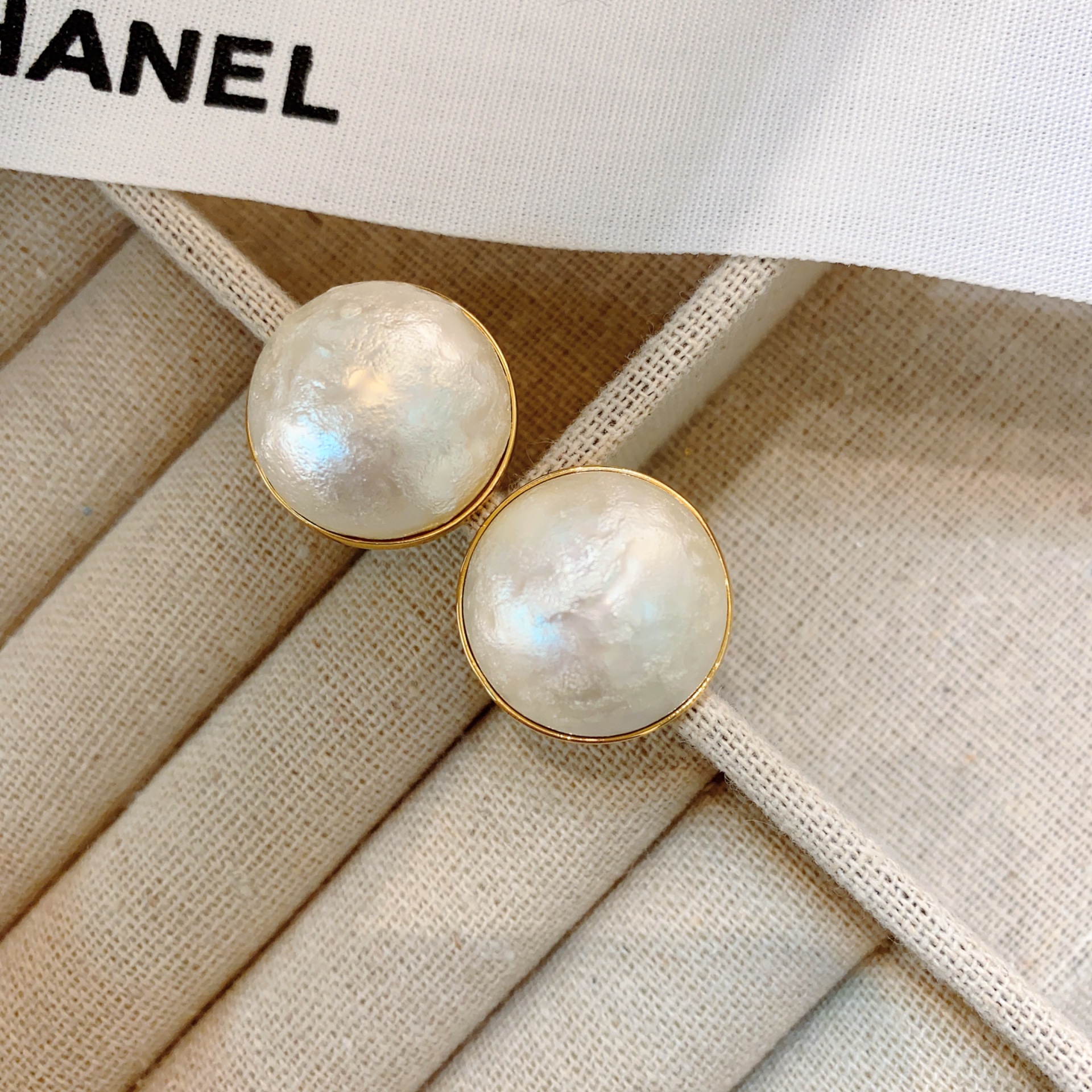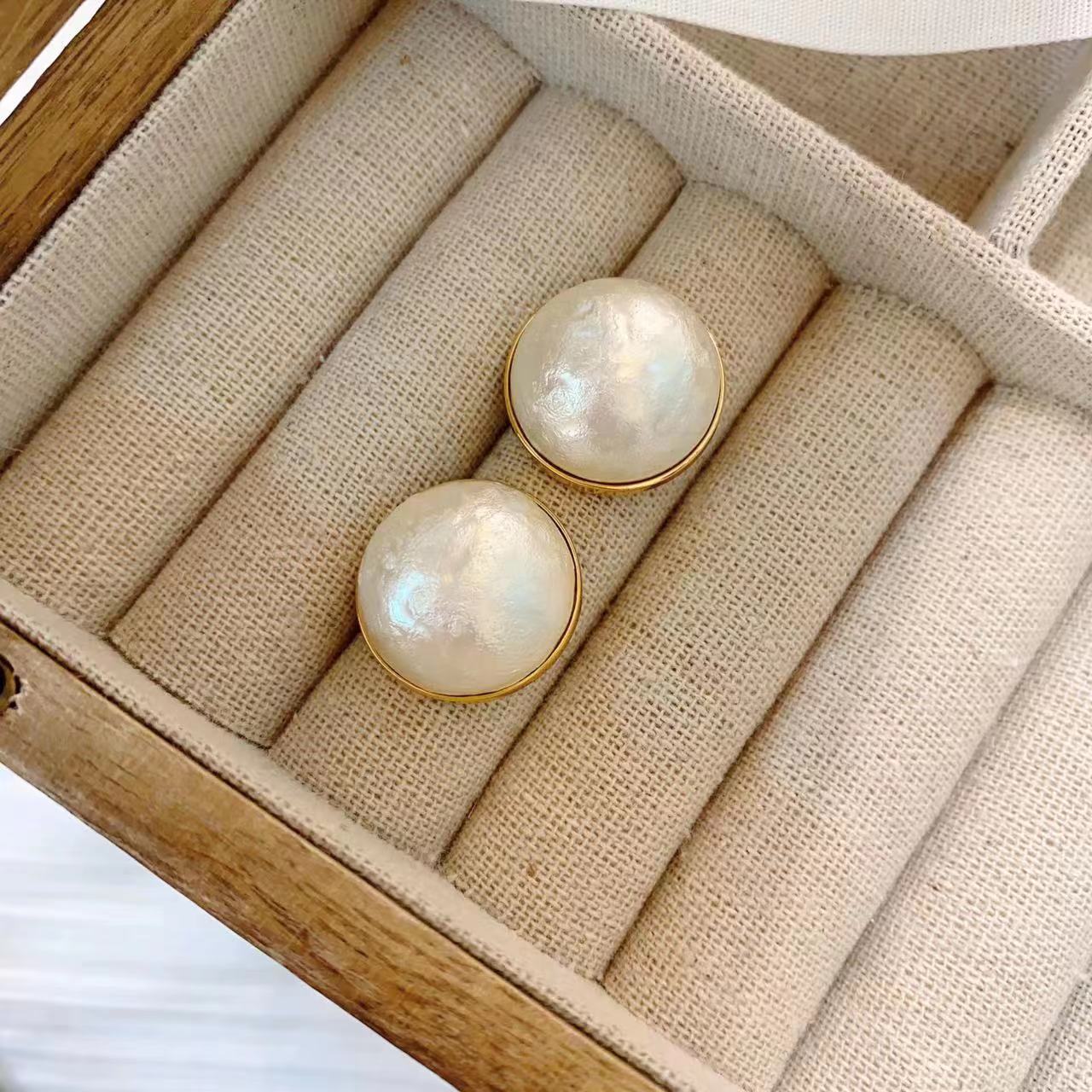 法式复古金边棉花珠个性圆形网红小众设计耳环法式轻奢气质百搭新
