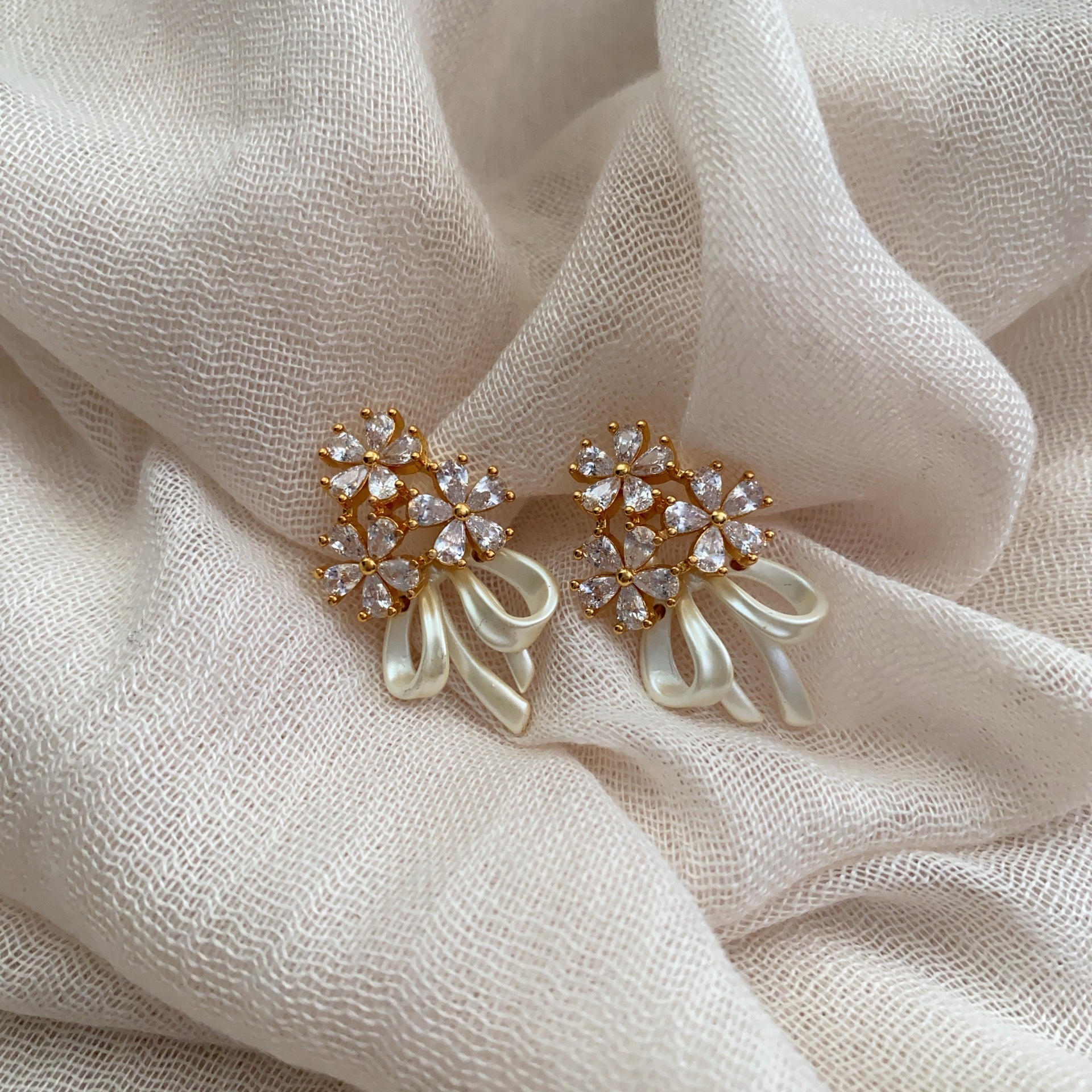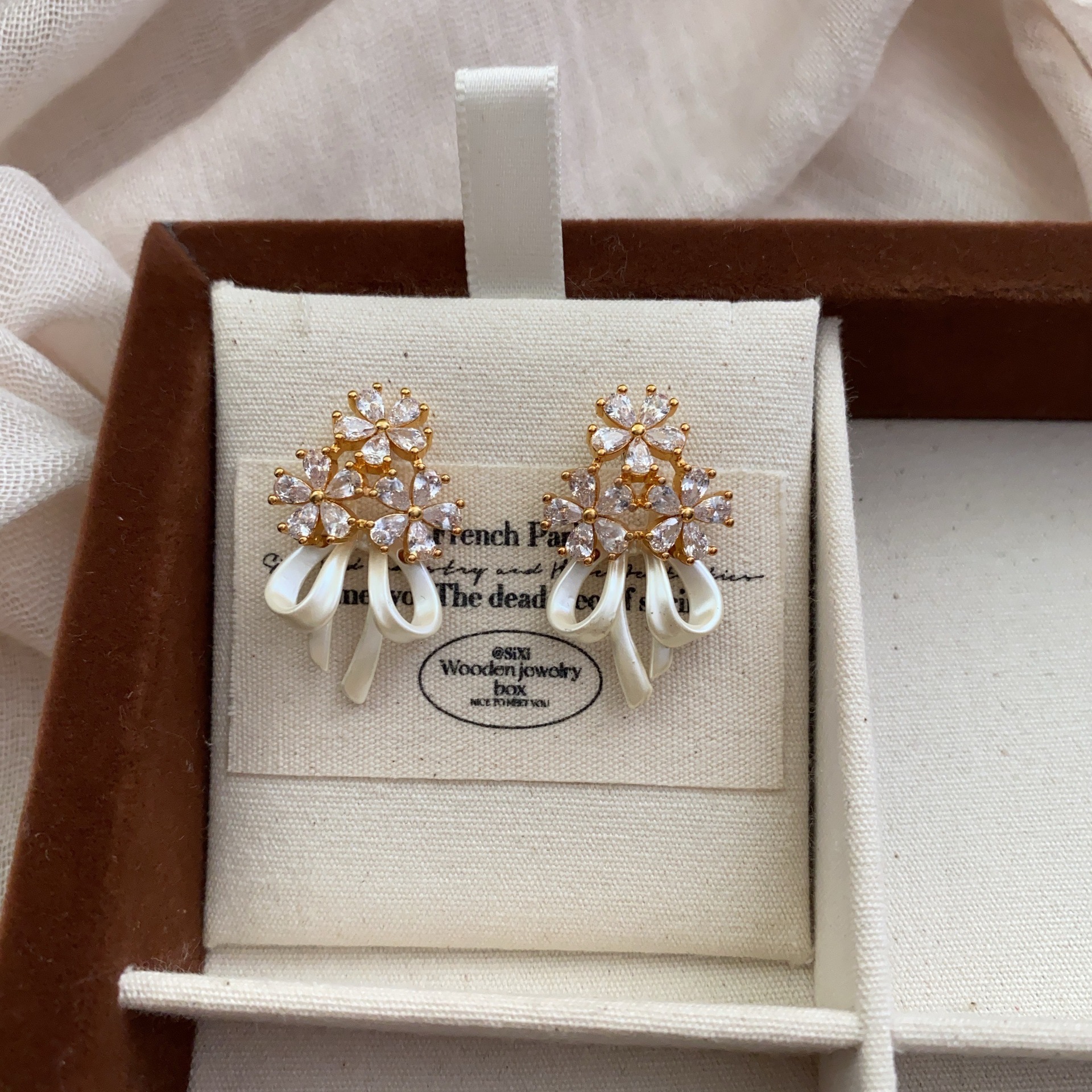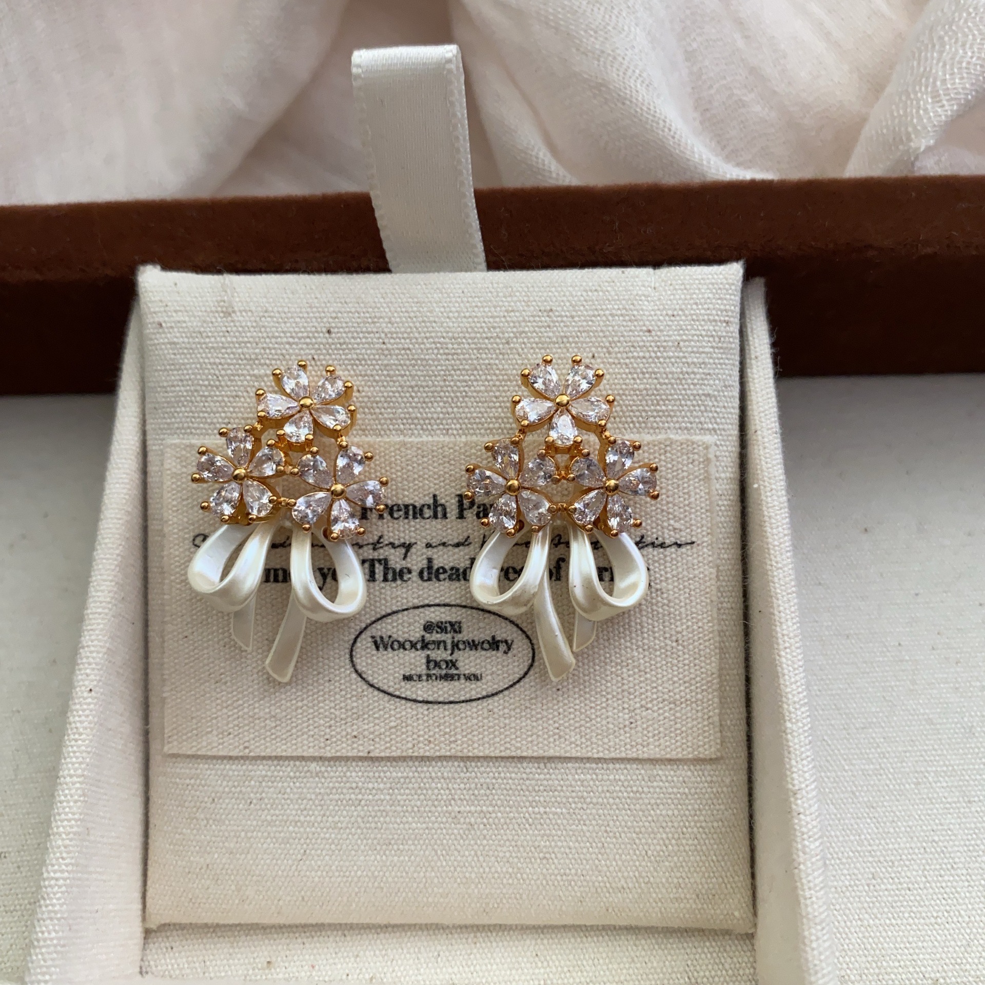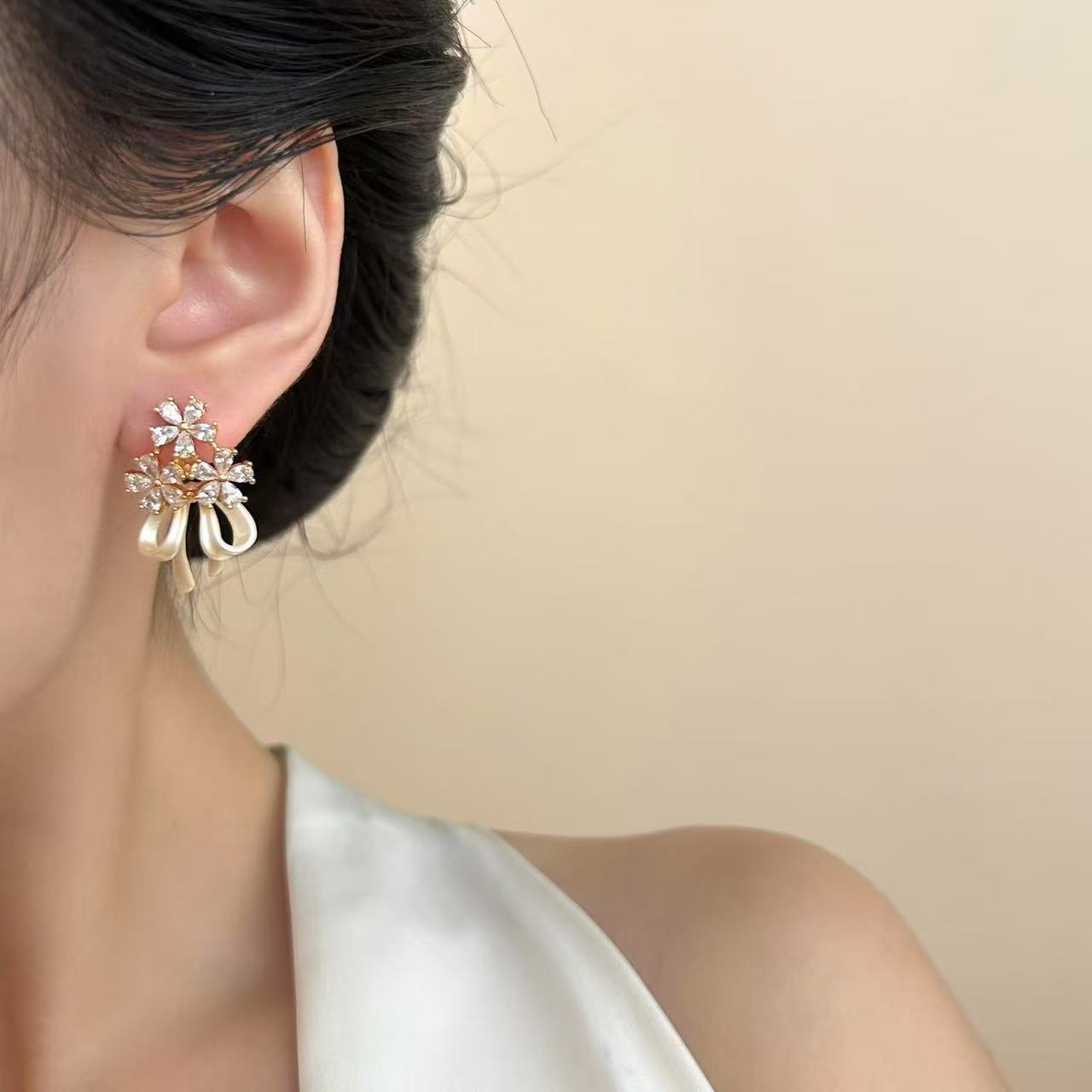 超闪仙气花朵蝴蝶结耳环精致轻奢耳钉高级感时尚甜美通勤百搭耳饰