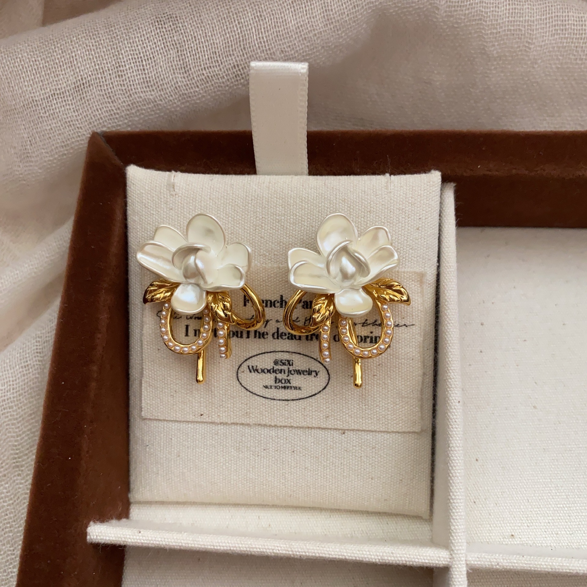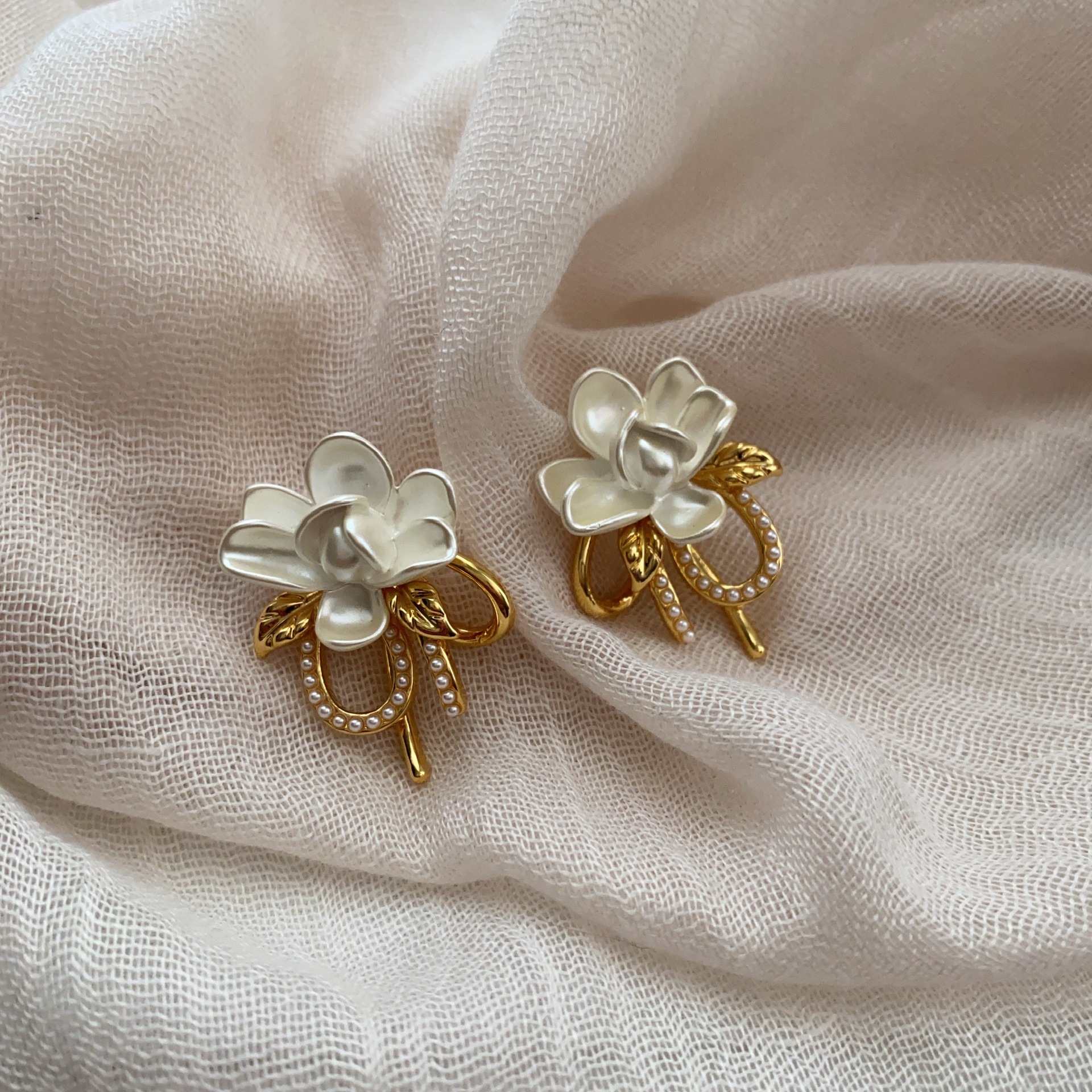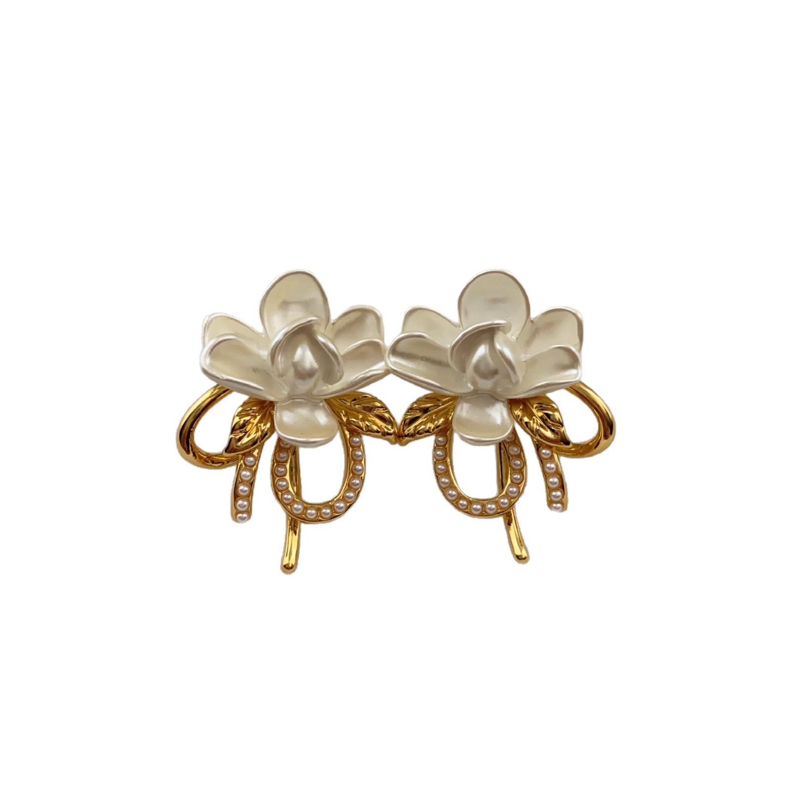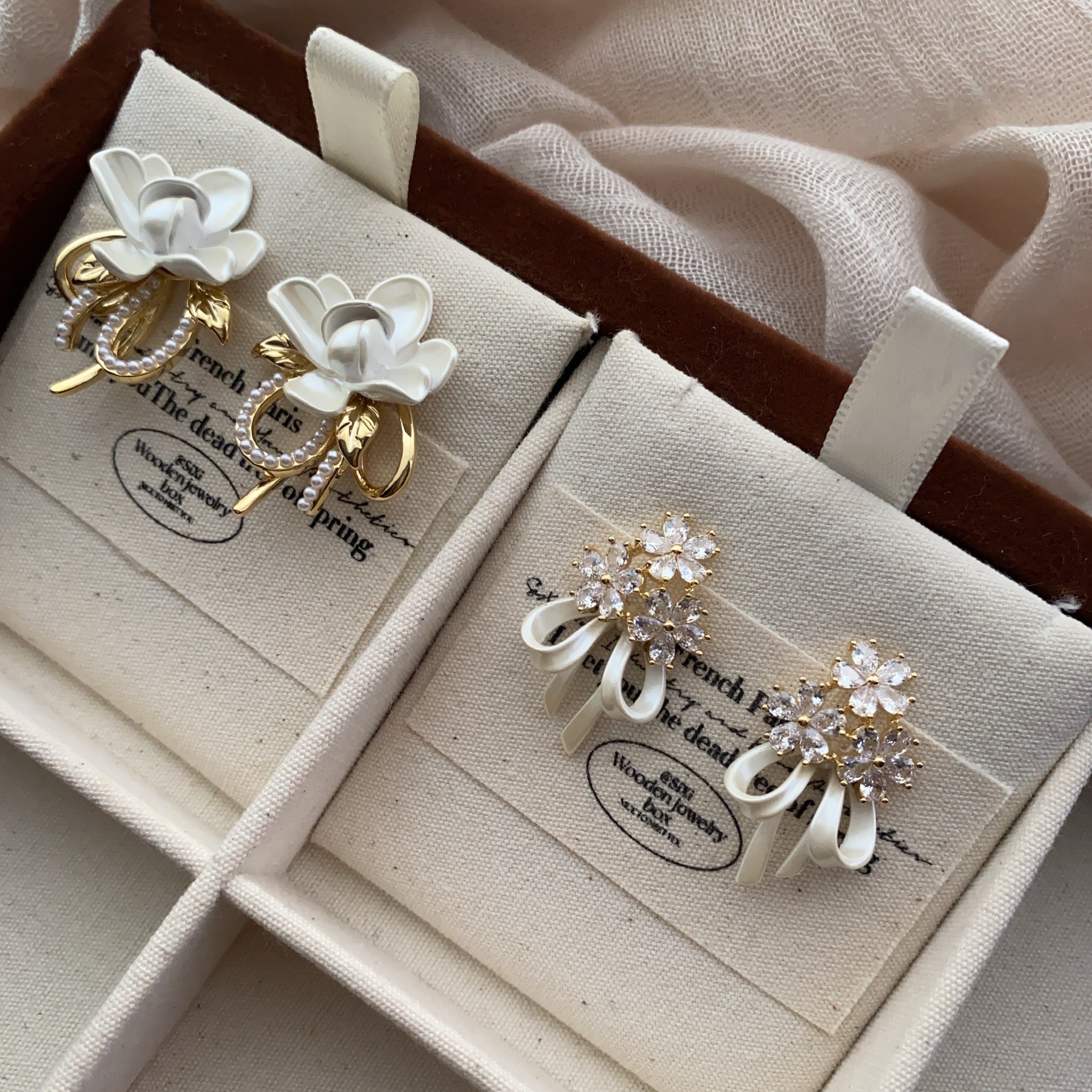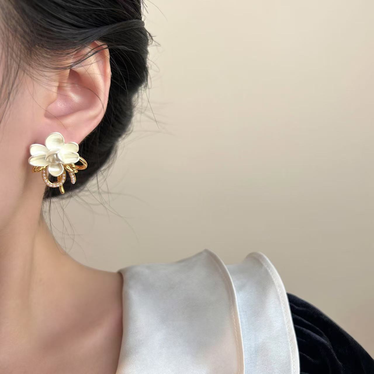 超闪仙气花朵蝴蝶结耳环精致轻奢耳钉高级感时尚甜美通勤百搭耳饰