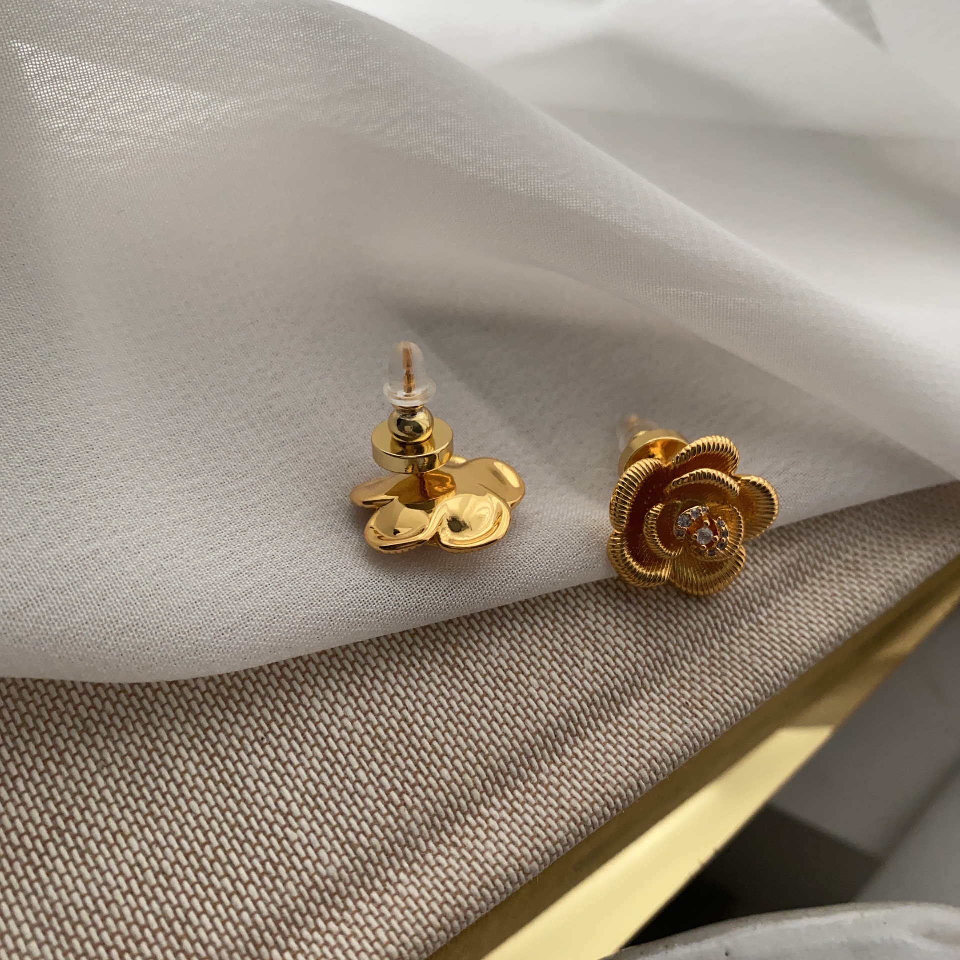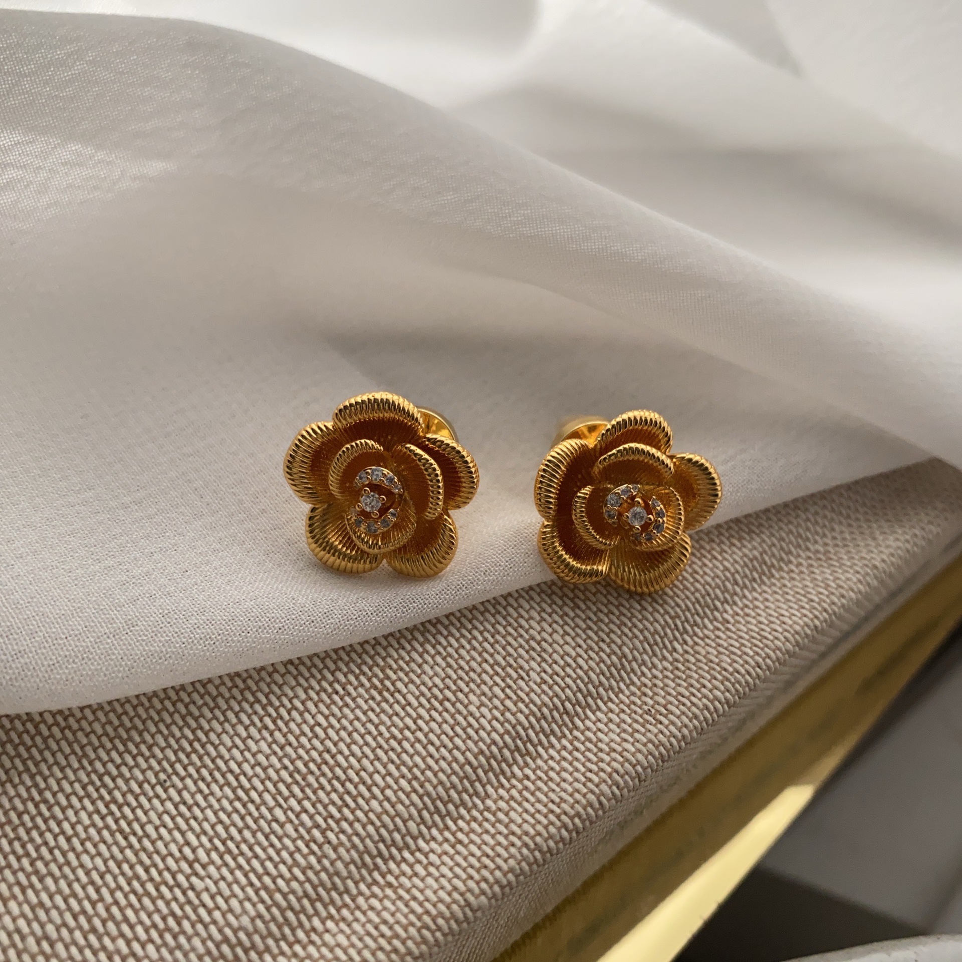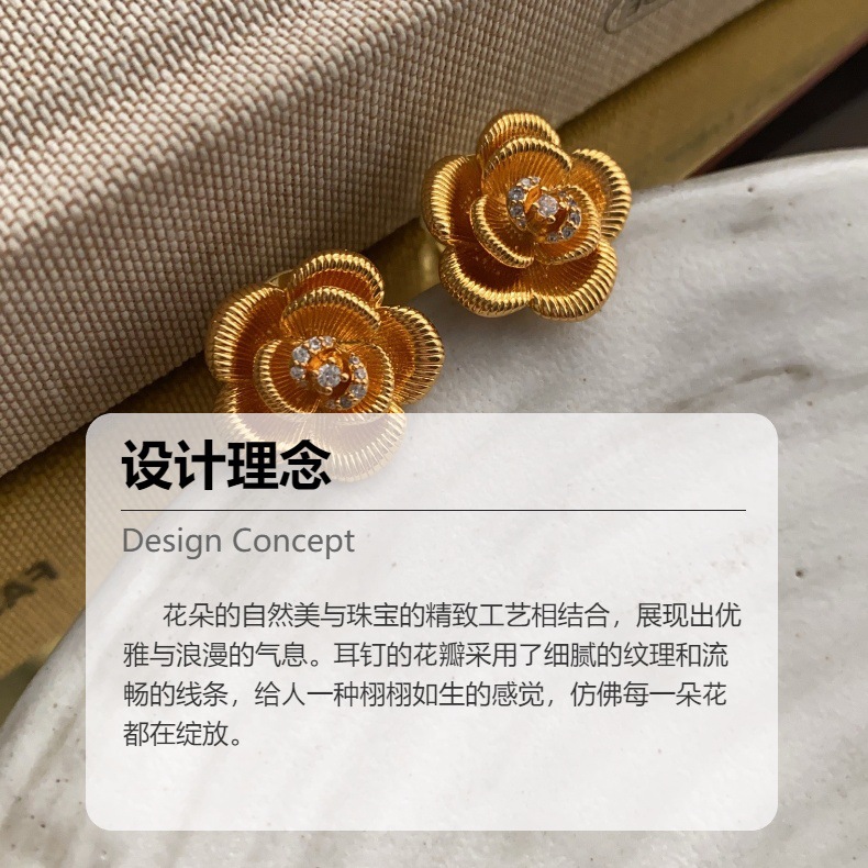 古法镶钻拉丝小金花耳钉复古小众设计感精致花朵耳环小巧百搭耳饰