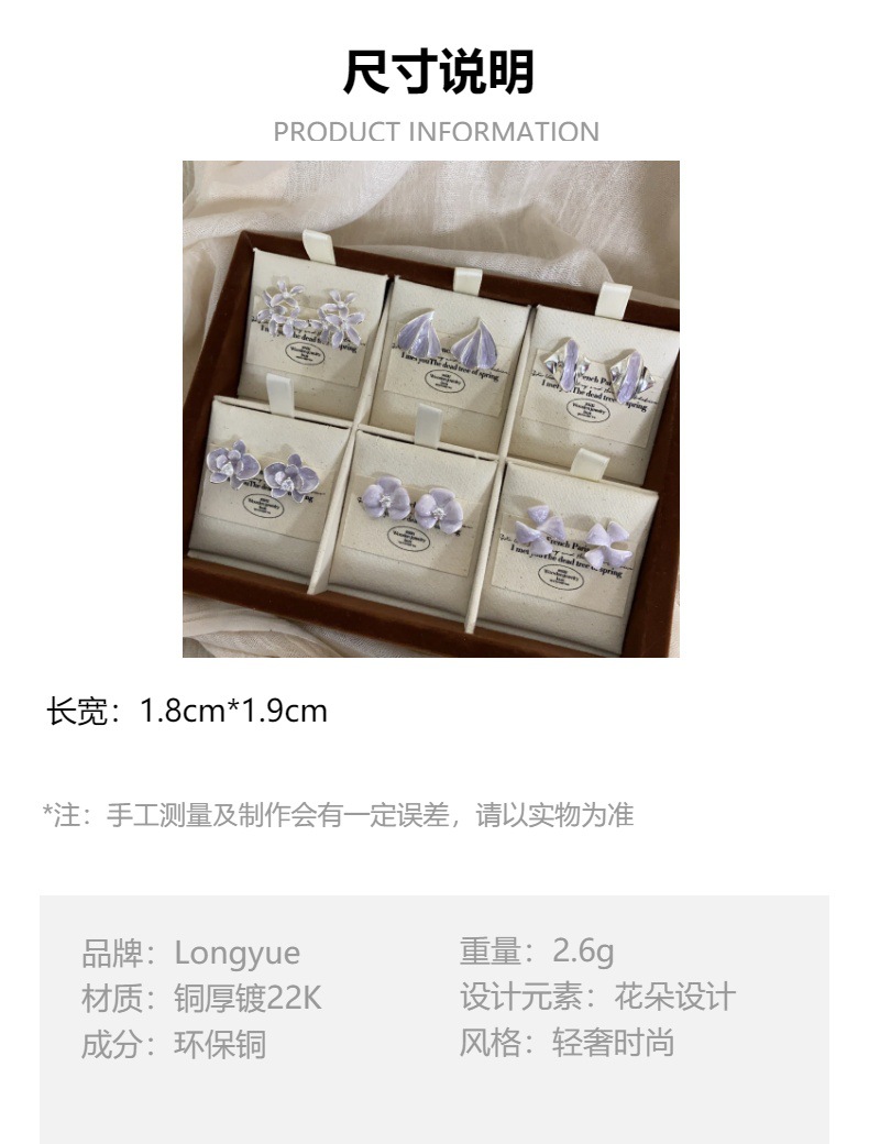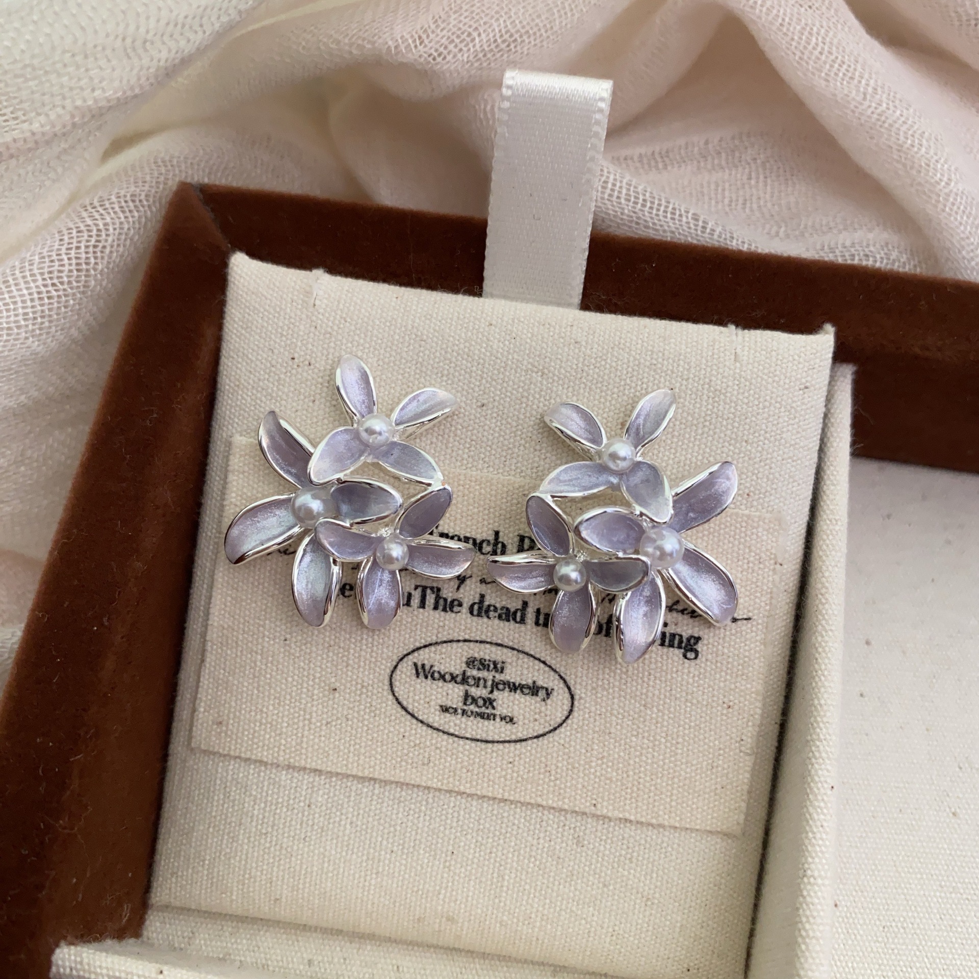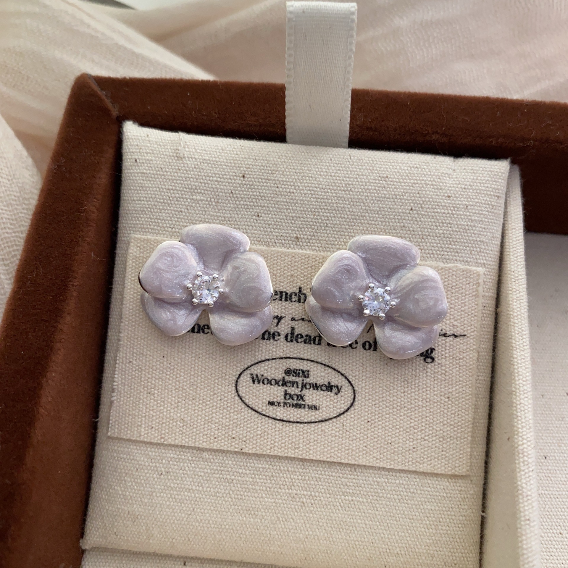 淡紫色滴油花朵耳环简约甜美小清新耳钉百搭时尚气质优雅梦幻耳饰