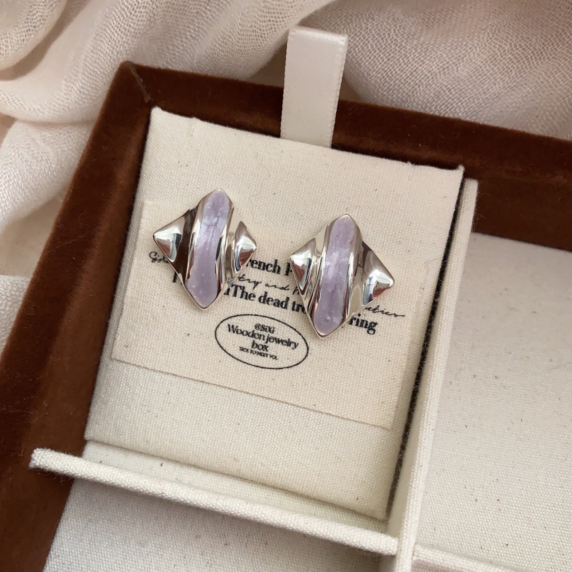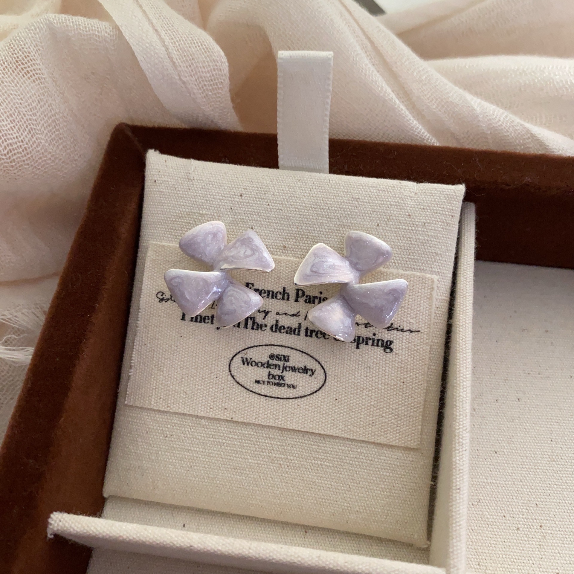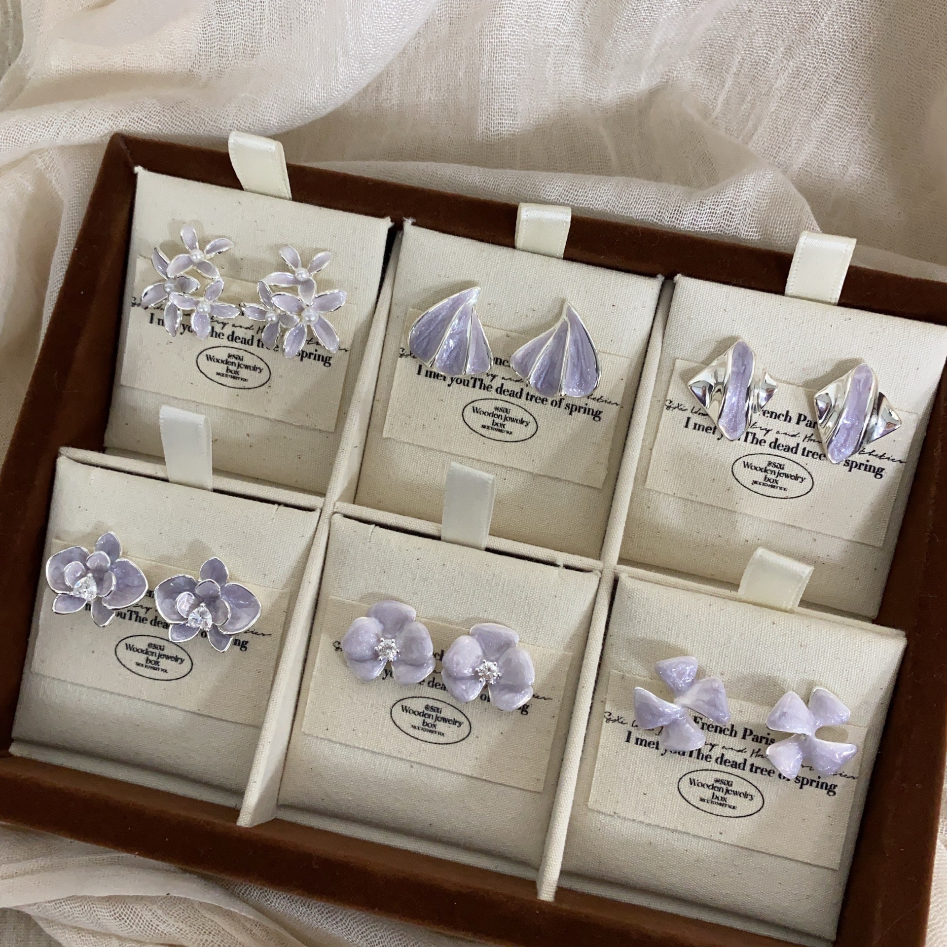 淡紫色滴油花朵耳环简约甜美小清新耳钉百搭时尚气质优雅梦幻耳饰