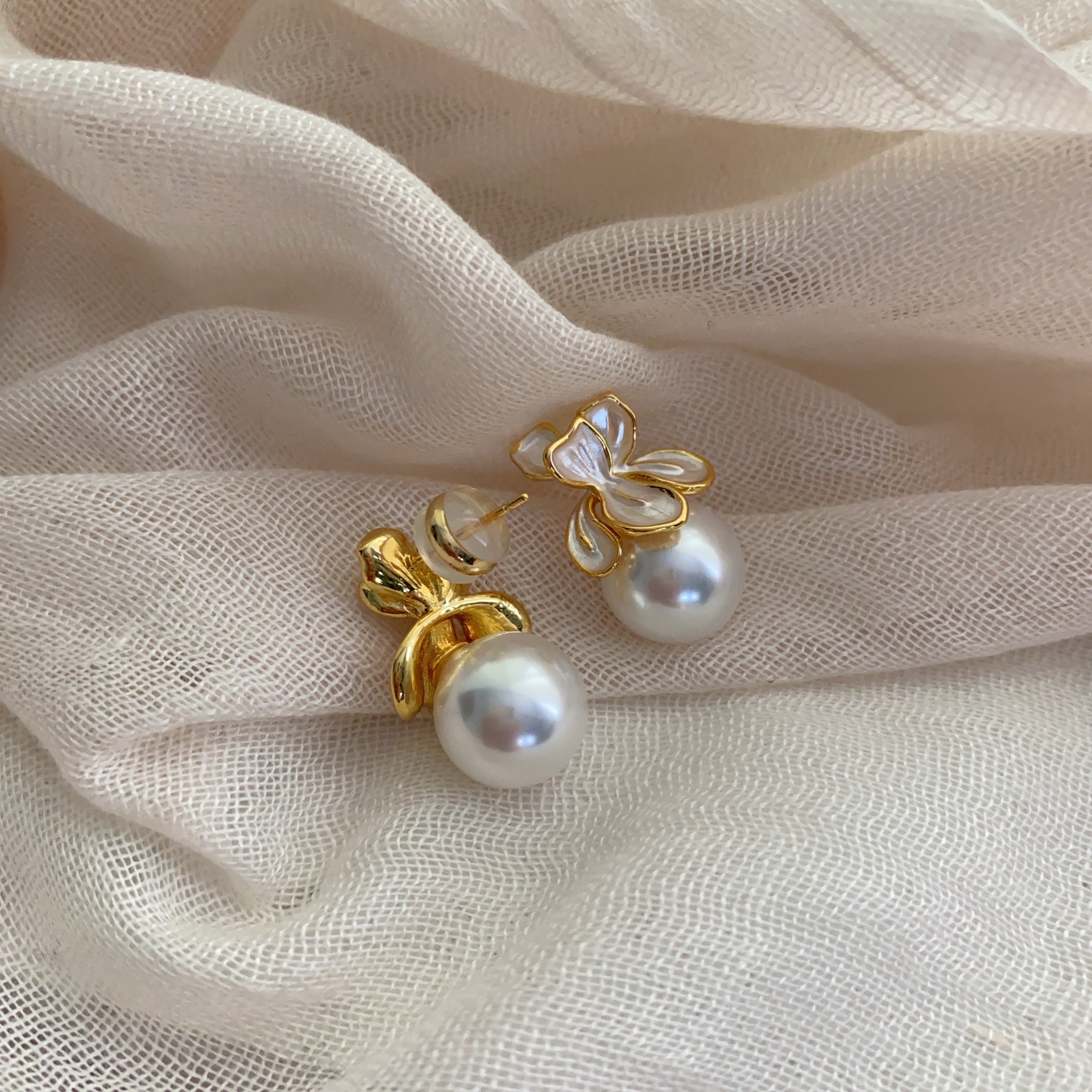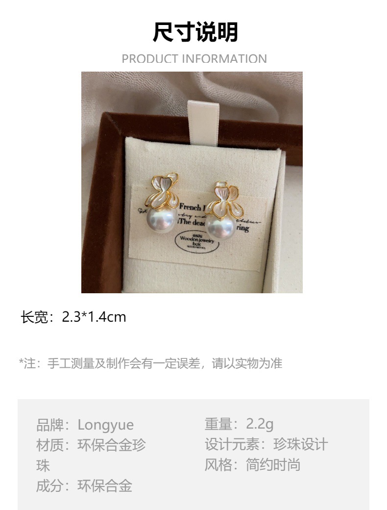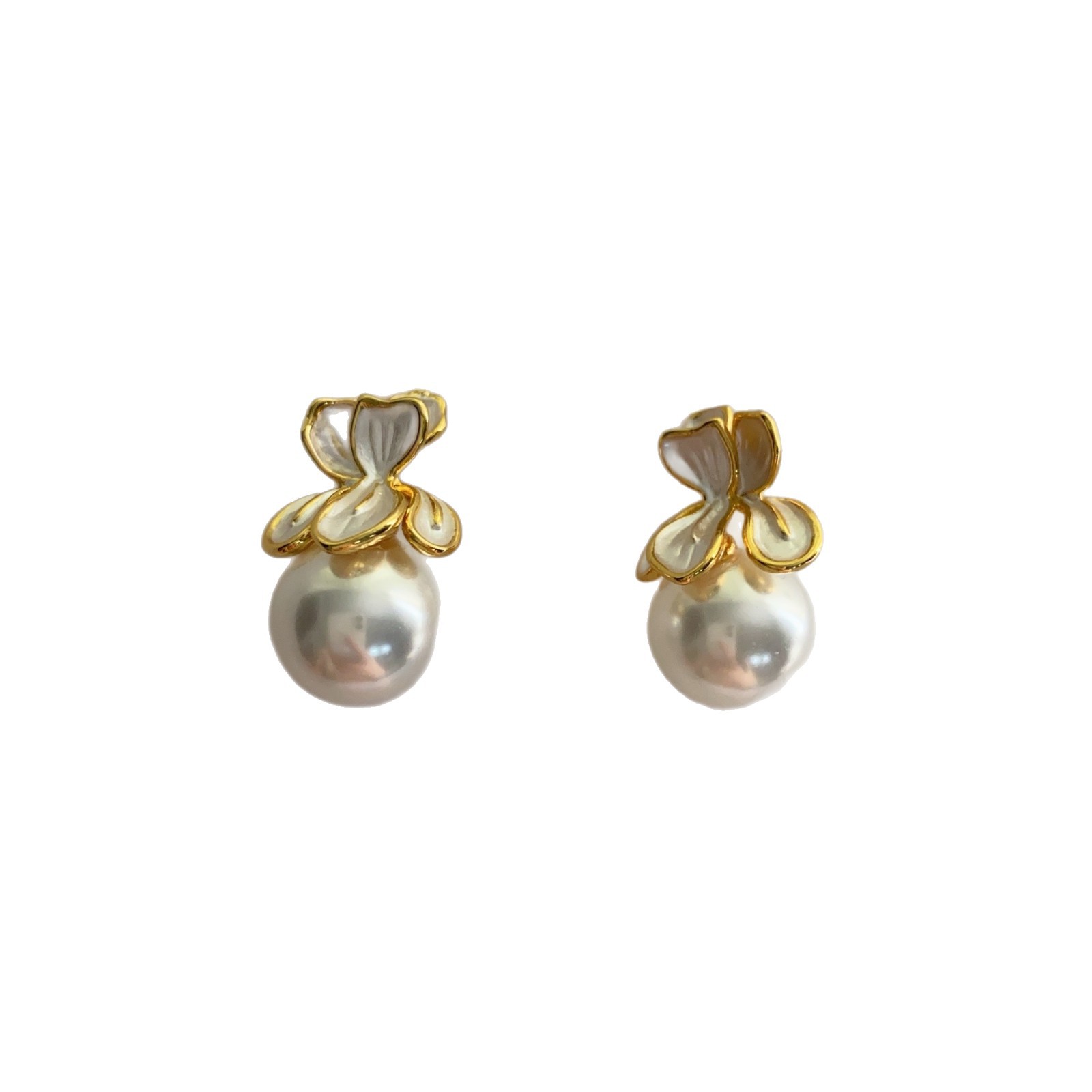个性简约气质新款精致蝴蝶兰珐琅设计珍珠耳钉时尚百搭小众耳环女