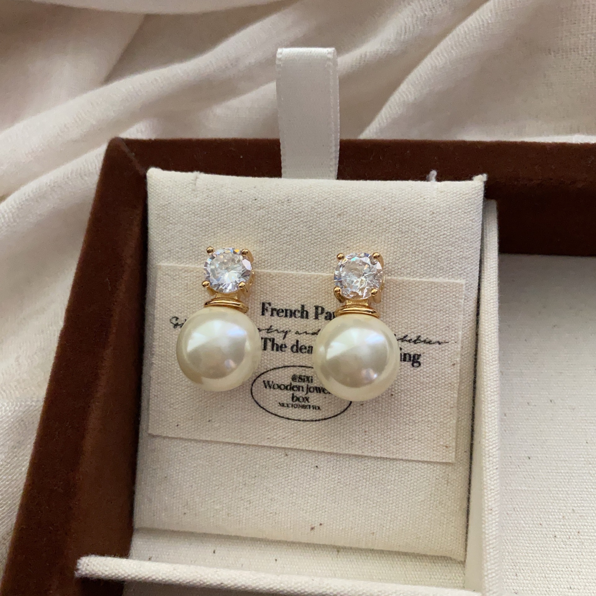 戴妃同款单钻珍珠耳钉气质名媛高级感简约气质耳环精致耳饰百搭女