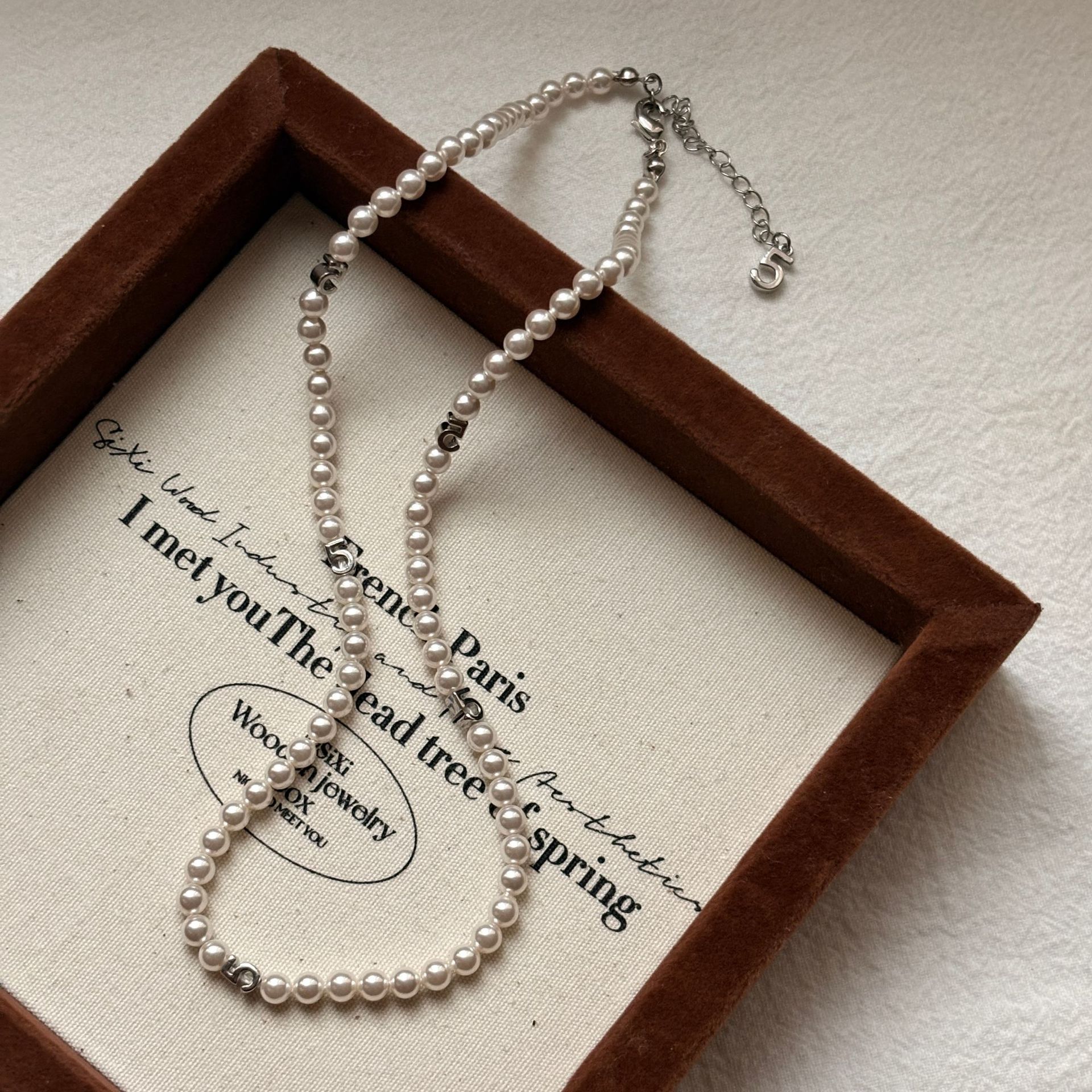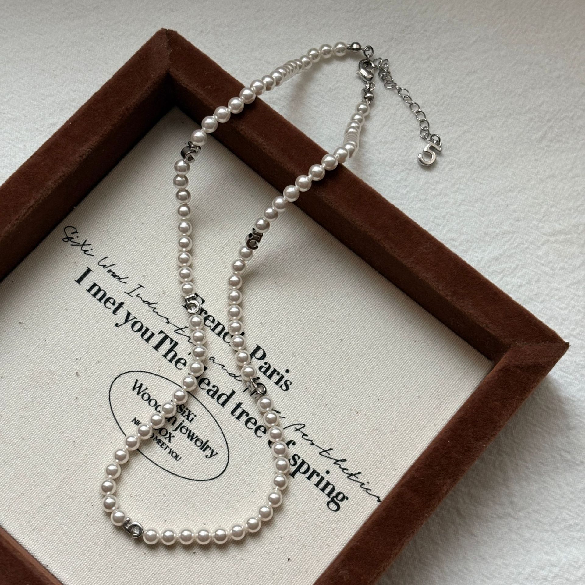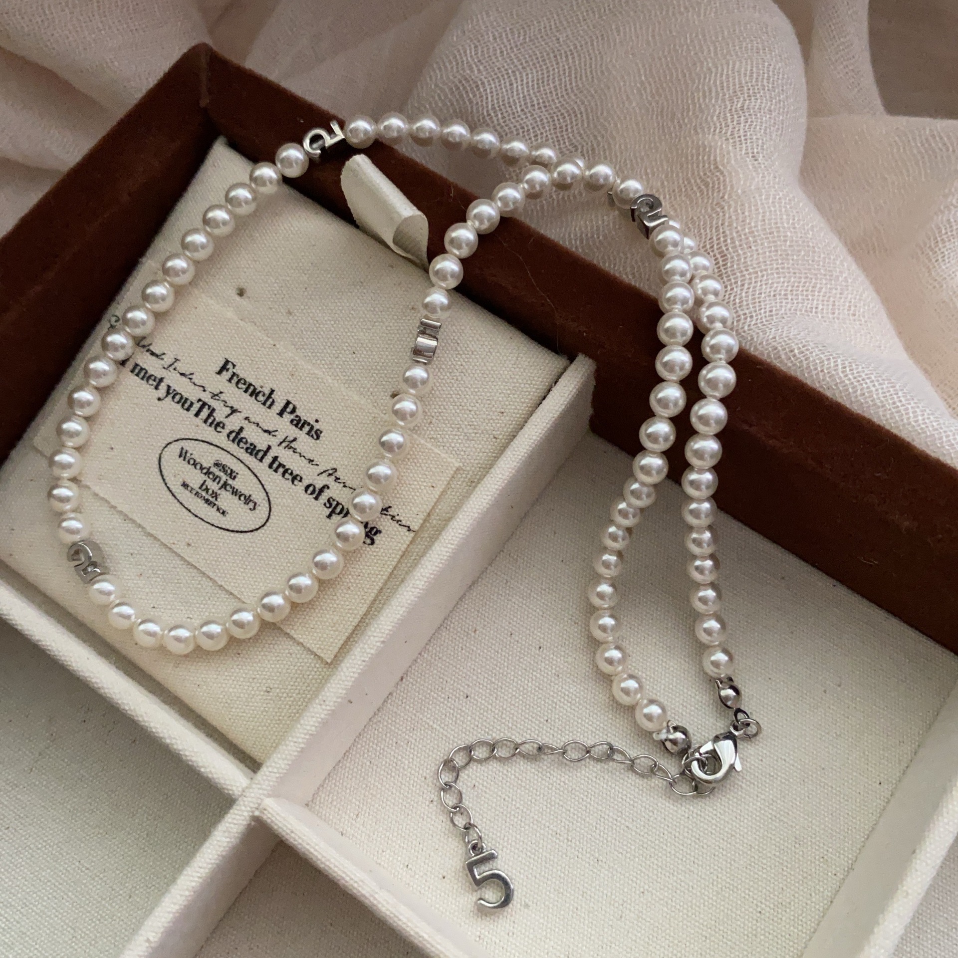 小众轻奢碎银子珍珠项链气质经典数字五高光高亮珍珠项链锁骨链女