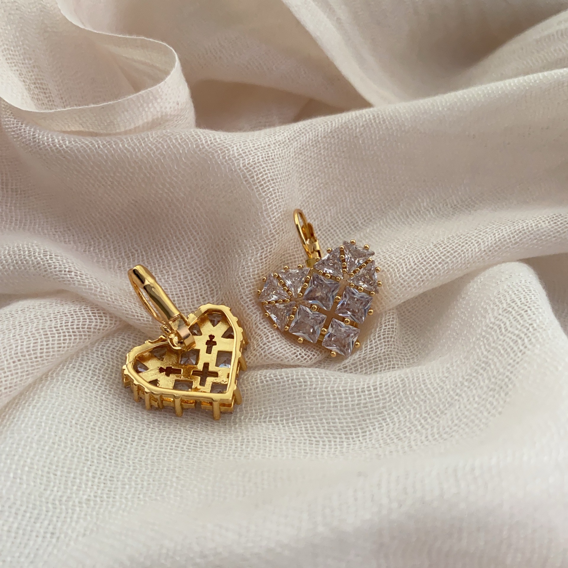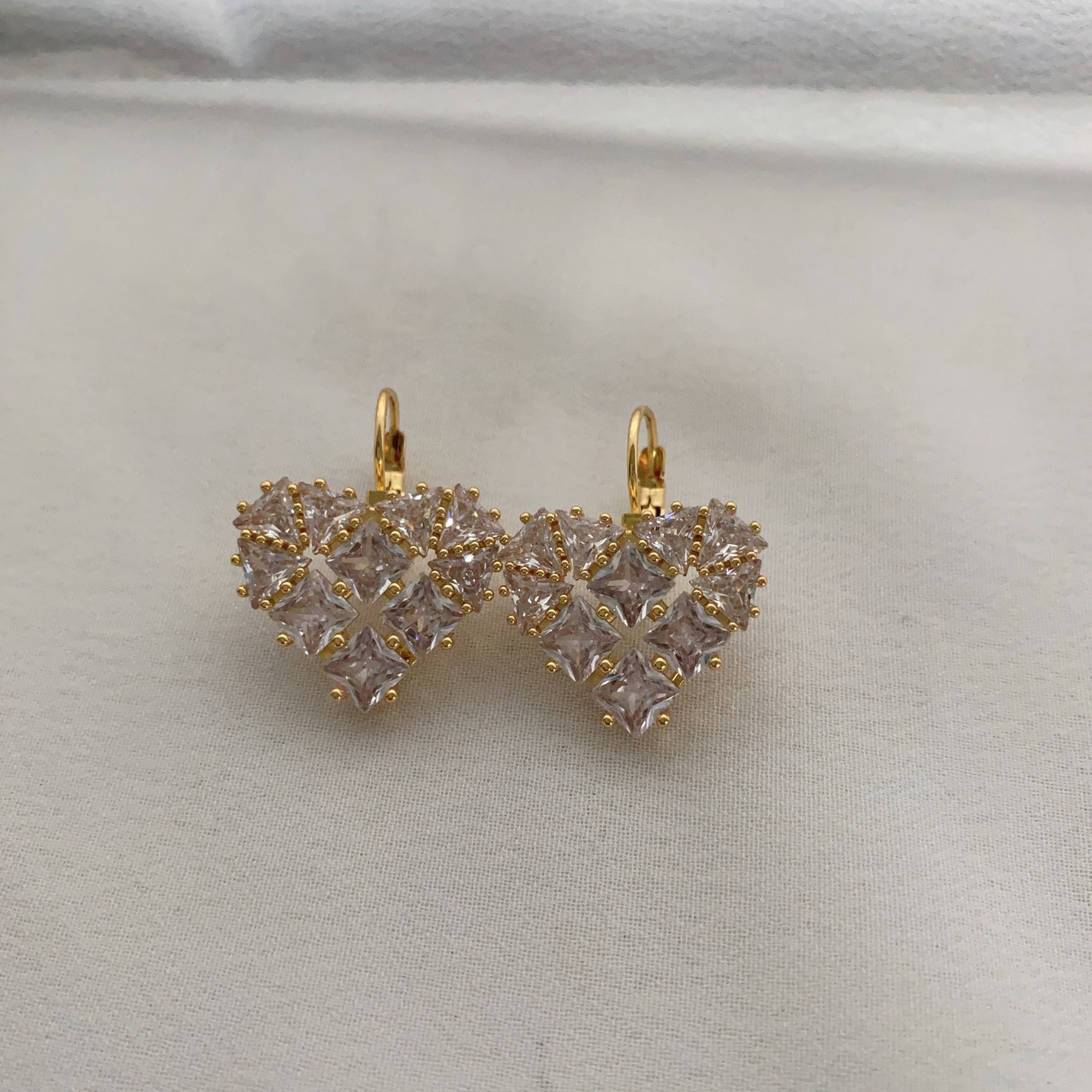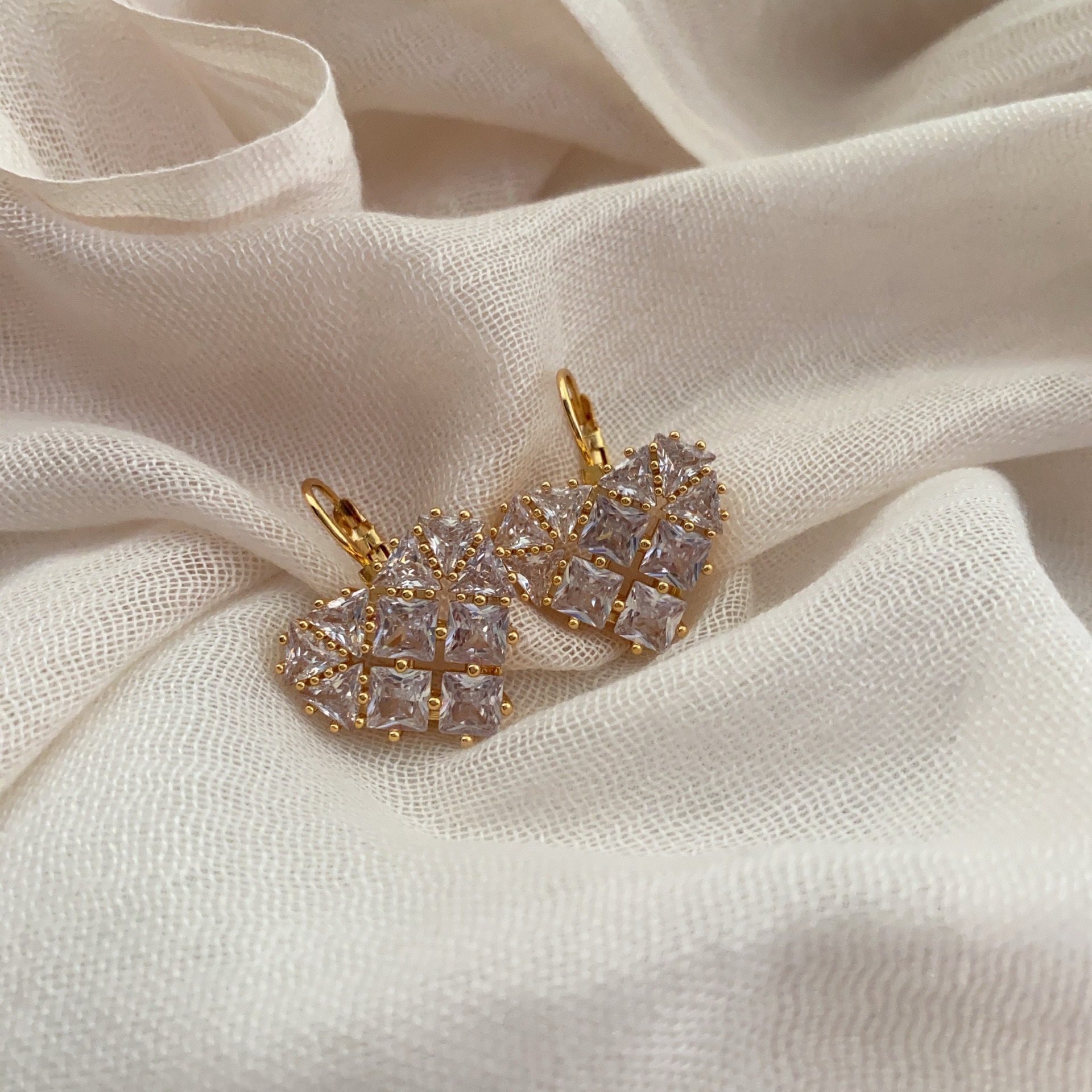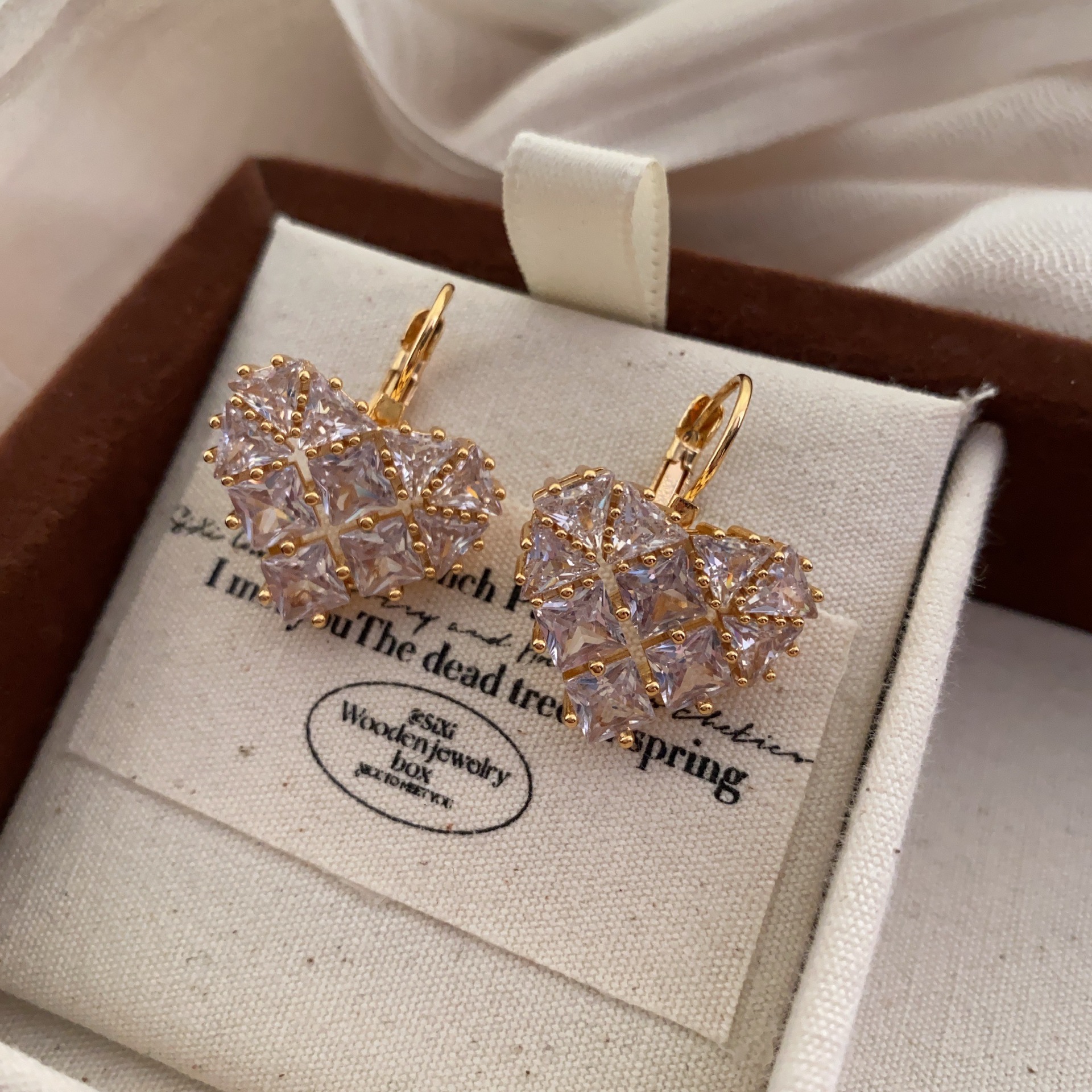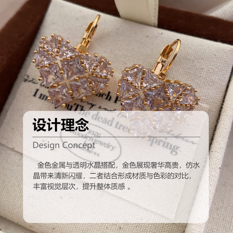 法式锆石爱心耳环女2025新款爆款桃心耳坠小众设计耳钉高级感耳饰