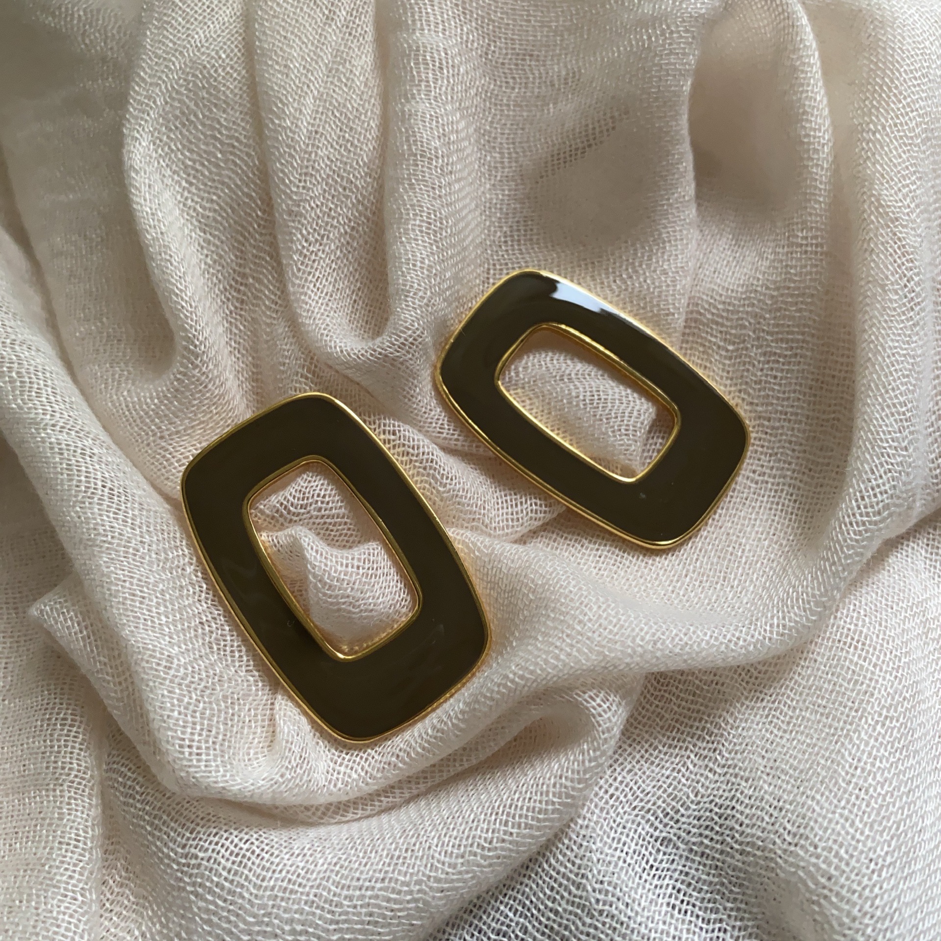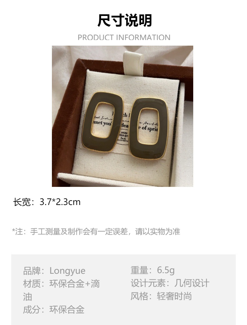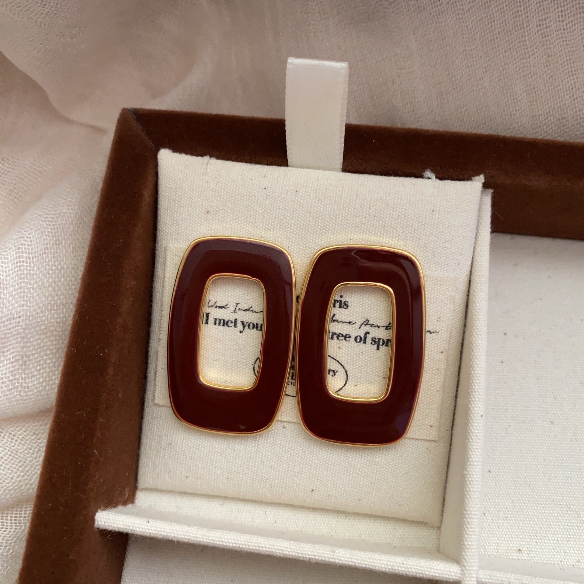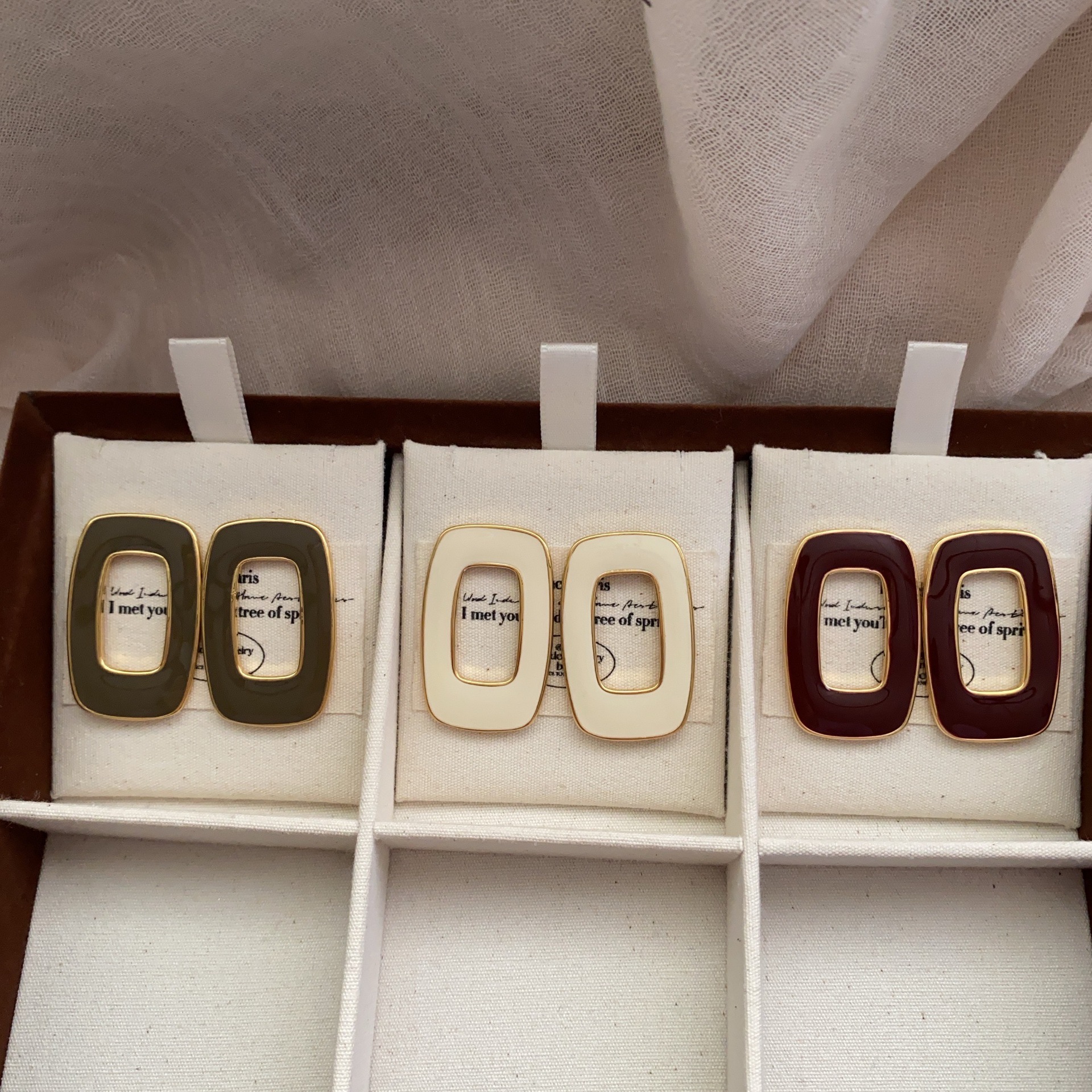 简约矩形高贵奢华滴釉耳钉百搭时尚耳坠小众设计高级气质爆款耳饰