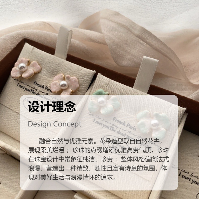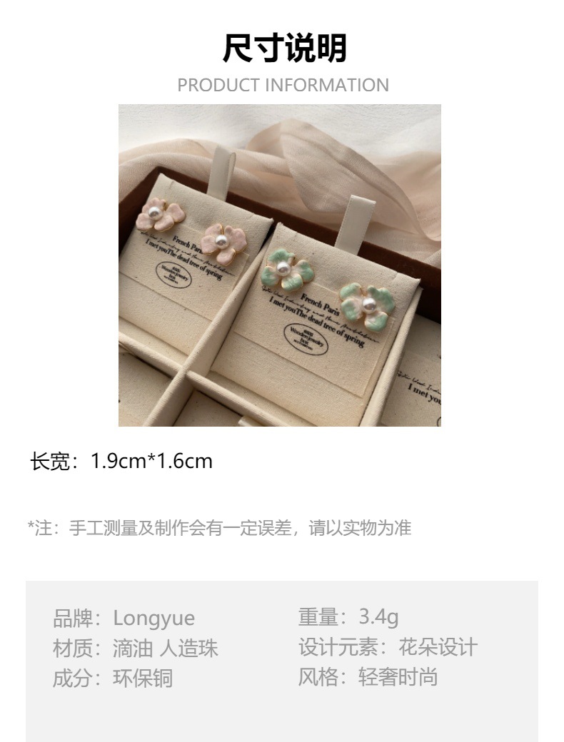 法式滴釉花朵耳环女小众设计高级感耳饰耳钉耳坠独特设计百搭饰品