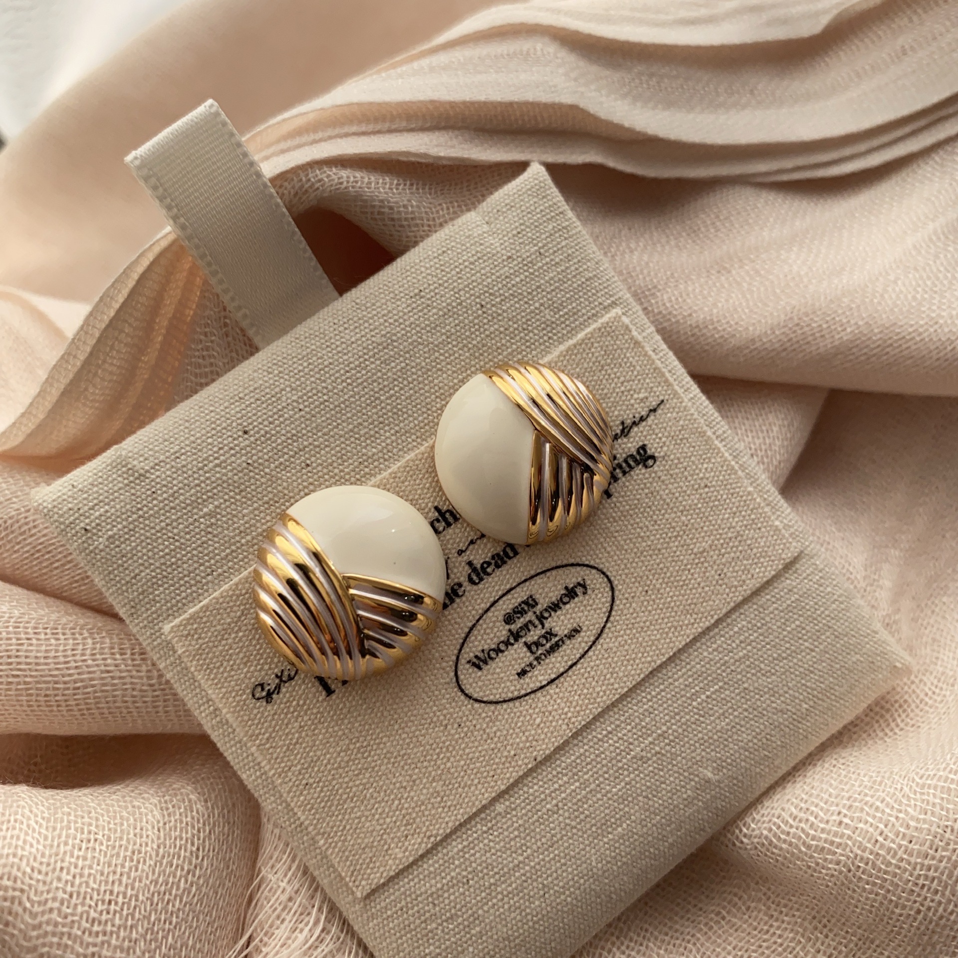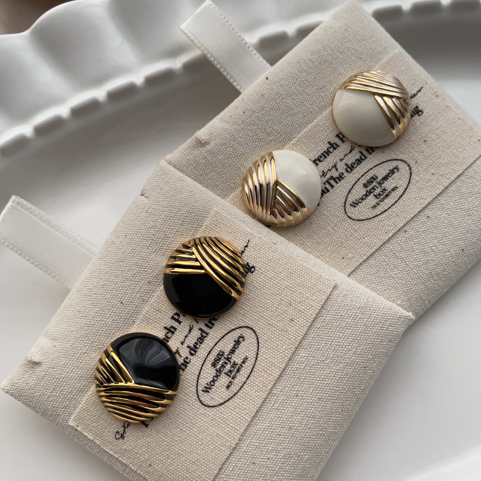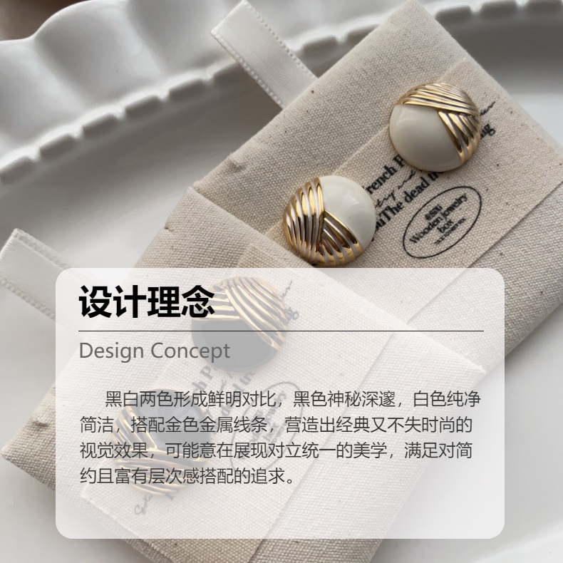 时尚高级鎏金耳钉复古拉丝金属圆球耳饰小众精致设计感法式耳环女